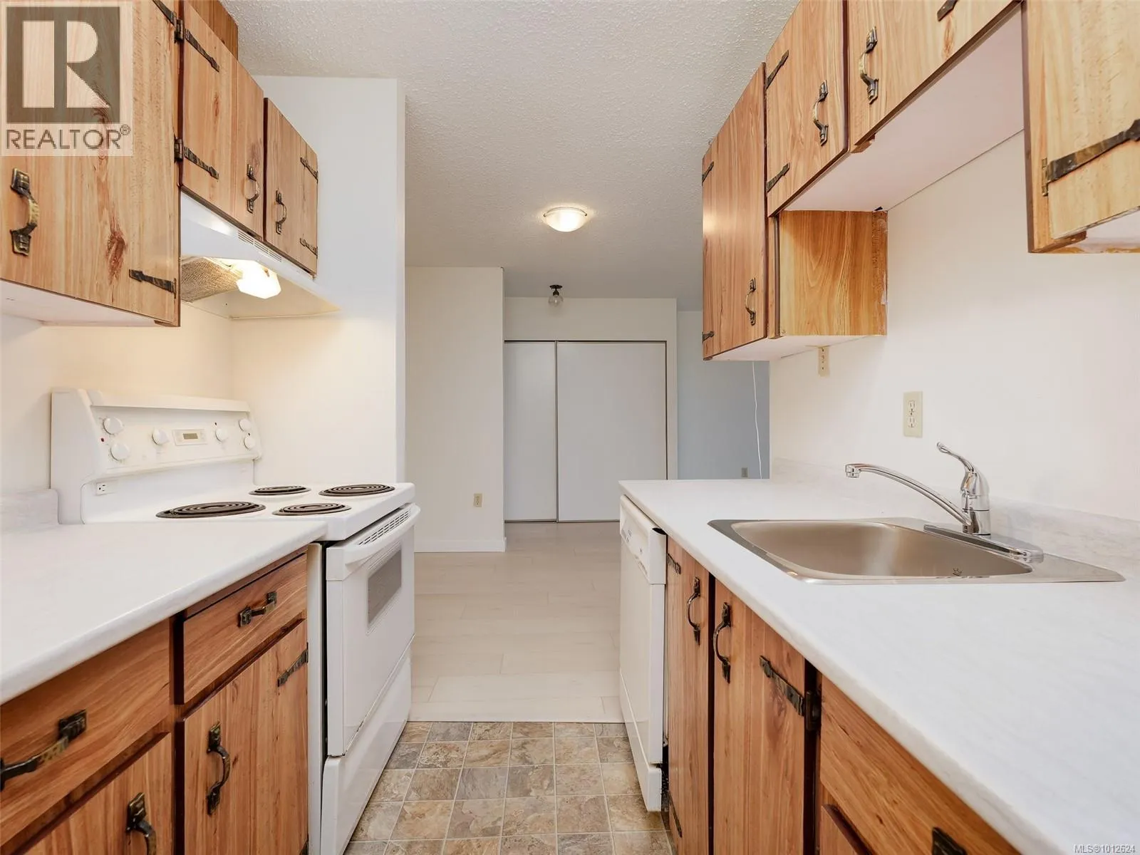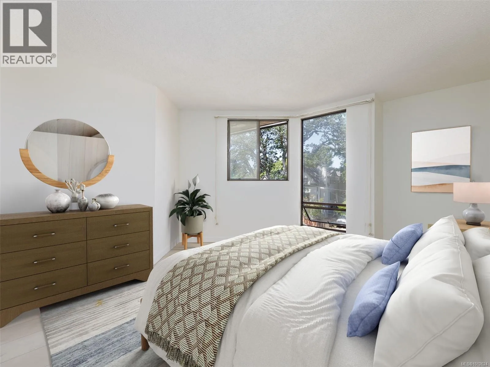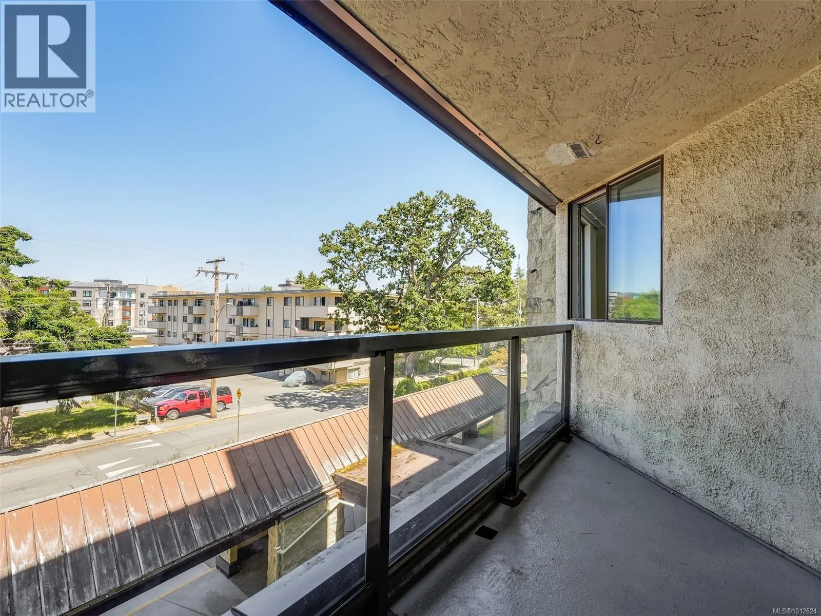 Welcome to Harrington House, perfectly located on the Victoria/Oak Bay border! This SPACIOUS, open concept design 1-bedroom, 1-bathroom suite boasts nearly 700 sqft of bright, comfortable living space and features all new paint, new easy care laminate flooring, (100% waterproof), an updated bathroom, new sinks, new taps, new tub liner, new countertops, etc. It has a large living room, a functional galley kitchen and a roomy dining area. This durable steel and concrete building offers secure underground parking (common building EV charger available), a storage locker, a games/rec. room, a social room, bike storage, a workshop, convenient laundry just down the hall. A low strata fee covers all the usual plus heat and hot water and the proactive strata ensures peace of mind with ongoing maintenance. Ideally situated, this condo offers effortless access to public transportation, UVic, Camosun College, shopping, the Oak Bay Village, Royal Jubilee Hospital and the local neighborhood pub. An inviting, well-connected place to call home! (id:27476)