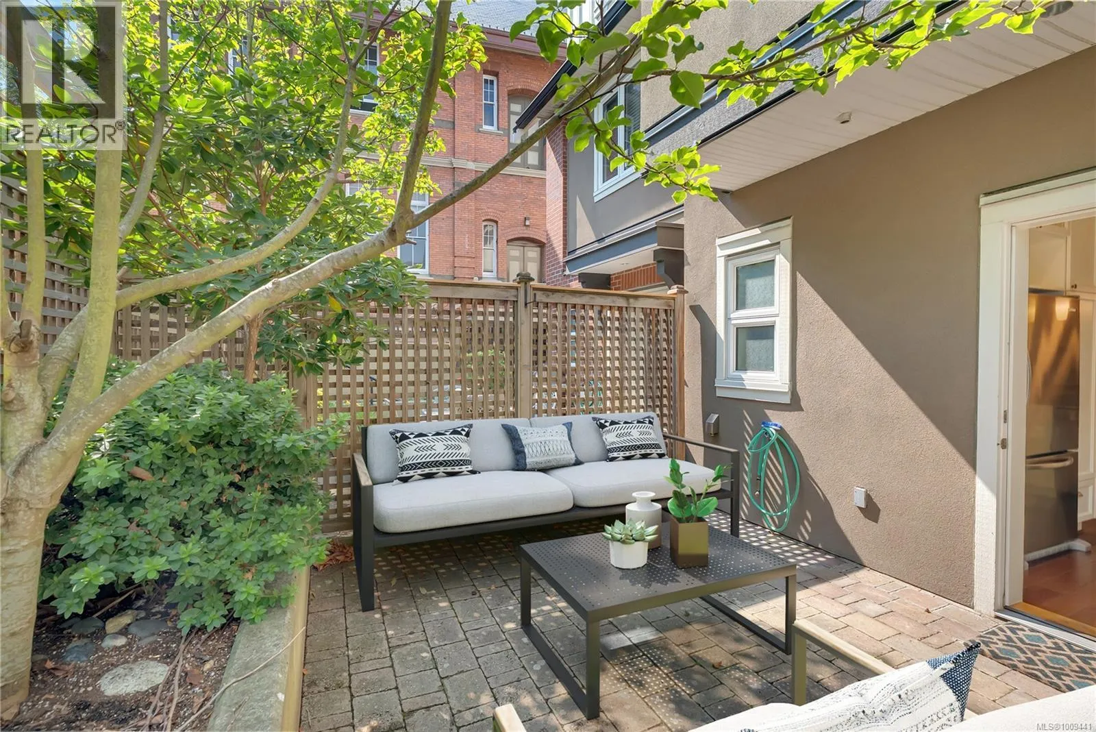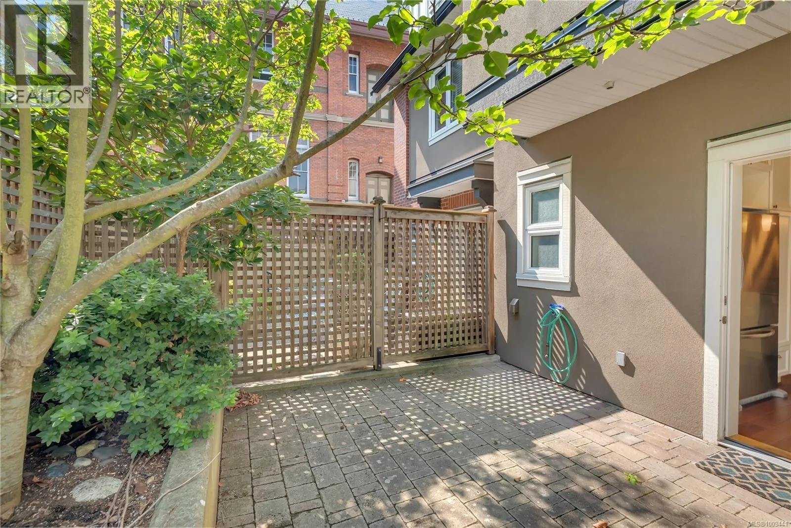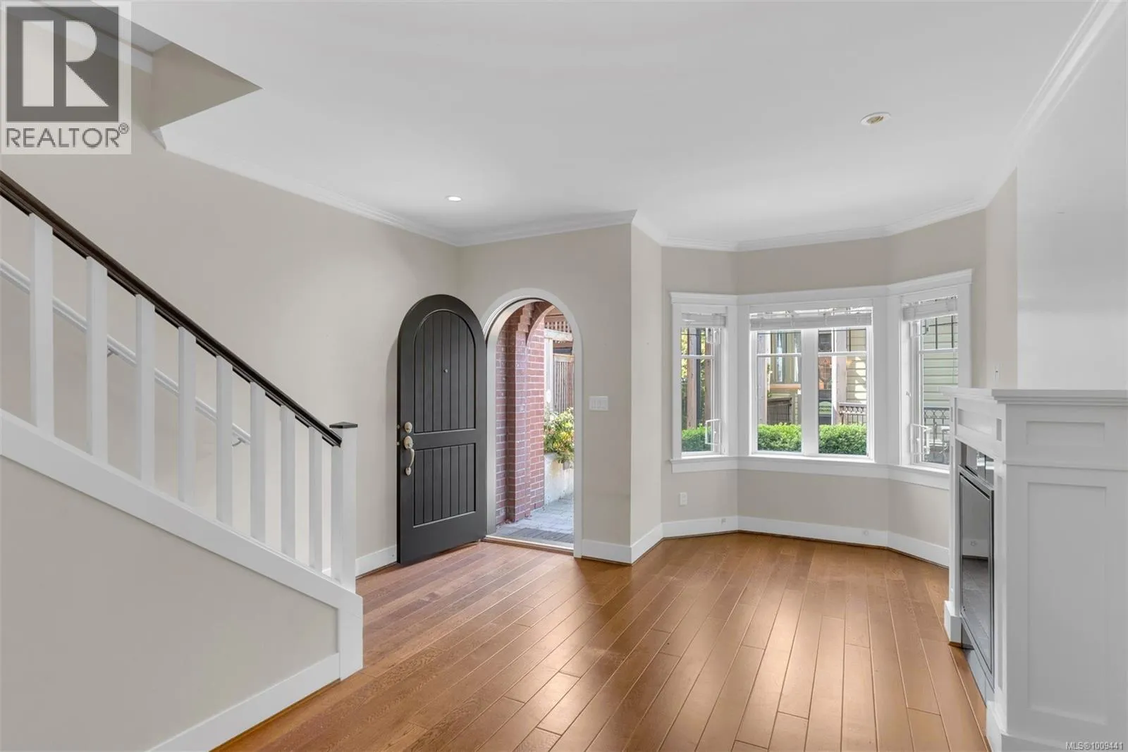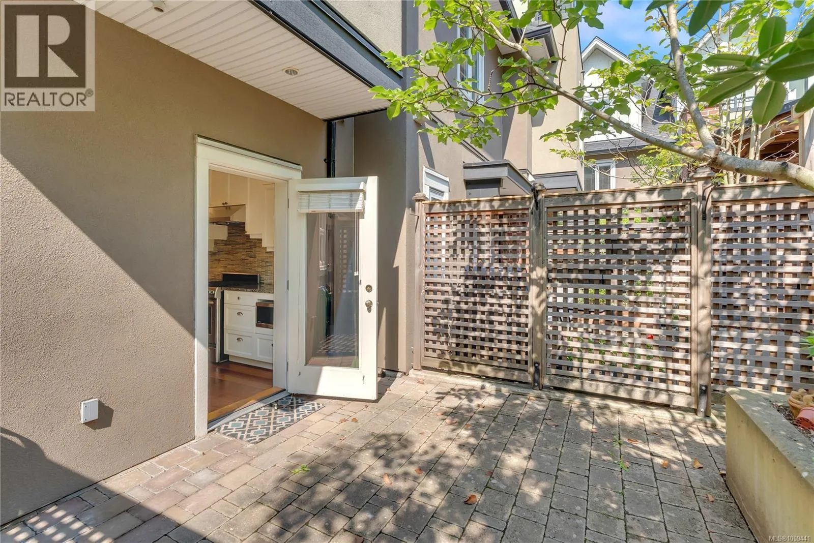 In a quiet corner of the complex, this 3-bed, 2.5-bath brownstone-style townhouse offers refined living across three levels. Featuring an open-concept main floor with gas fireplace, granite kitchen countertops and stainless steel appliances, plus seamless access to a private east-facing patio. The second level provides two generous bedrooms and a full bath, while the top floor is dedicated to a spacious primary retreat with walk-in closet and ensuite. Built in 2009 and exceptionally maintained, the home includes secure underground parking, storage and common EV charger. All within easy walking distance of the Inner Harbour, Parliament, restaurants, grocery stores, cafés and the Dallas Road waterfront. (id:27476)