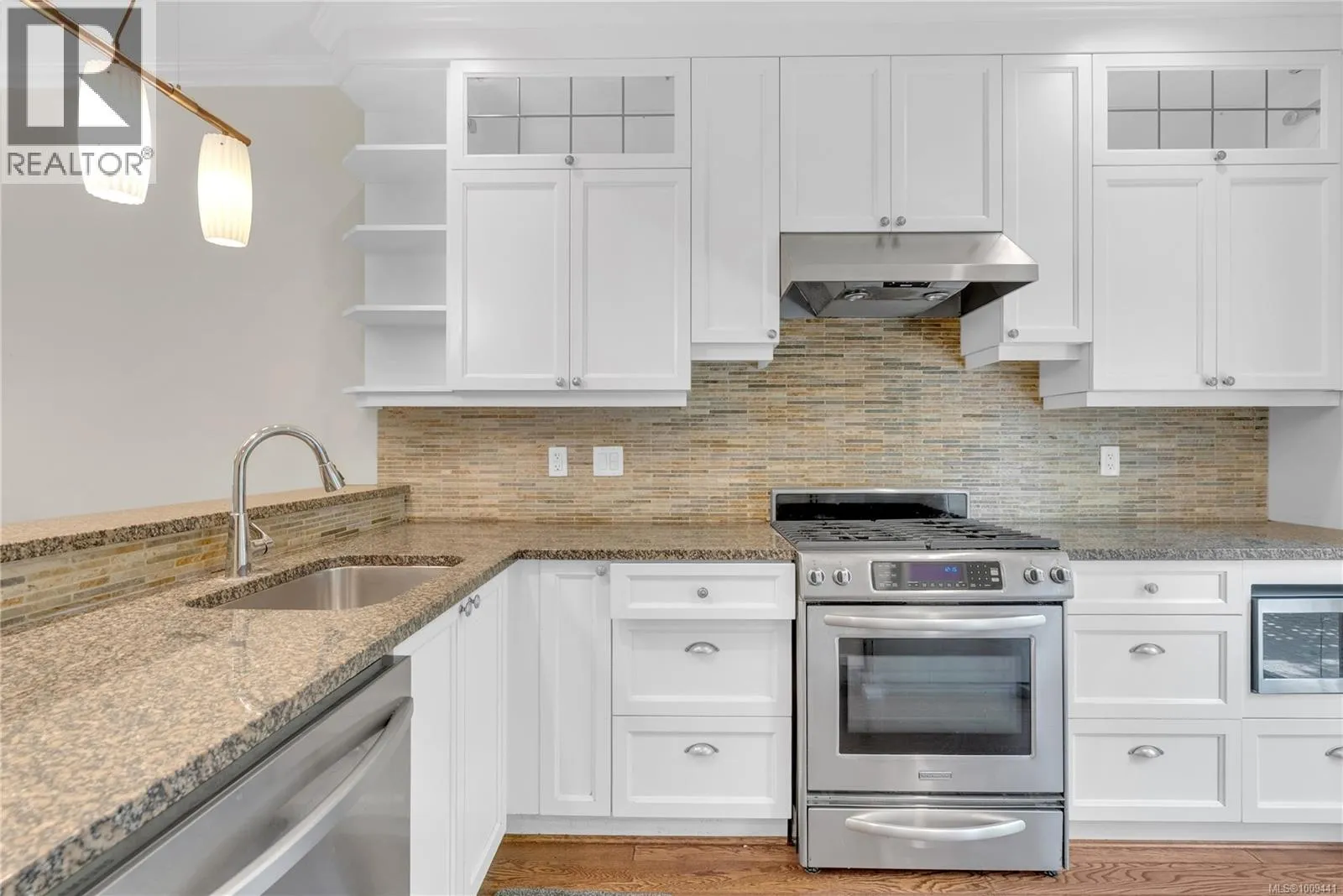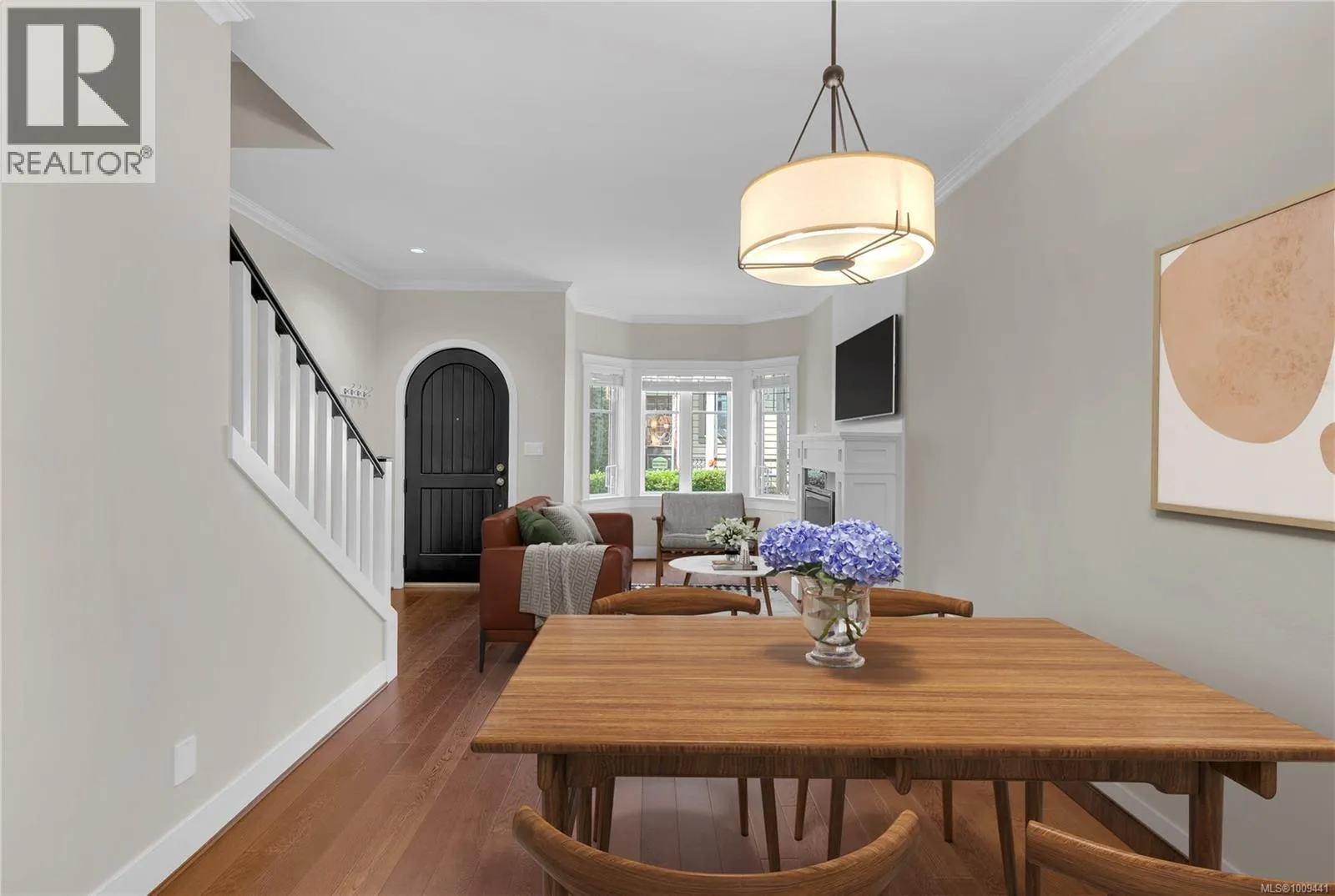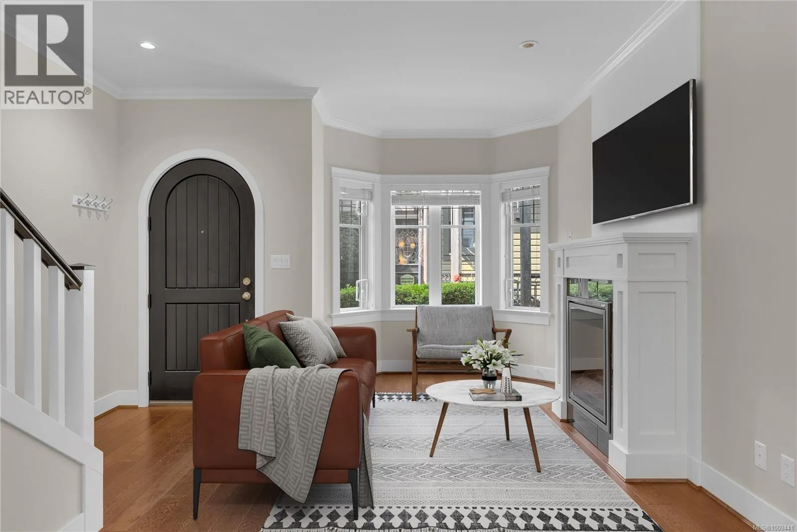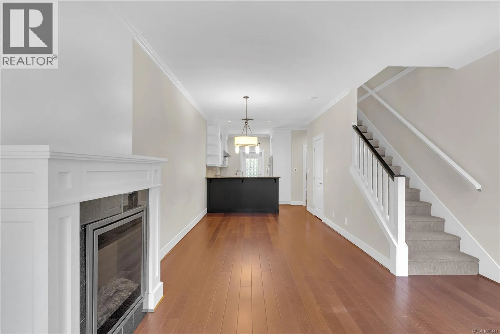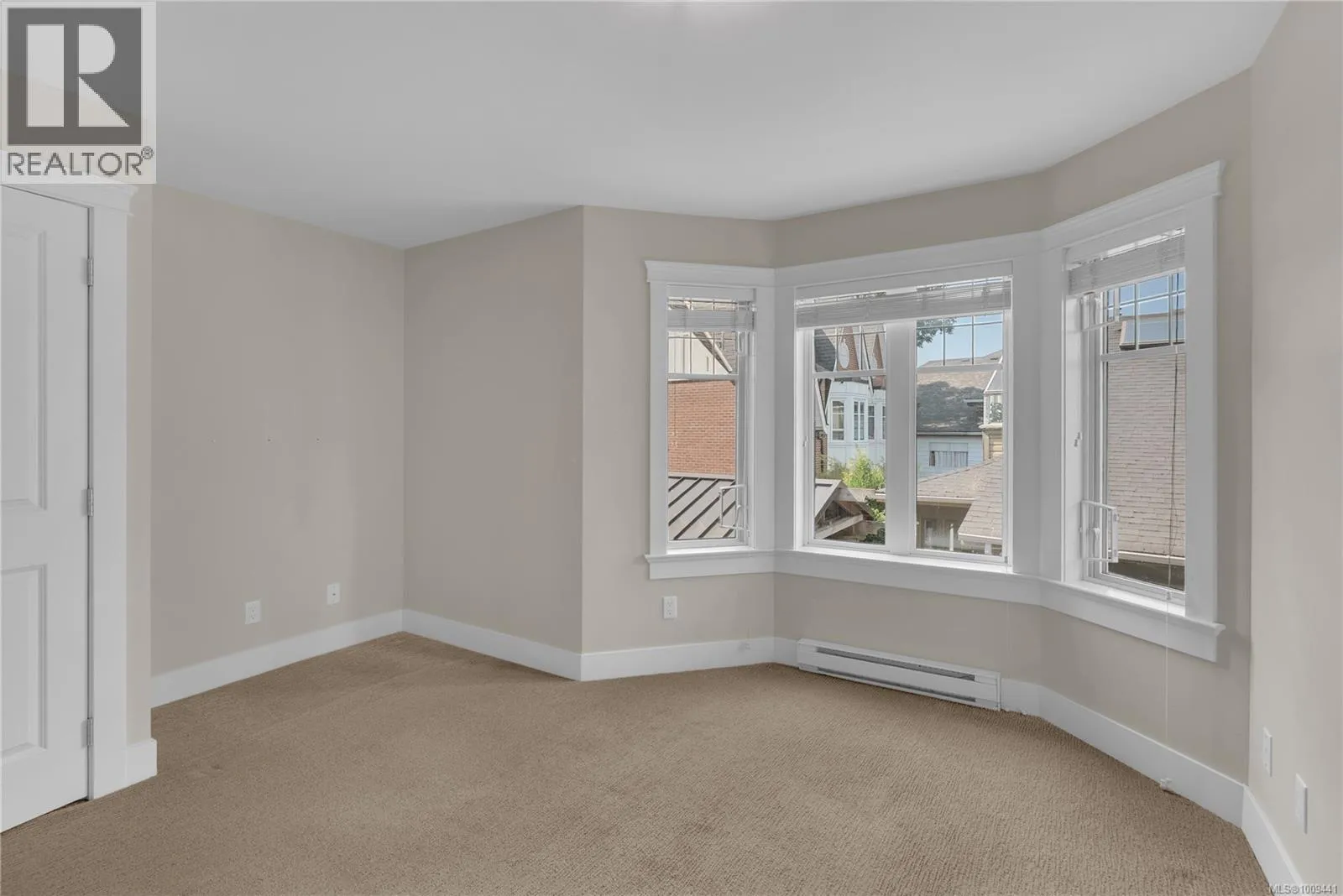 In a quiet corner of the complex, this 3-bed, 2.5-bath brownstone-style townhouse offers refined living across three levels. Featuring an open-concept main floor with gas fireplace, granite kitchen countertops and stainless steel appliances, plus seamless access to a private east-facing patio. The second level provides two generous bedrooms and a full bath, while the top floor is dedicated to a spacious primary retreat with walk-in closet and ensuite. Built in 2009 and exceptionally maintained, the home includes secure underground parking, storage and common EV charger. All within easy walking distance of the Inner Harbour, Parliament, restaurants, grocery stores, cafés and the Dallas Road waterfront. (id:27476)