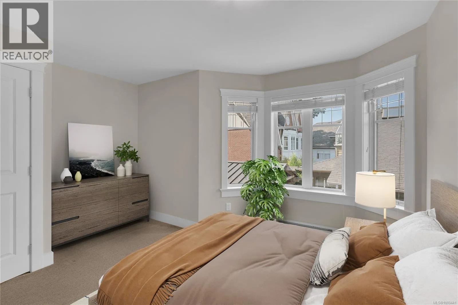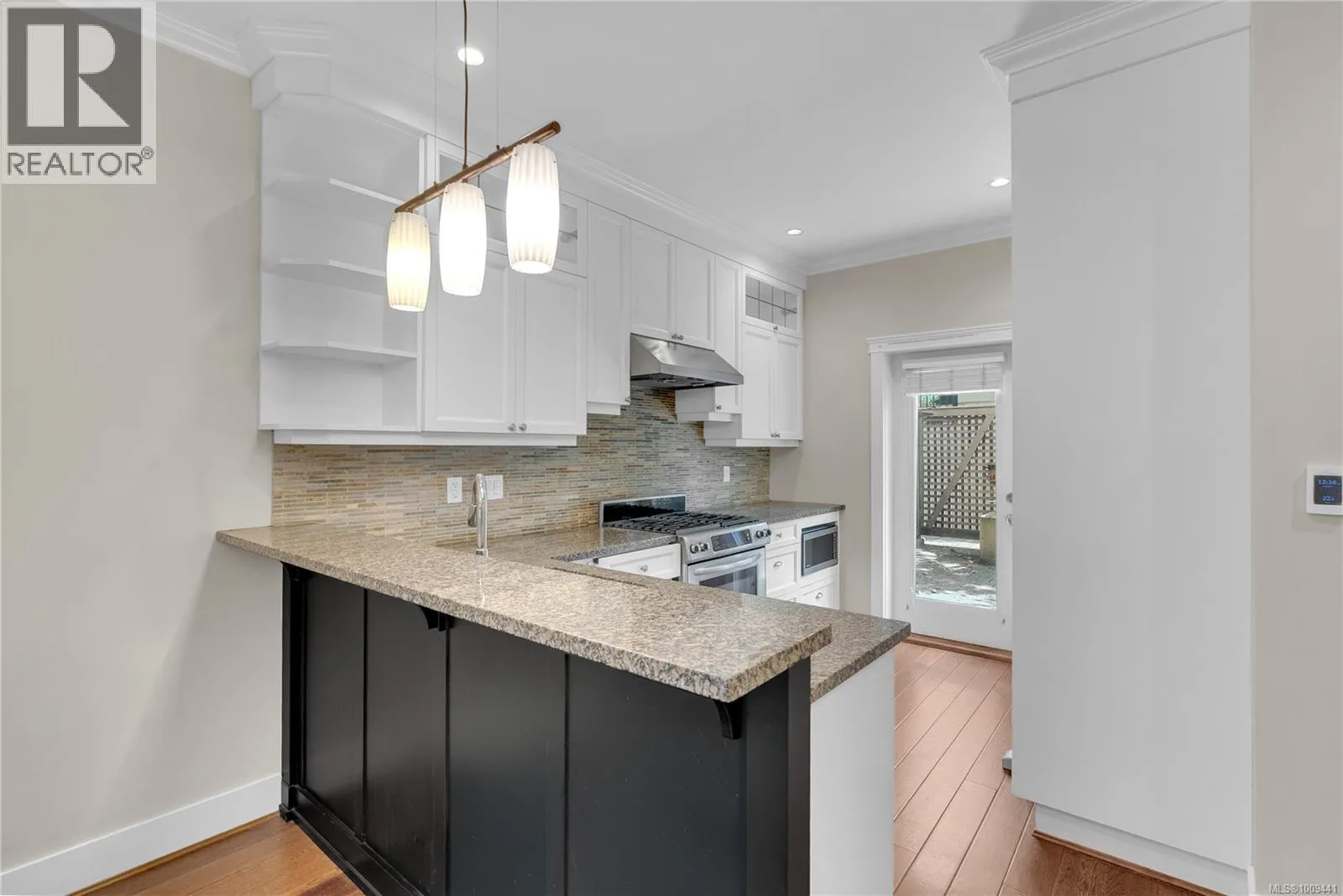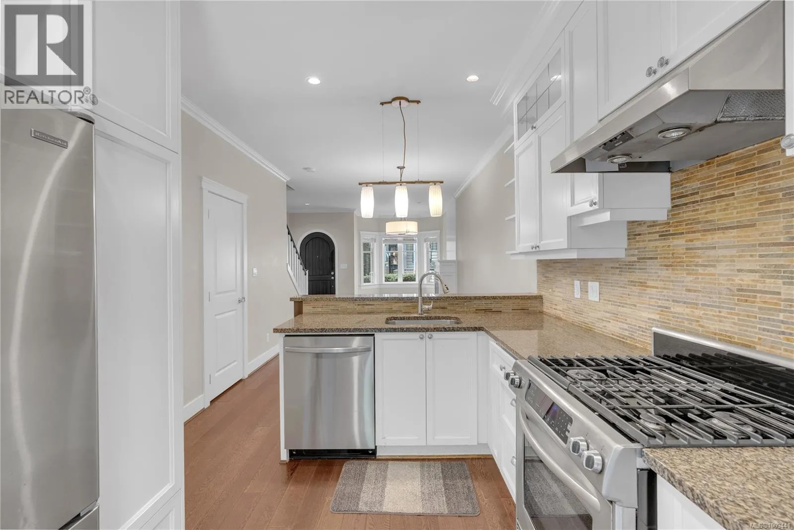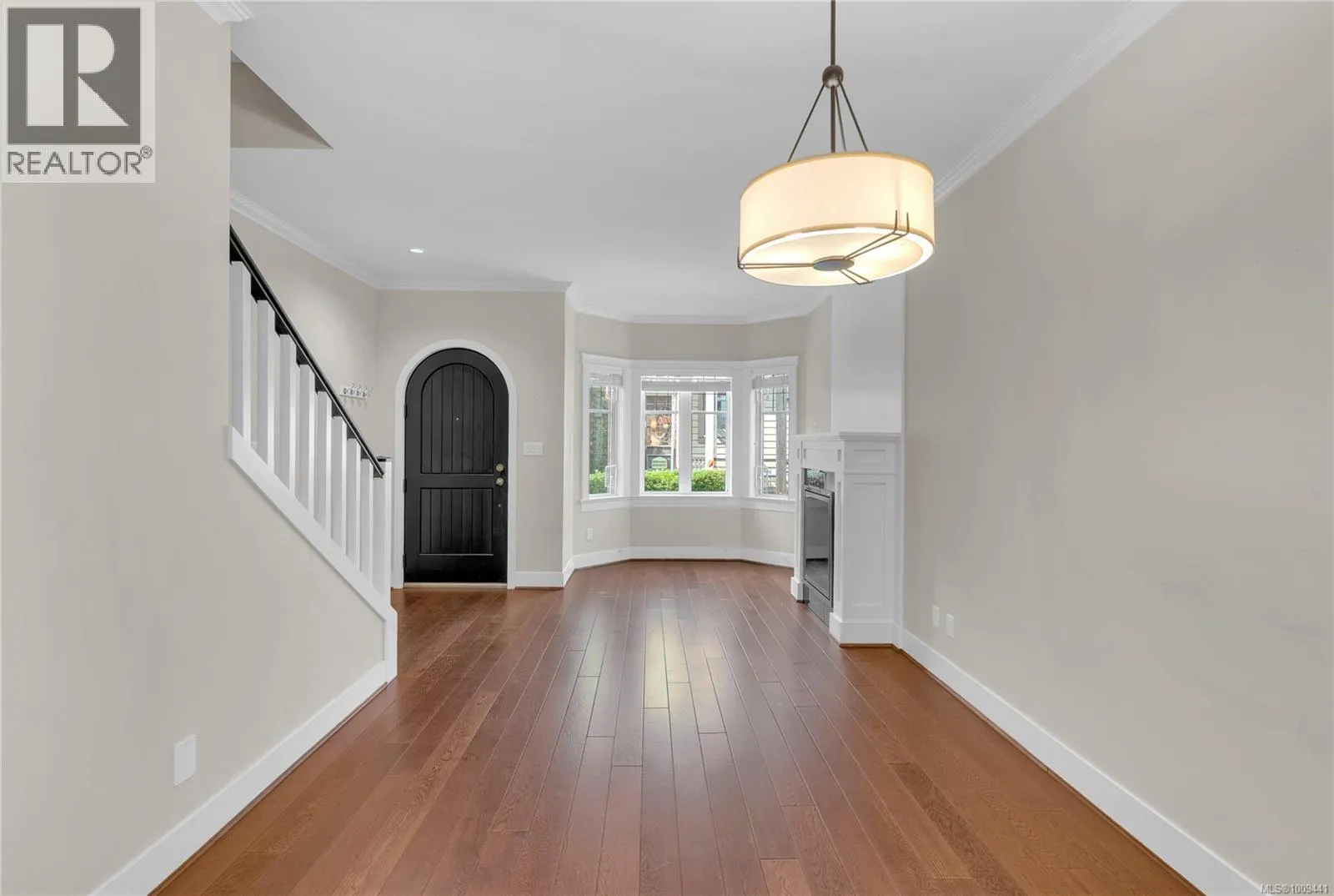 In a quiet corner of the complex, this 3-bed, 2.5-bath brownstone-style townhouse offers refined living across three levels. Featuring an open-concept main floor with gas fireplace, granite kitchen countertops and stainless steel appliances, plus seamless access to a private east-facing patio. The second level provides two generous bedrooms and a full bath, while the top floor is dedicated to a spacious primary retreat with walk-in closet and ensuite. Built in 2009 and exceptionally maintained, the home includes secure underground parking, storage and common EV charger. All within easy walking distance of the Inner Harbour, Parliament, restaurants, grocery stores, cafés and the Dallas Road waterfront. (id:27476)