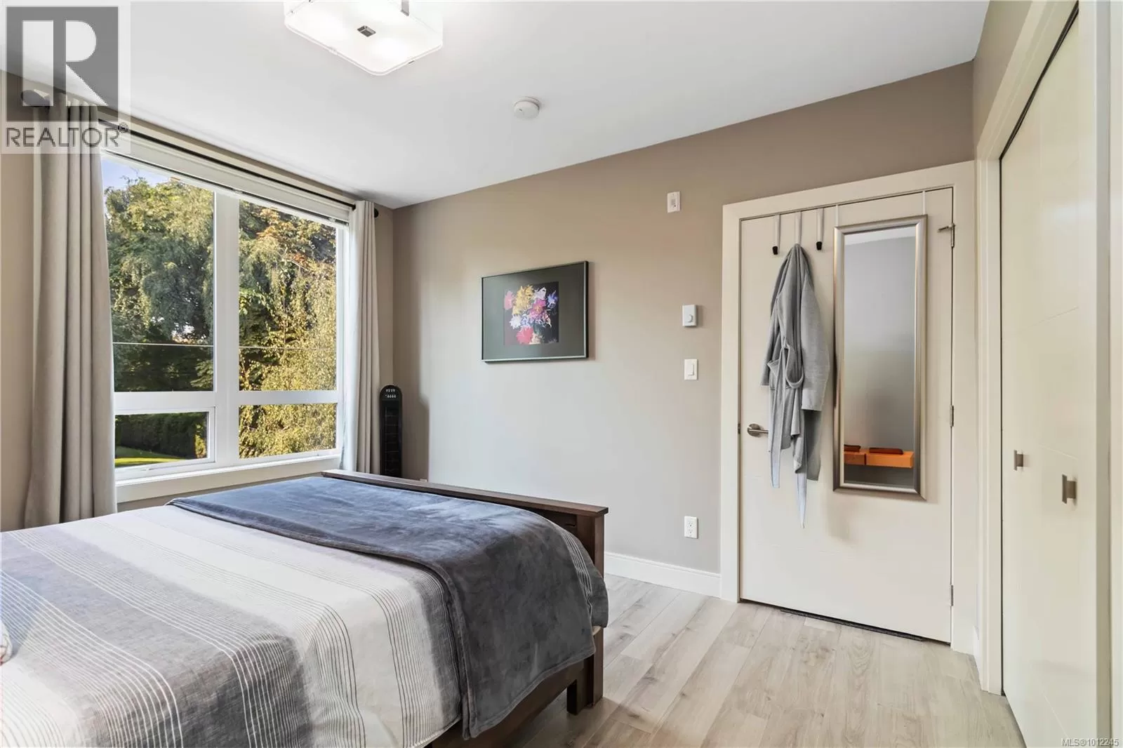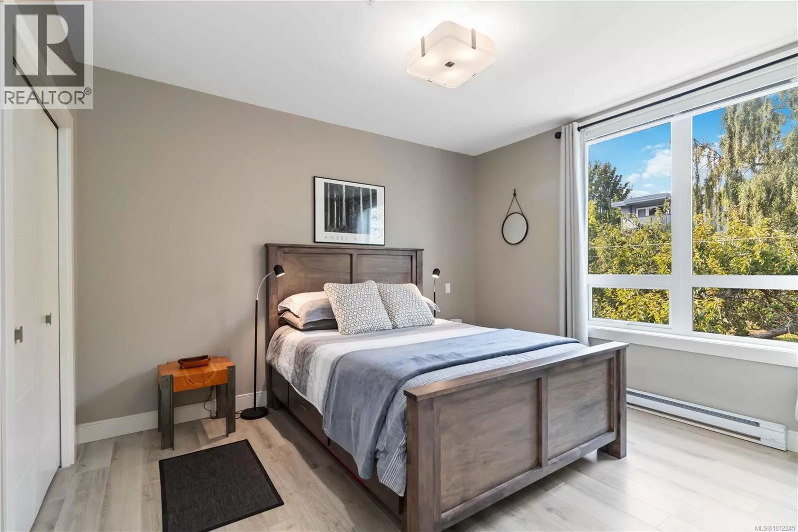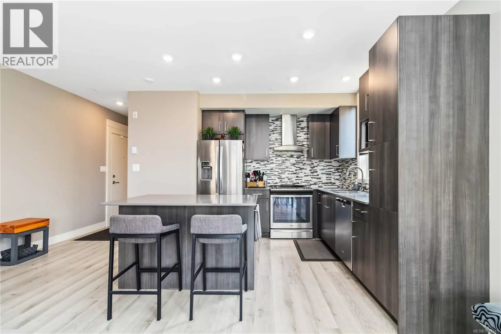 Welcome home to a like-new 1 bedroom corner condo in coveted James Bay, set on a quiet, tree lined street in a 2016 building. This southwest corner home offers approx. 718 sq ft, floor-to-ceiling wrap-around windows, and a large balcony that soaks up afternoon sun, so the living room feels airy and bright. The cook's kitchen has an island and pantry, quartz countertops, stainless appliances, and soft close drawers and the engineered flooring adds warmth. The high end bathroom features heated tile floors & there is in suite laundry for easy living. The spacious primary bedroom includes two generous closets. Secure underground parking & separate storage are included. Wheelchair ramp access, a patio area, & a common garden with herbs, flowers, and vegetables enrich daily life. You are close to the Inner Harbour, Dallas Road, and Fisherman's Wharf, therefore Victoria is on your doorstep. A small, proactive strata welcomes rentals and pets of any size. Book your private viewing today! (id:27476)