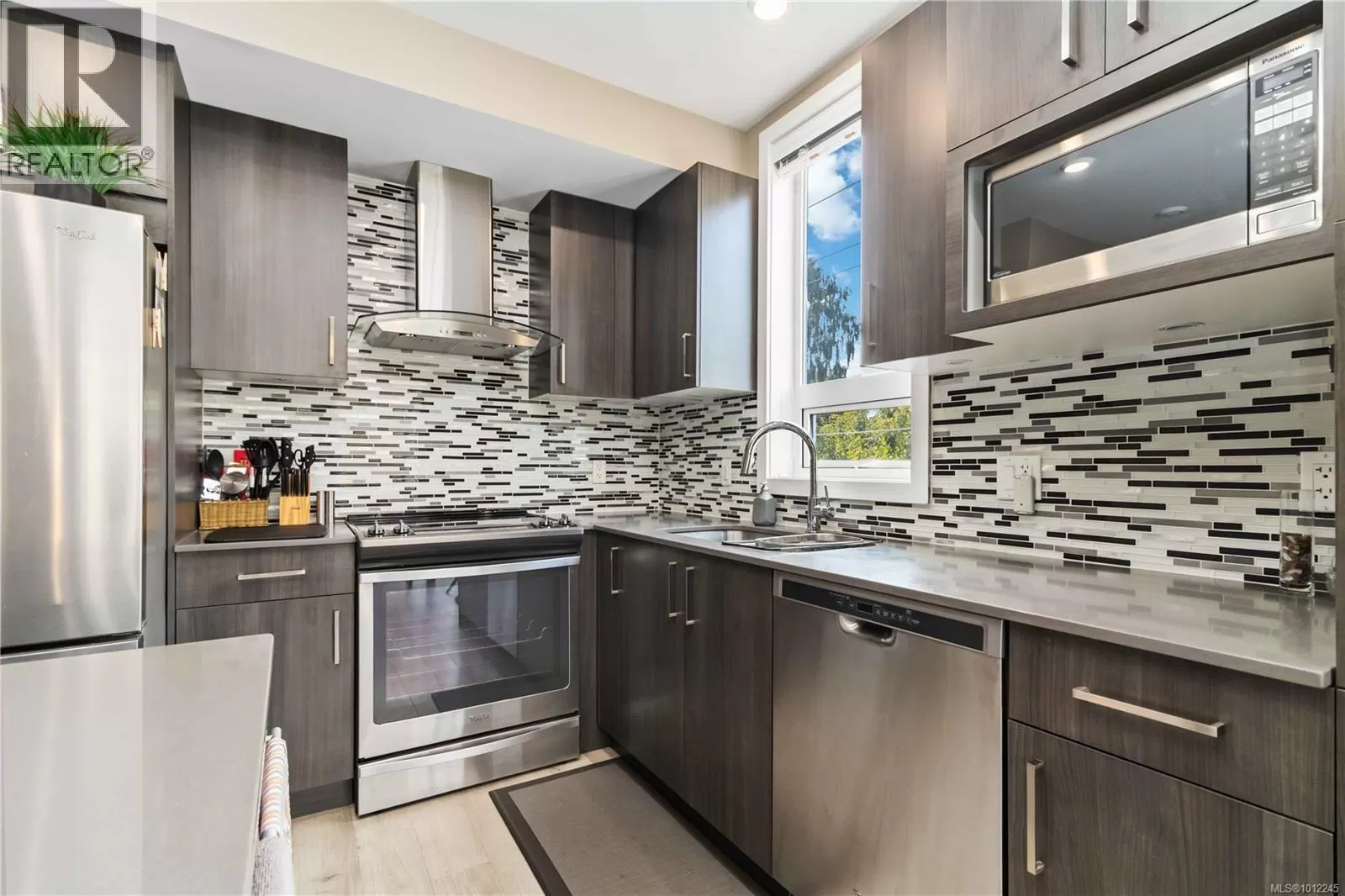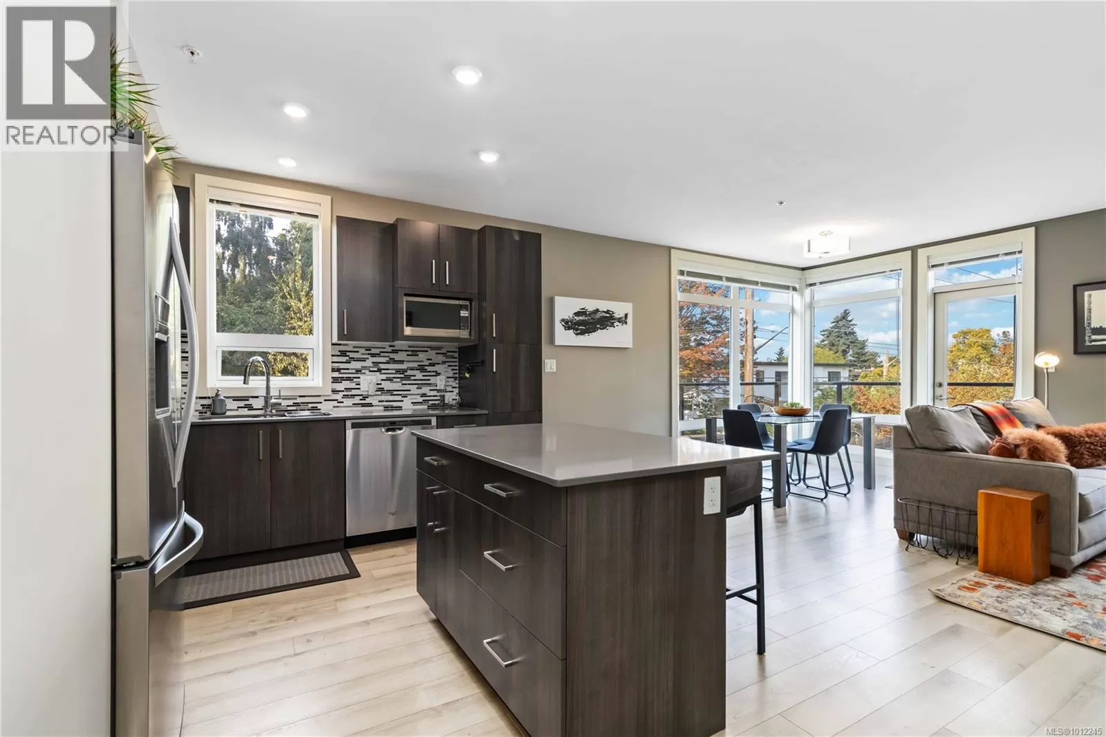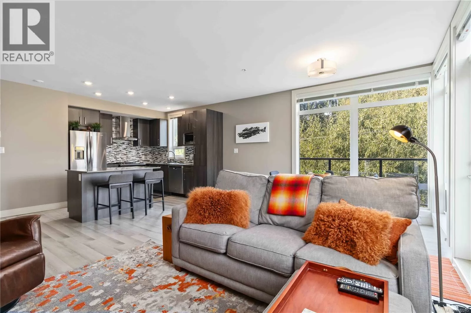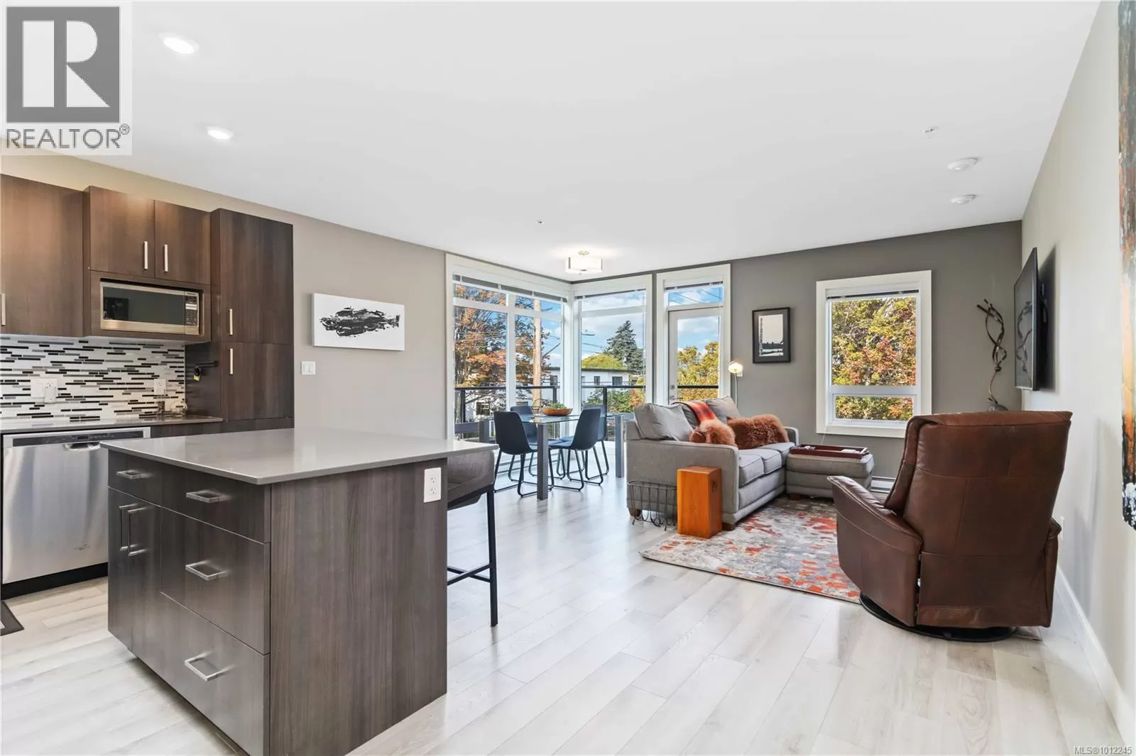 Welcome home to a like-new 1 bedroom corner condo in coveted James Bay, set on a quiet, tree lined street in a 2016 building. This southwest corner home offers approx. 718 sq ft, floor-to-ceiling wrap-around windows, and a large balcony that soaks up afternoon sun, so the living room feels airy and bright. The cook's kitchen has an island and pantry, quartz countertops, stainless appliances, and soft close drawers and the engineered flooring adds warmth. The high end bathroom features heated tile floors & there is in suite laundry for easy living. The spacious primary bedroom includes two generous closets. Secure underground parking & separate storage are included. Wheelchair ramp access, a patio area, & a common garden with herbs, flowers, and vegetables enrich daily life. You are close to the Inner Harbour, Dallas Road, and Fisherman's Wharf, therefore Victoria is on your doorstep. A small, proactive strata welcomes rentals and pets of any size. Book your private viewing today! (id:27476)