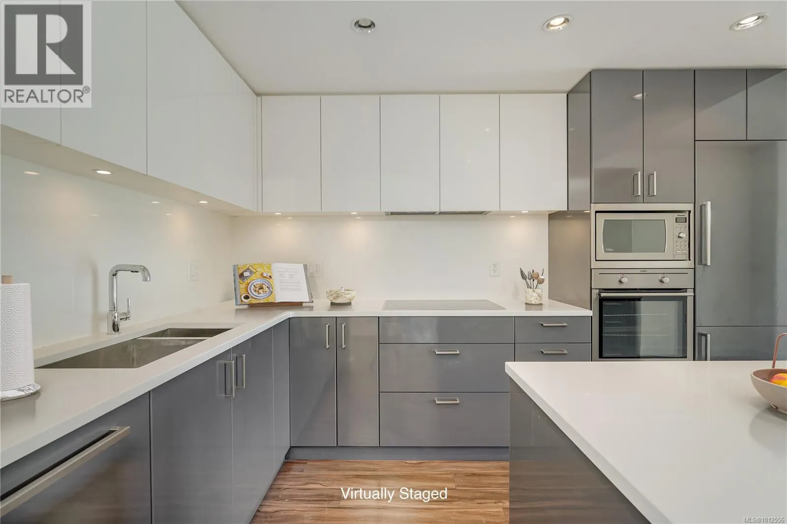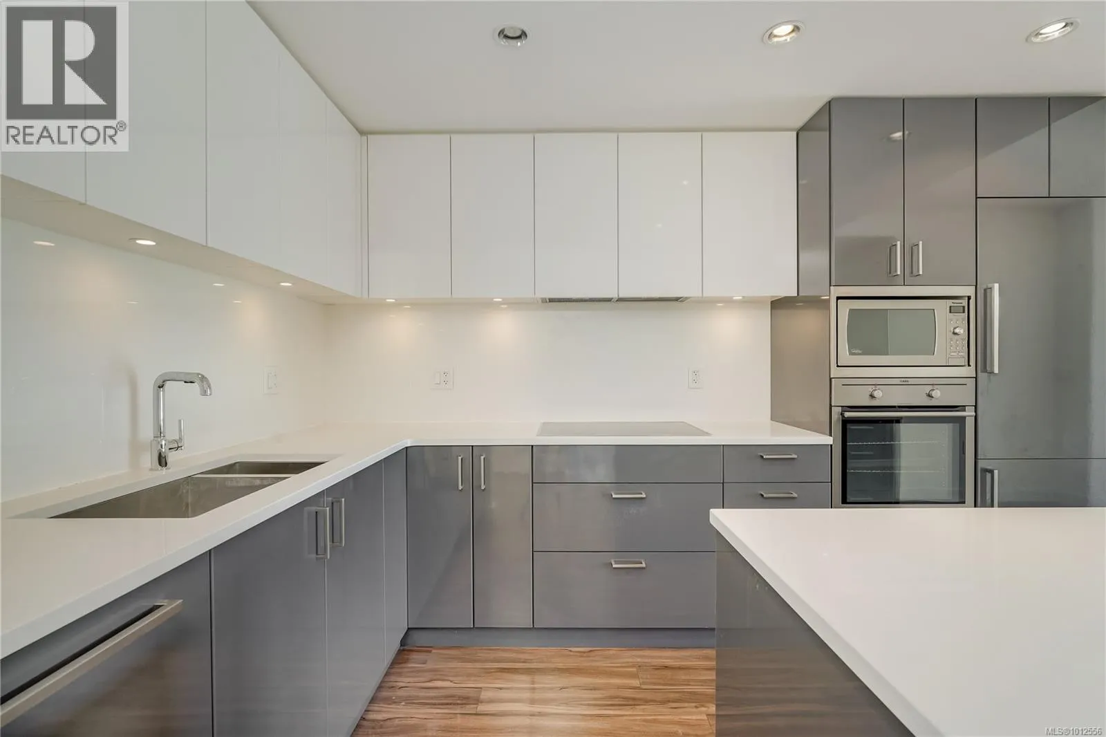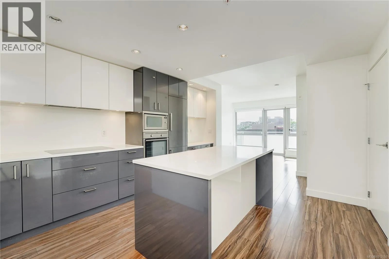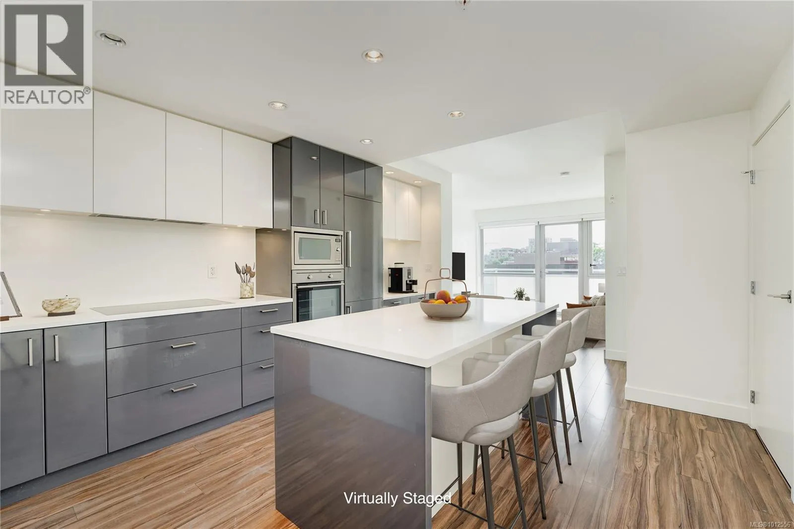 Sophisticated 1 bedroom, 1 bath condo in the Escher building, brought to you by one of Victoria's most trusted developers - Chard Development. This beautiful home offers a generous gourmet kitchen with premier stainless appliances, an open concept plan with a built-in workspace for your personal home office, large walk-in closet in the bedroom, luxurious spa-like bath, high ceilings, expansive windows, plus a spacious east-facing balcony where you can view the iconic Christ Church Cathedral. No need for a car in this walkable and desirable part of downtown, with all amenities just steps away: family park; boutique shops, cafes, groceries and more. Delightful Cook St Village and the picturesque waterfront are also nearby. This impressive suite is equipped with insuite washer/dryer and separate storage locker. The building also features a communal rooftop terrace with lounge, kitchen & BBQ area that provides even more space and dramatic mountain/ocean views. (id:27476)