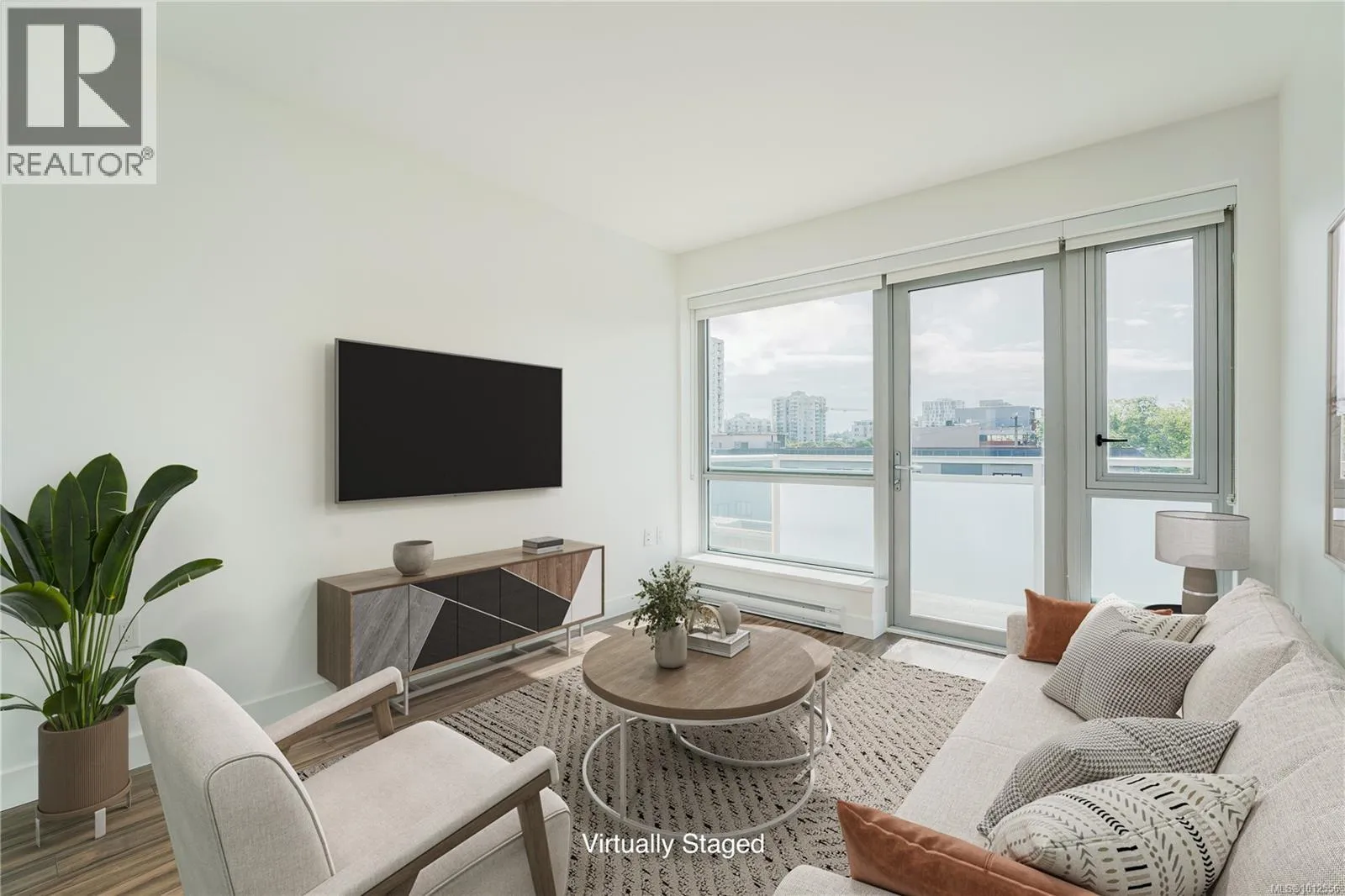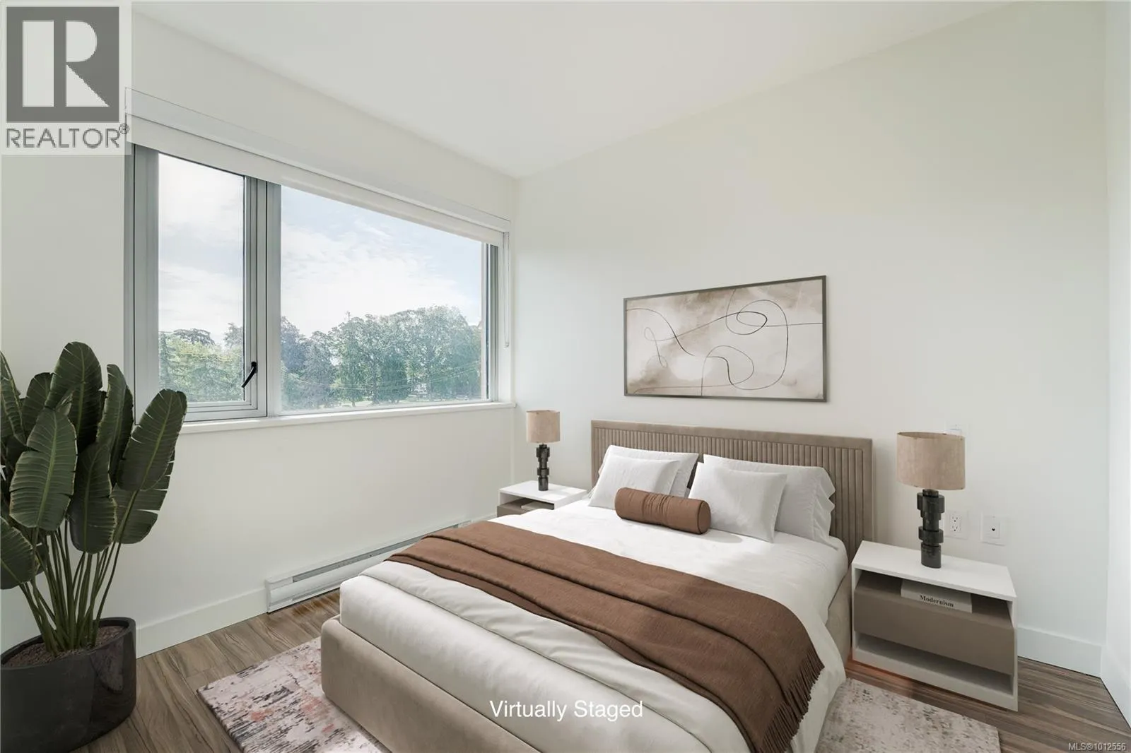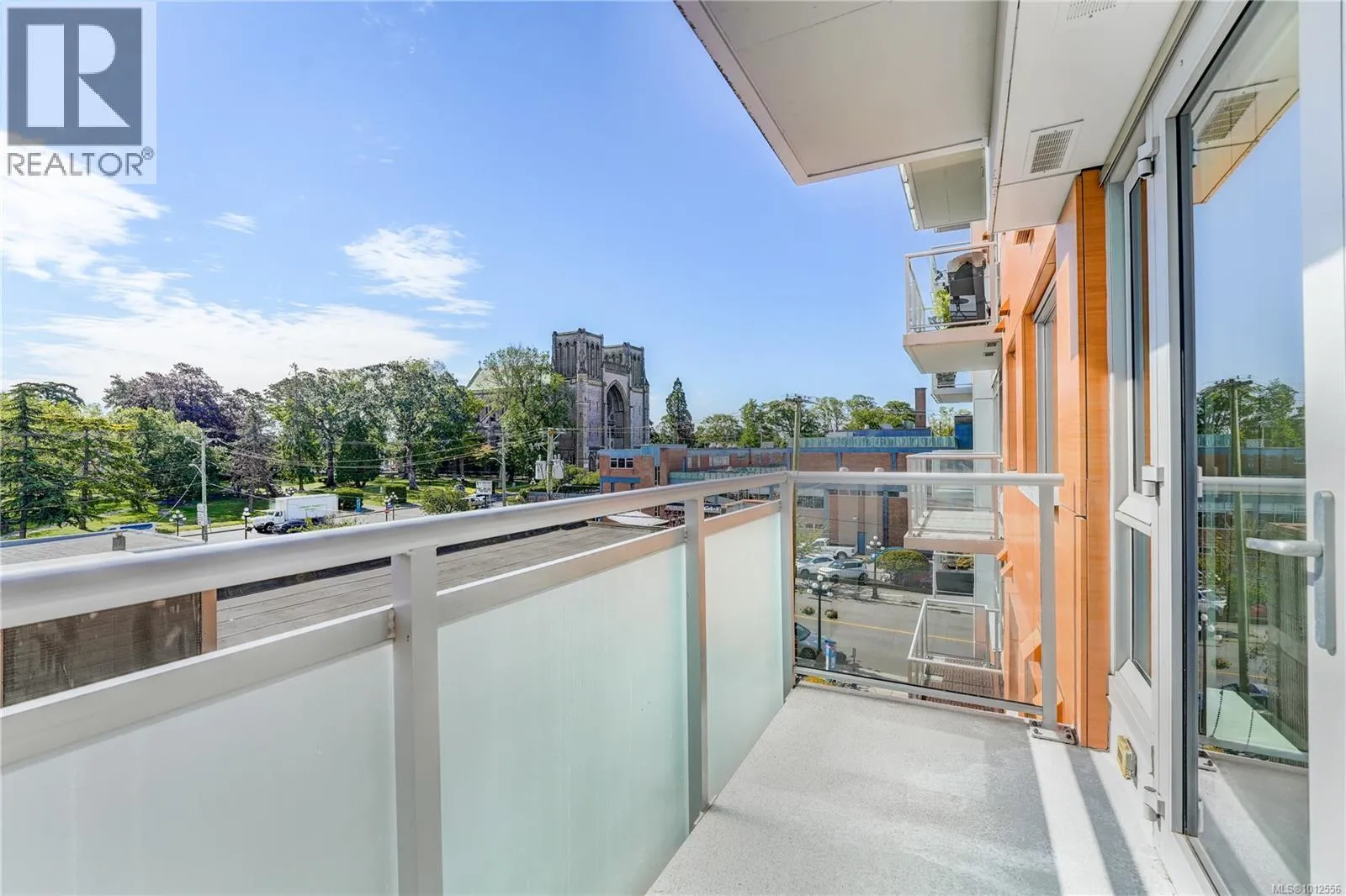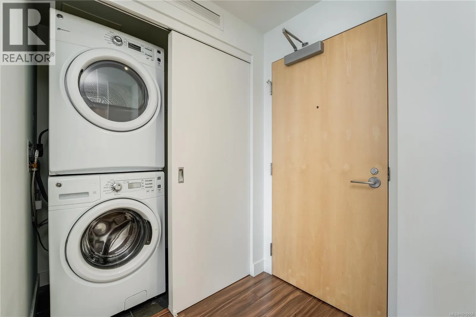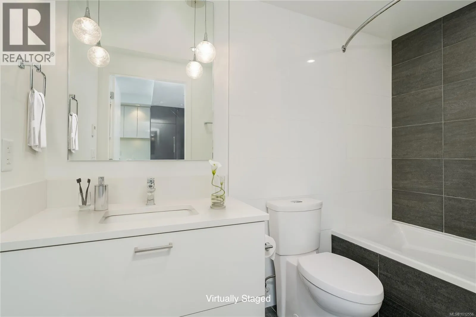 Sophisticated 1 bedroom, 1 bath condo in the Escher building, brought to you by one of Victoria's most trusted developers - Chard Development. This beautiful home offers a generous gourmet kitchen with premier stainless appliances, an open concept plan with a built-in workspace for your personal home office, large walk-in closet in the bedroom, luxurious spa-like bath, high ceilings, expansive windows, plus a spacious east-facing balcony where you can view the iconic Christ Church Cathedral. No need for a car in this walkable and desirable part of downtown, with all amenities just steps away: family park; boutique shops, cafes, groceries and more. Delightful Cook St Village and the picturesque waterfront are also nearby. This impressive suite is equipped with insuite washer/dryer and separate storage locker. The building also features a communal rooftop terrace with lounge, kitchen & BBQ area that provides even more space and dramatic mountain/ocean views. (id:27476)