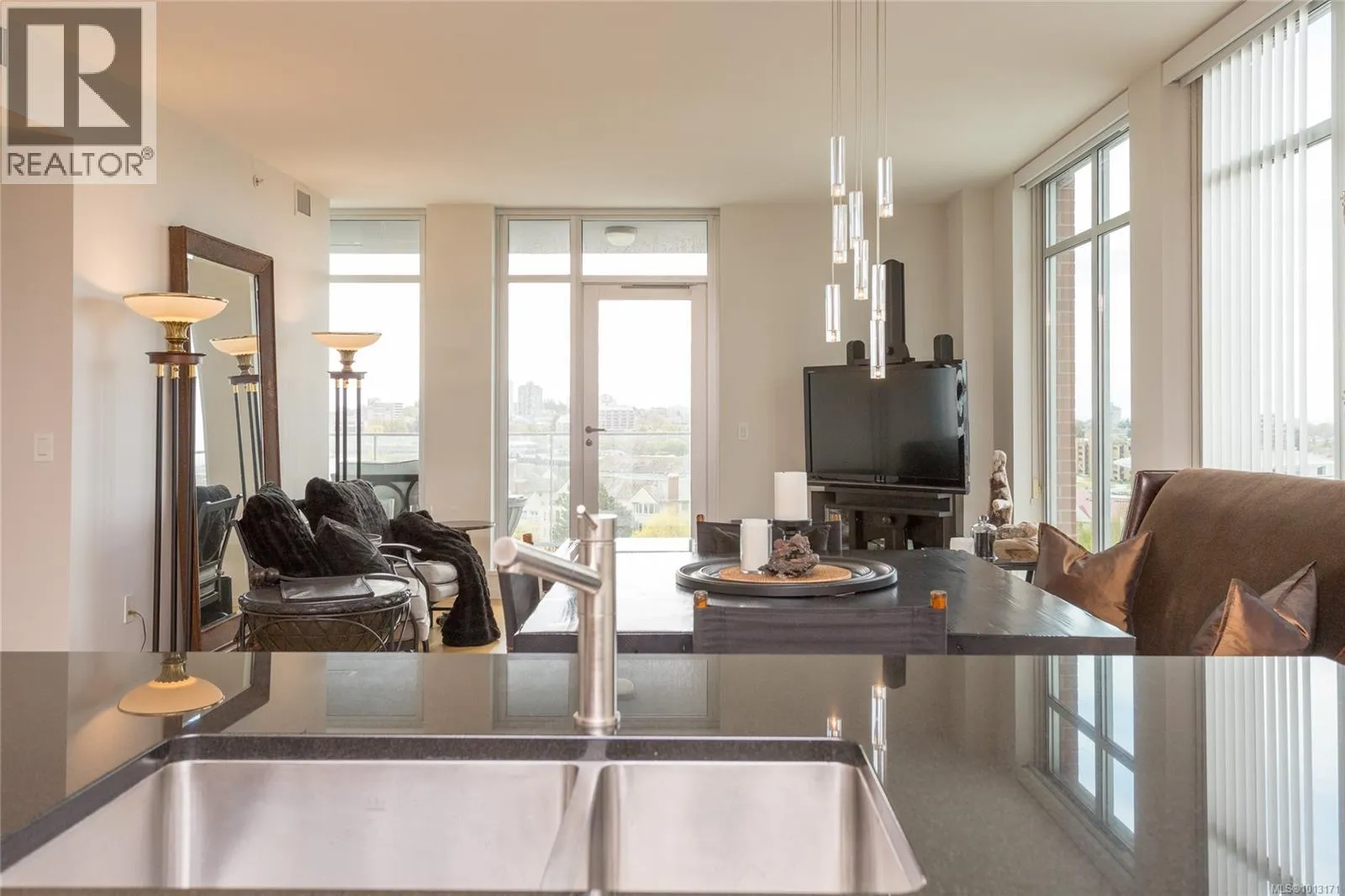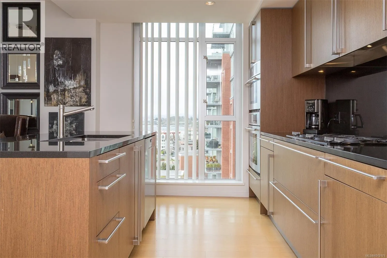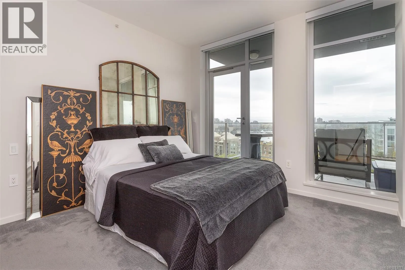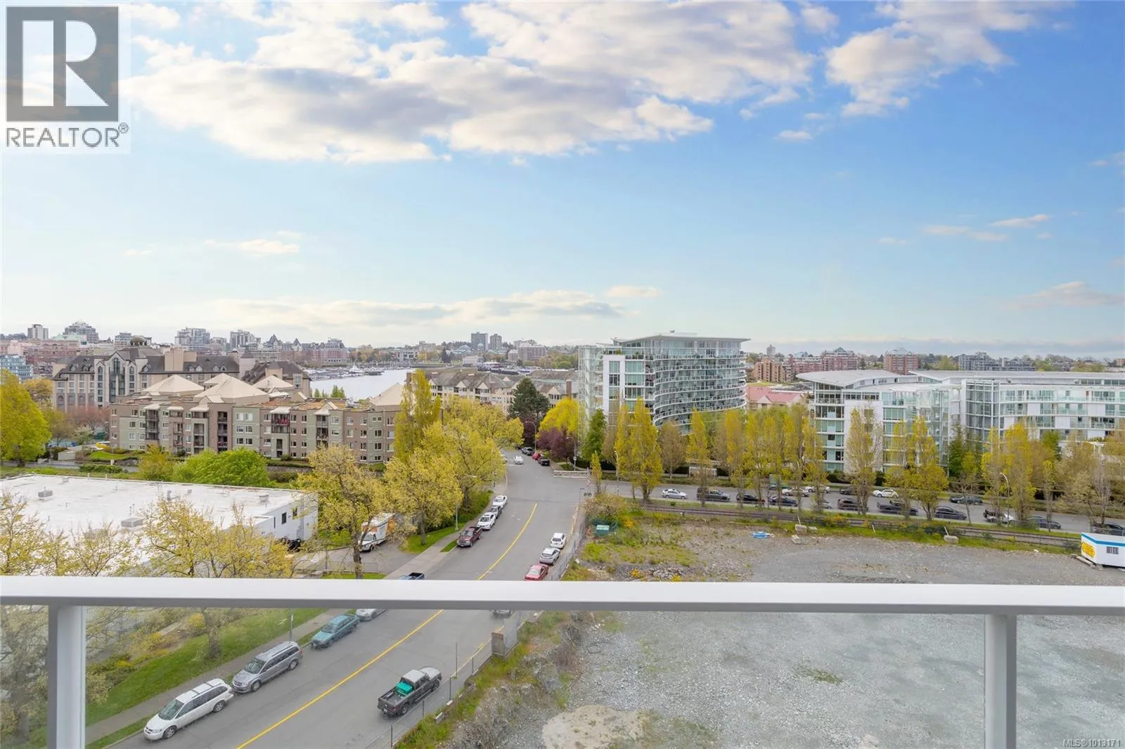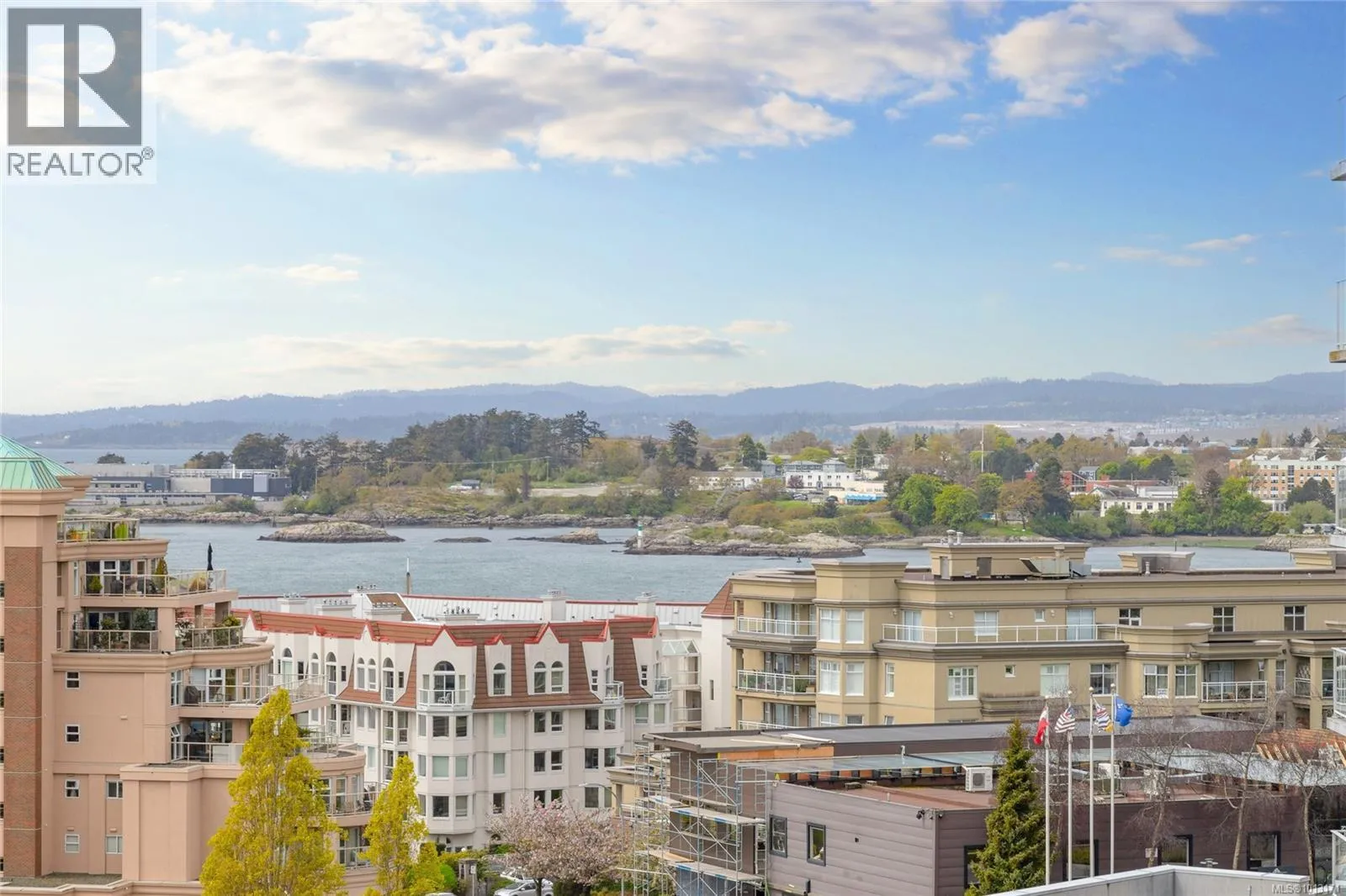Enjoy panoramic views of the ocean and mountains, stretching across the Olympics, Salish Sea, Victoriaâs Inner Harbour, and Downtown Core, all from your private 5th floor balcony. This two bed, two bath home at the highly desirable Bayview One blends luxury and comfort with premium finishes including stone countertops, JennAir stainless steel appliances, gas range, and custom German cabinetry. A thoughtful layout and expansive floor-to-ceiling windows capitalizes on the surrounding views from every room. The primary suite features generous walk-in closets with custom built-ins and flows into a spa-inspired 5pc ensuite. The second bed offers privacy for guests and shared access to the 5pc main bath. Two adjoining parking stalls makes this a rare find! Building amenities include: Geothermal Heating and Cooling; Concierge; Fitness Centre; Hot Tub, Sauna & Steam Rooms; Games Lounge; Outdoor Terrace with BBQ & Fire Pit; Car Wash; Dog Wash Station; and more. Proudly offered at $1,399,900. (id:27476)