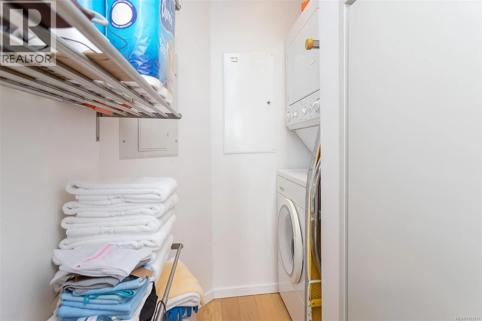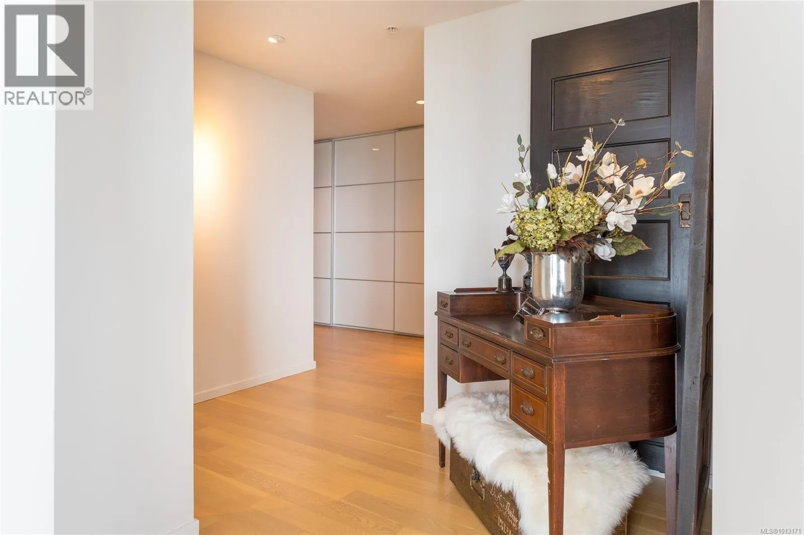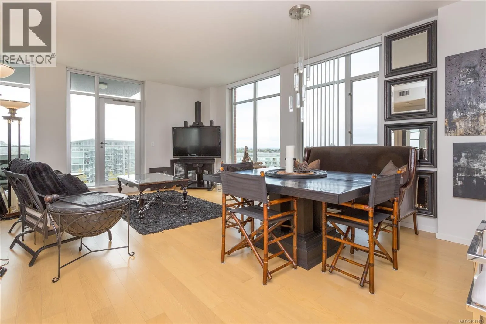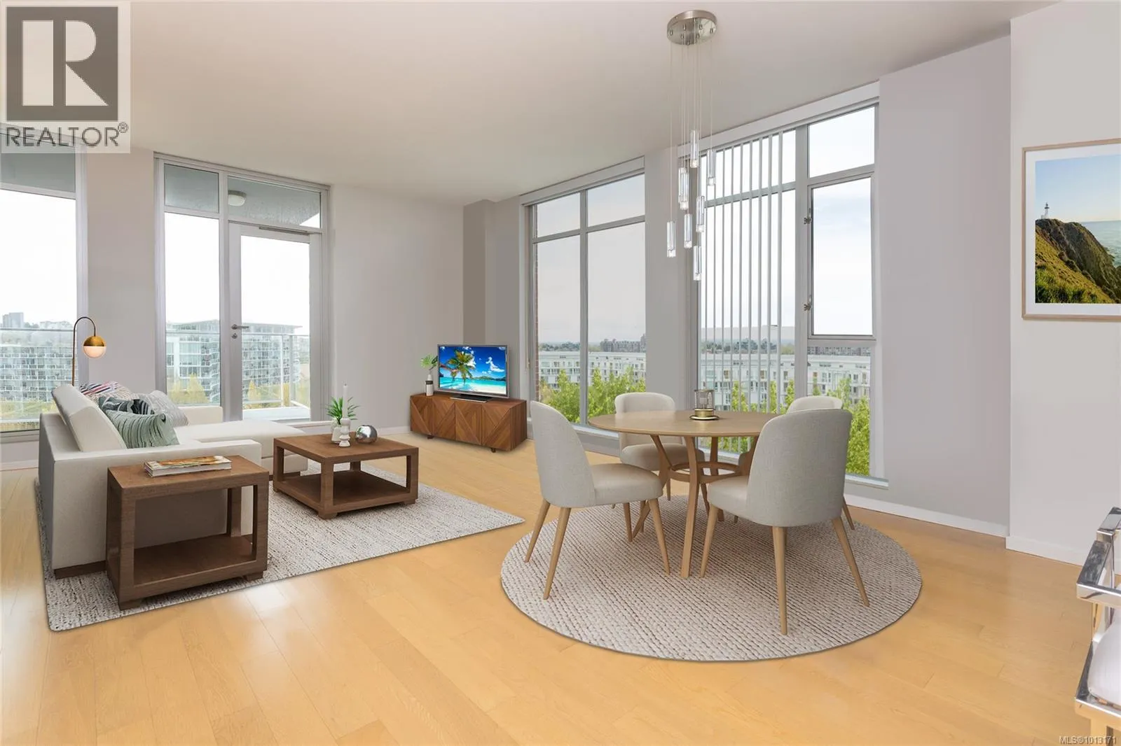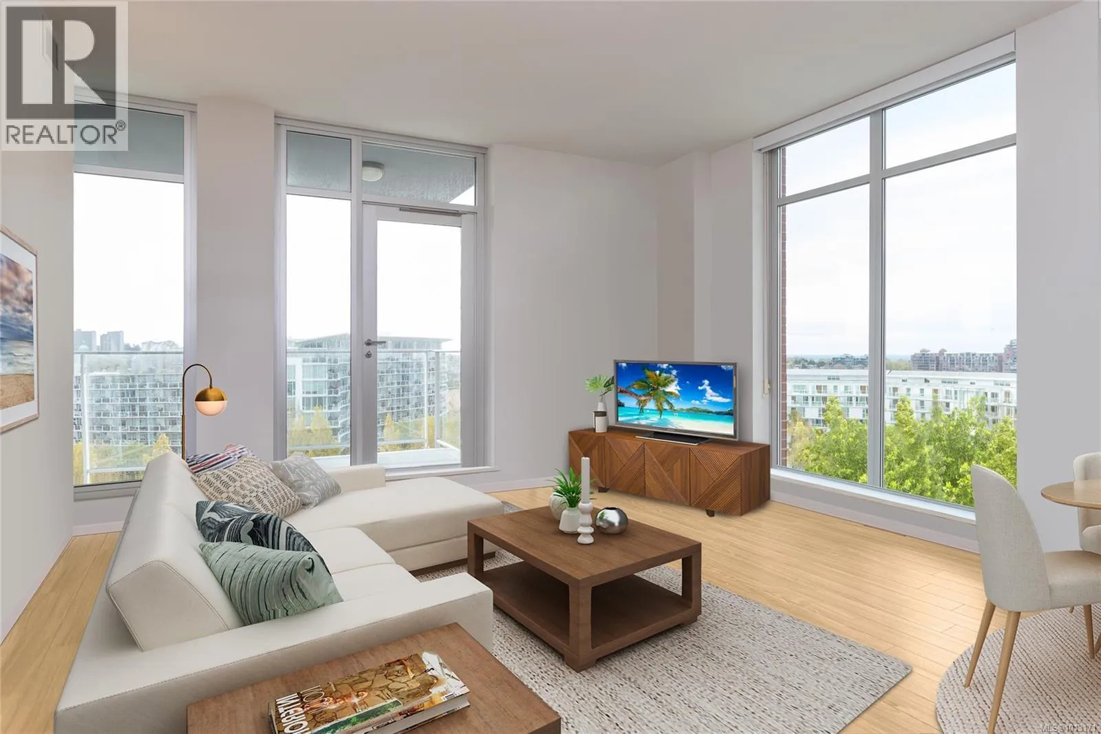 Enjoy panoramic views of the ocean and mountains, stretching across the Olympics, Salish Sea, Victoriaâs Inner Harbour, and Downtown Core, all from your private 5th floor balcony. This two bed, two bath home at the highly desirable Bayview One blends luxury and comfort with premium finishes including stone countertops, JennAir stainless steel appliances, gas range, and custom German cabinetry. A thoughtful layout and expansive floor-to-ceiling windows capitalizes on the surrounding views from every room. The primary suite features generous walk-in closets with custom built-ins and flows into a spa-inspired 5pc ensuite. The second bed offers privacy for guests and shared access to the 5pc main bath. Two adjoining parking stalls makes this a rare find! Building amenities include: Geothermal Heating and Cooling; Concierge; Fitness Centre; Hot Tub, Sauna & Steam Rooms; Games Lounge; Outdoor Terrace with BBQ & Fire Pit; Car Wash; Dog Wash Station; and more. Proudly offered at $1,399,900. (id:27476)