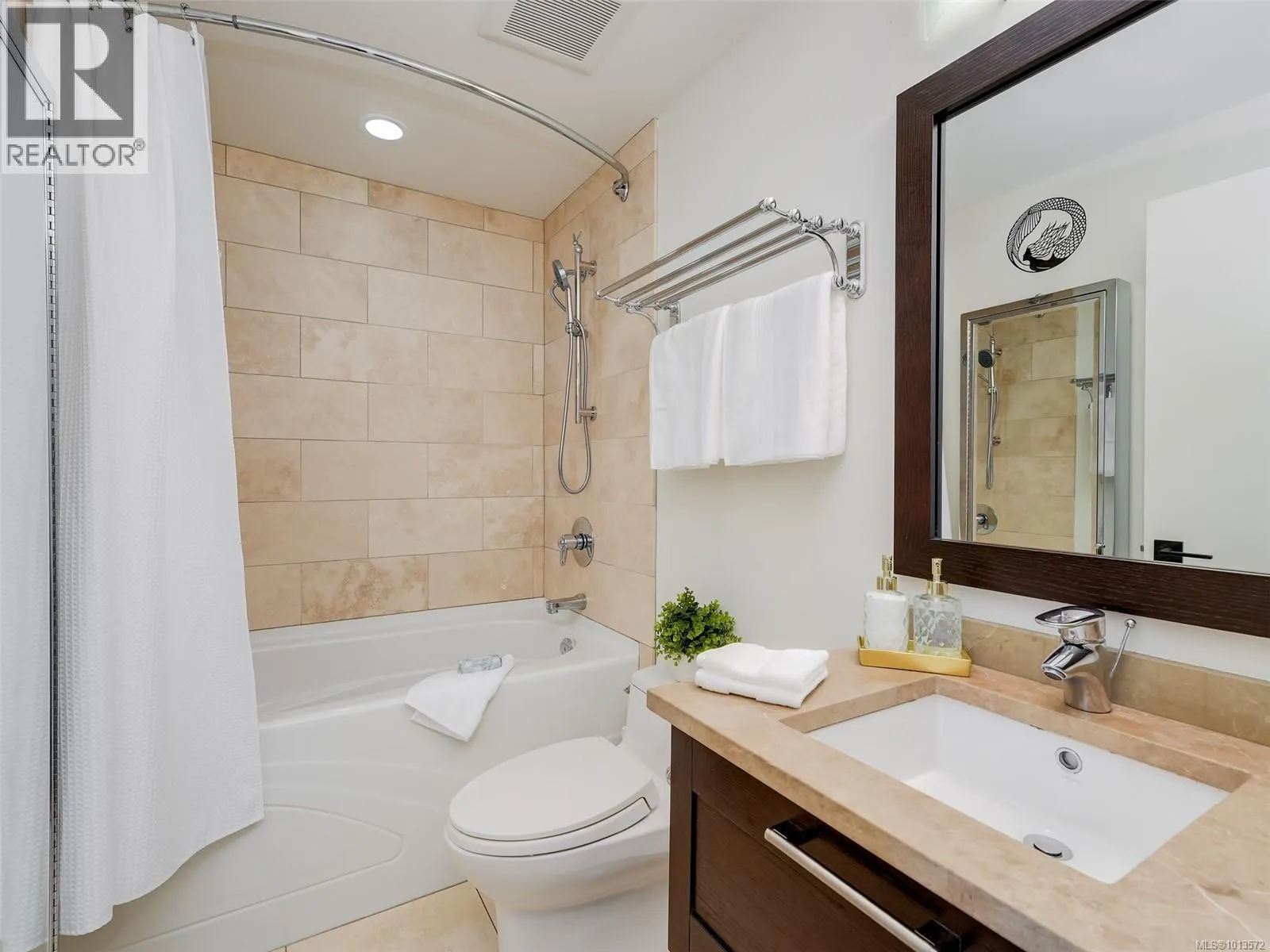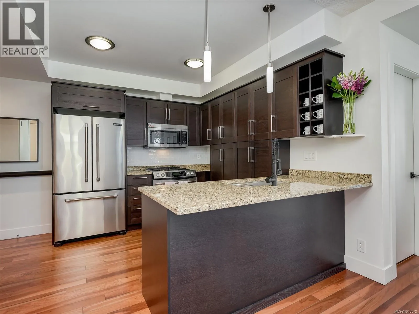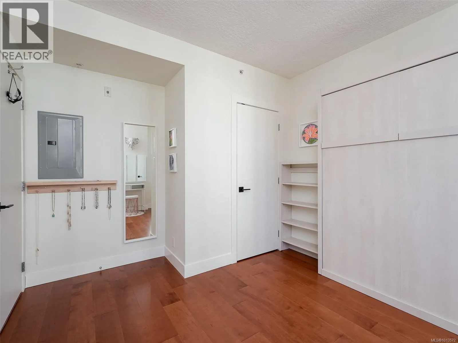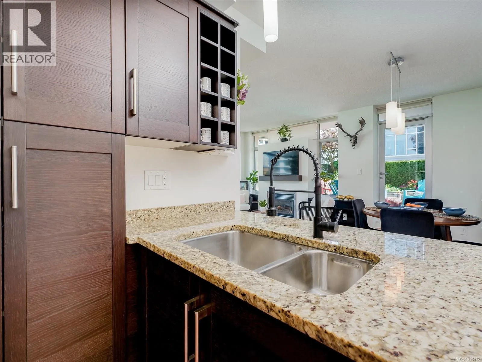 Discover refined living at Aria, one of Victoriaâs most coveted addresses in the Humboldt Valley. This bright two-bedroom, two-bath corner suite is filled with natural light and features a versatile glass-enclosed sunroomâperfect as a dedicated home office, yoga space, or creative studio. A completely private 226 sq. ft. garden terrace extends the living space outdoors, offering a serene urban retreat. The thoughtful floor plan separates the bedrooms, with the second enhanced by a custom Murphy bed for added flexibility. Move-in ready and tastefully appointed, this home is ideal for those seeking a balance of work and lifestyle. Residents enjoy a strong community, with concierge service, fitness centre with sauna, lounge, workshop, secure parking, and vibrant social clubs including book, walking, and craft groups. Pet-friendly with no size restrictions, Aria blends sophistication, convenience, and connection in the heart of downtown Victoria. Truly a wonderful place to call home! (id:27476)