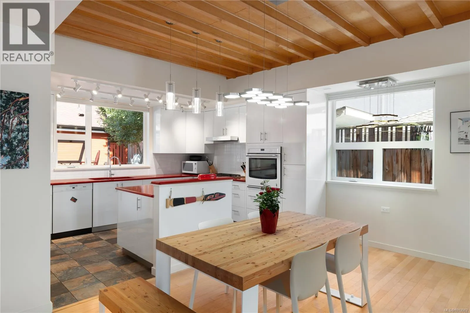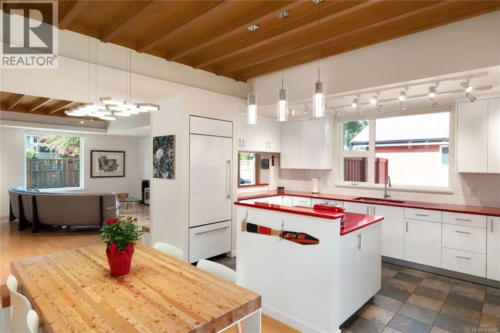 Welcome to 1530 Brooke Street, a thoughtfully designed home in sought-after Fairfield East. Offering over 3,000 sq. ft. of living space including a detached studio, this modern residence blends function with architectural flair. The main floor features a bright, open-concept layout with a spacious living room, dining area, and chefâs kitchen with striking red countertops, all framed by exposed wood ceilings and abundant natural light. Upstairs, find a generous primary suite with walk-in closet, spa-inspired ensuite, and private balcony, along with two additional bedrooms and a full bath. The detached studio with vaulted ceilings and 2-piece bath is ideal for guests, work, or creative pursuits. Outdoor living shines with multiple patios and a landscaped courtyard perfect for entertaining. Situated steps to schools, parks, Cook Street Village, and the ocean, this is a rare opportunity to own a unique home in one of Victoriaâs most desirable neighbourhoods. (id:27476)