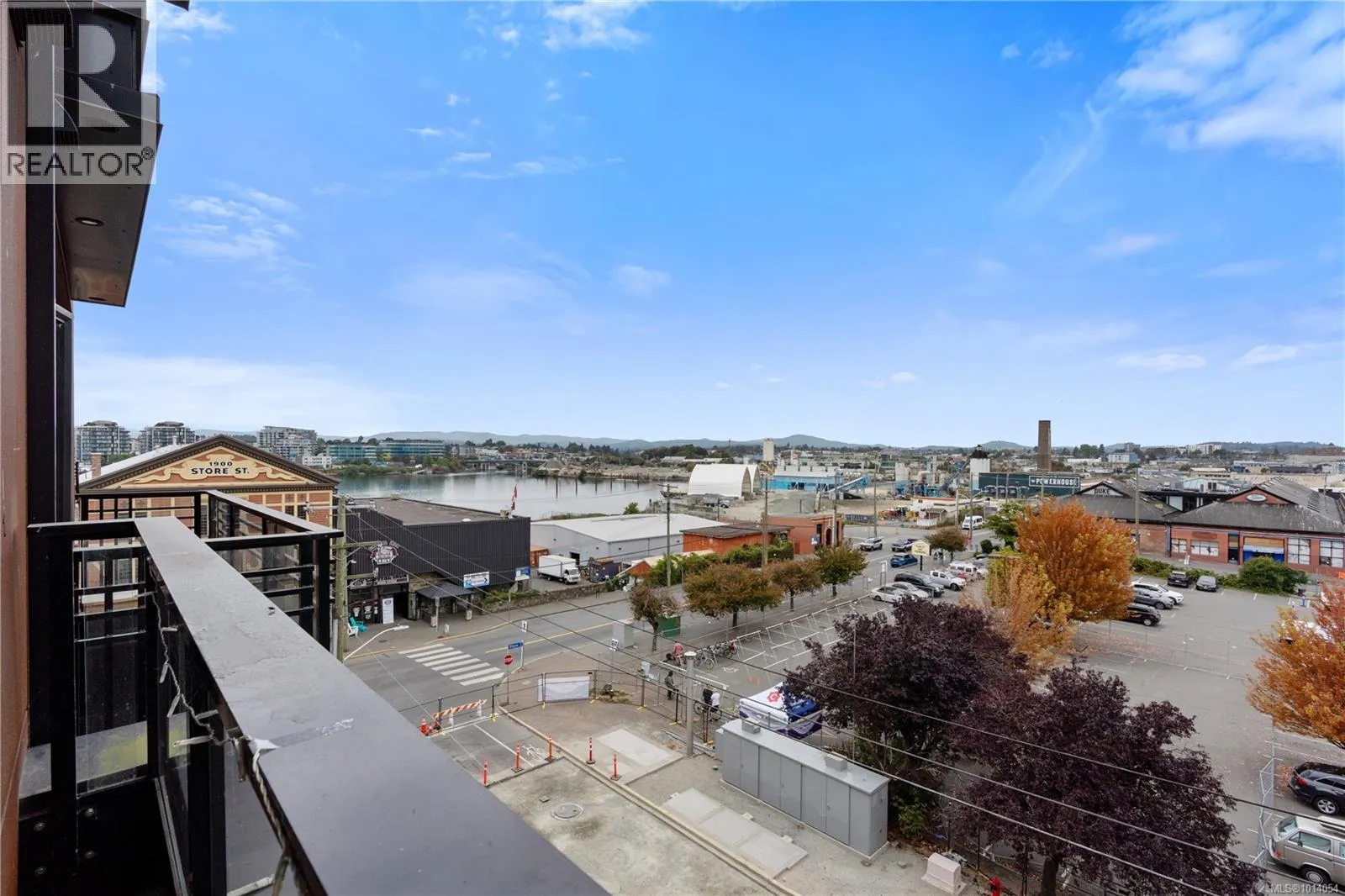 Welcome to Ironworks, a modern condo situated in the heart of Victoria's vibrant and colourful Old Town district. This top-floor suite offers stunning views of the Gorge waterway and features open-concept living and dining space that flows into a contemporary kitchen. The kitchen boasts premium appliances, quartz countertops, a unique backsplash, dual-tone cabinetry, and open shelving. Inside, you'll find convenient in-suite laundry and a beautiful 3-piece bathroom with sleek, matte black fixtures and a rain shower head. Step outside your door and you're just moments from the city's best restaurants, cafes, shops, markets, and nightlife. You'll also have access to the building's spacious private courtyard with lush greenery, providing a peaceful retreat from the downtown bustle. (id:27476)