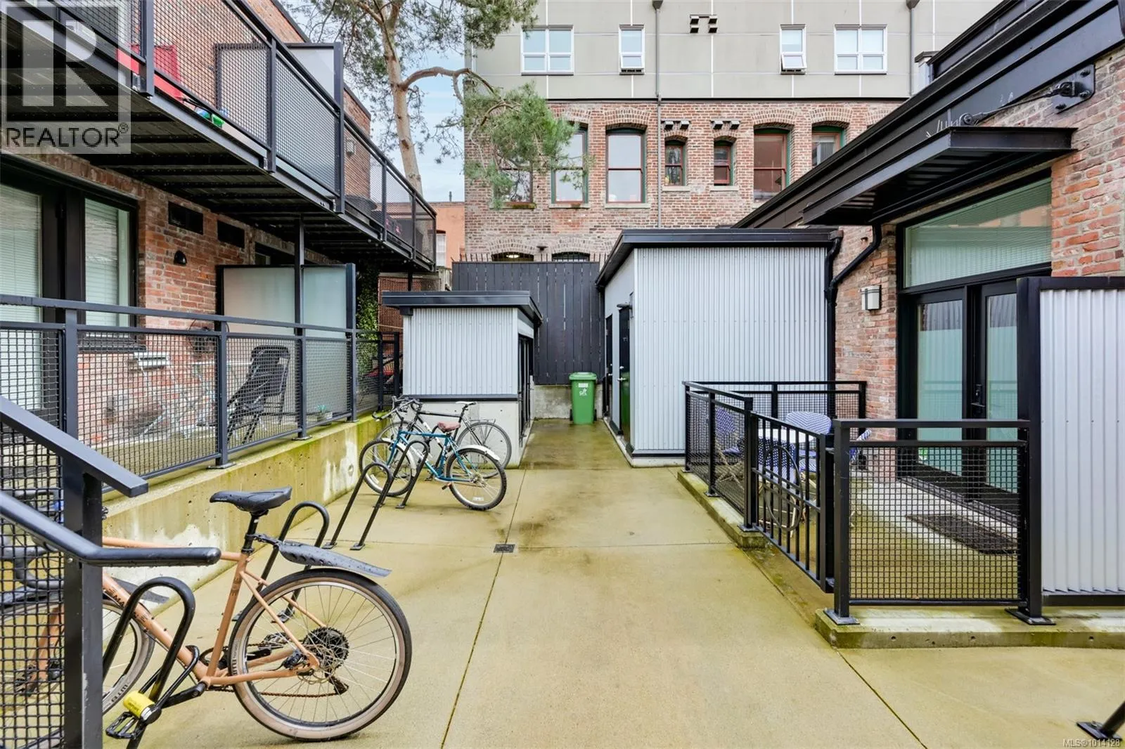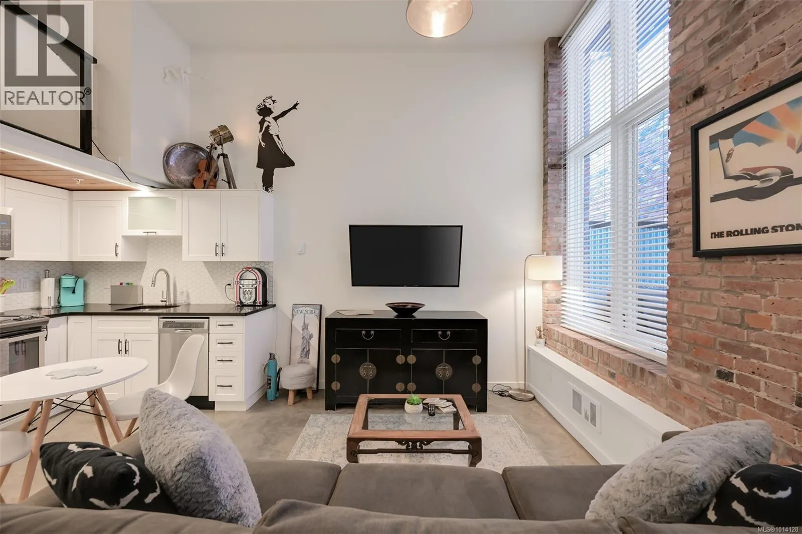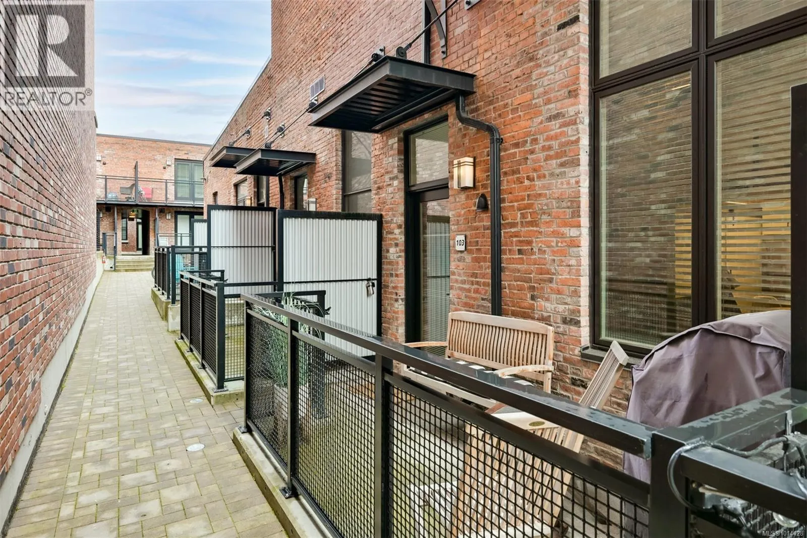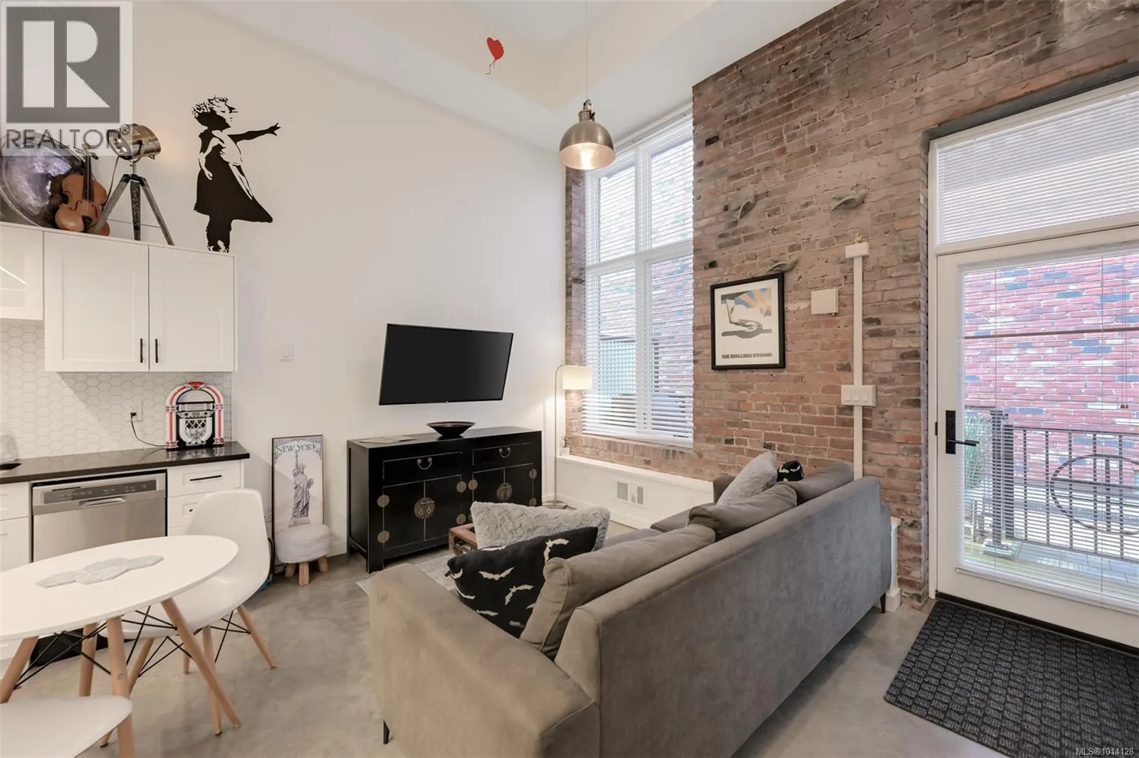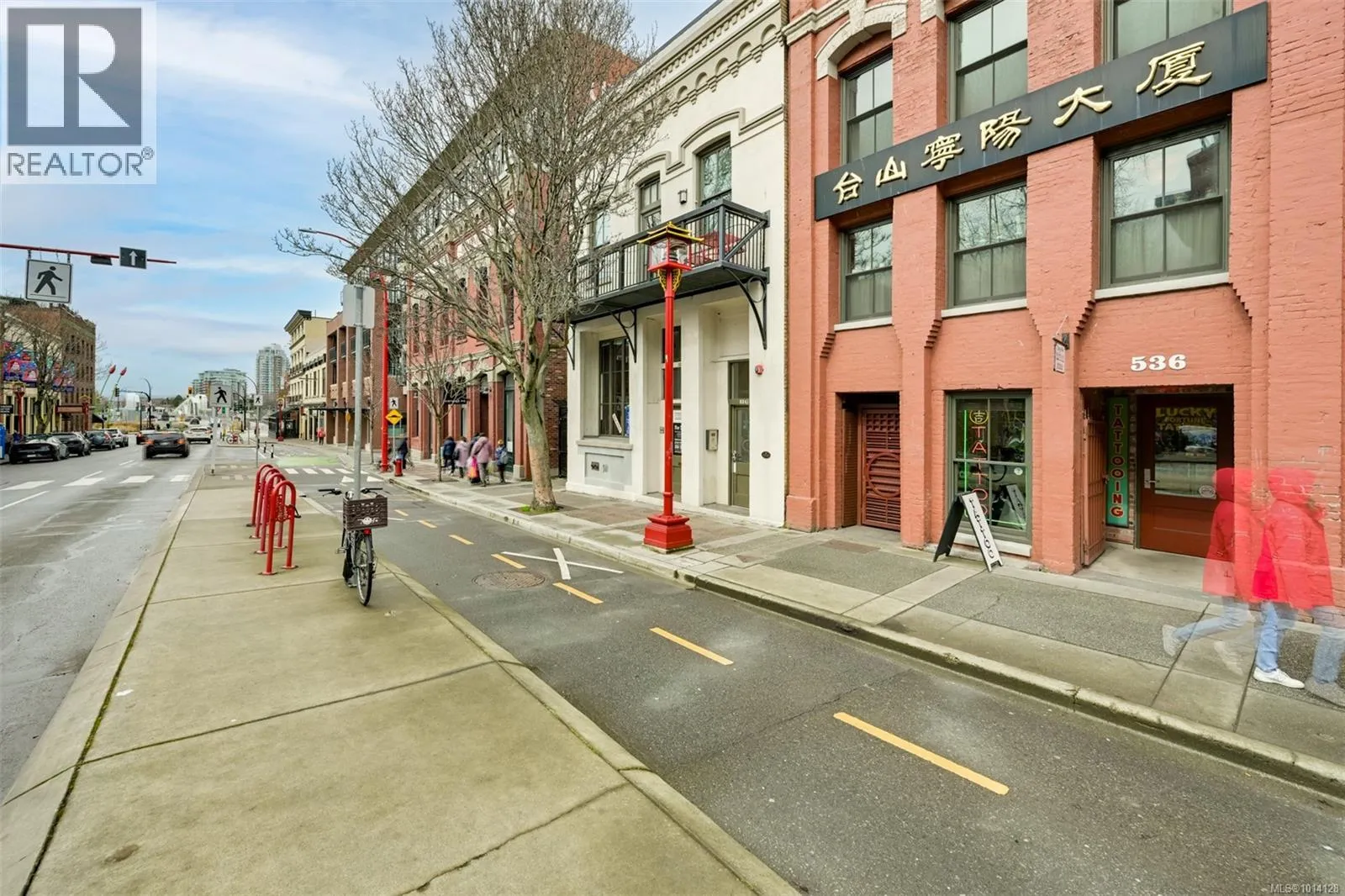 Welcome to the Lum Sam & Lee Chong Building, an architecturally significant conversion of the original 1884 structure, beautifully remastered by Le Fevre & Company in 2017. Tucked within a quiet brick and cobblestone walkway between Chinatown and historic Pandora Avenue, this unique ground-level home offers a blend of heritage charm and modern convenience. Step inside to soaring ceilings, exposed brick walls, and a thoughtfully designed open floorplan. The loft-style bedroom overlooks the main living area, creating a spacious yet cozy atmosphere. A full bathroom, in-suite laundry, and a private entrance add to the functionality of this inviting home. For cyclists and outdoor lovers, the generous patio is perfect for biking straight in and unwinding in the fresh air. With the Inner Harbour, shops, dining, and everything downtown Victoria has to offer just steps away, this is urban living at its finest. Donât miss this rare opportunity to own a OTD -1 zoning (id:27476)