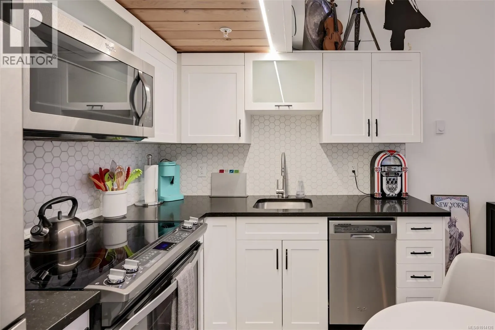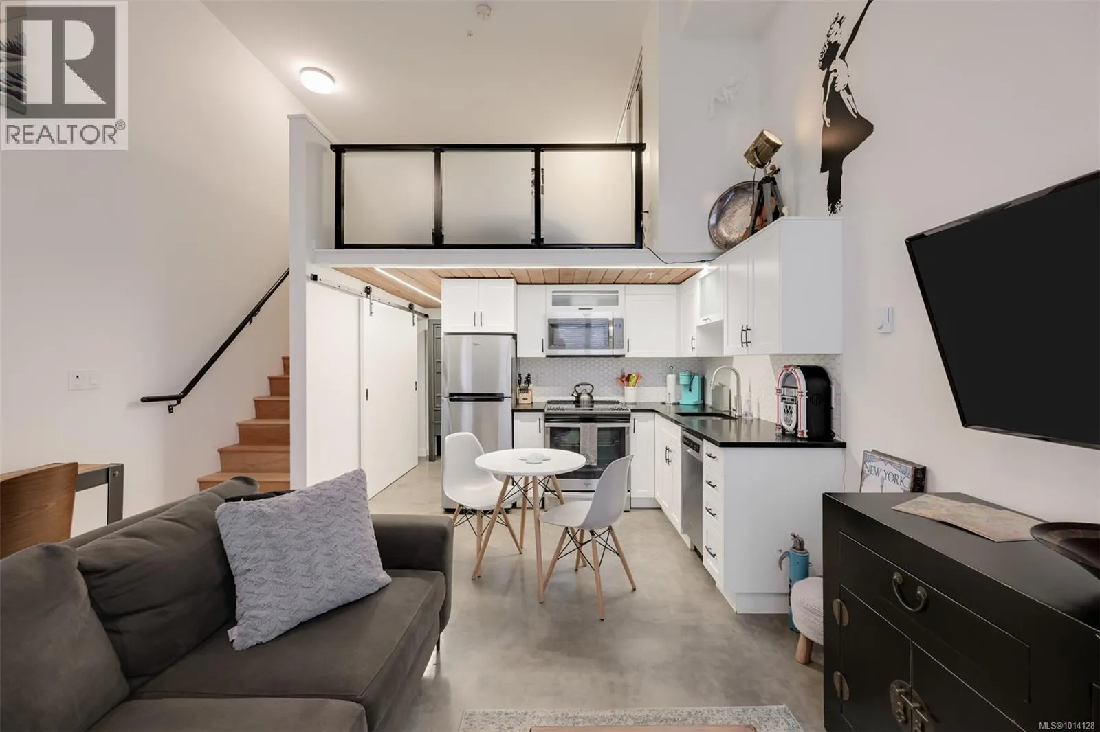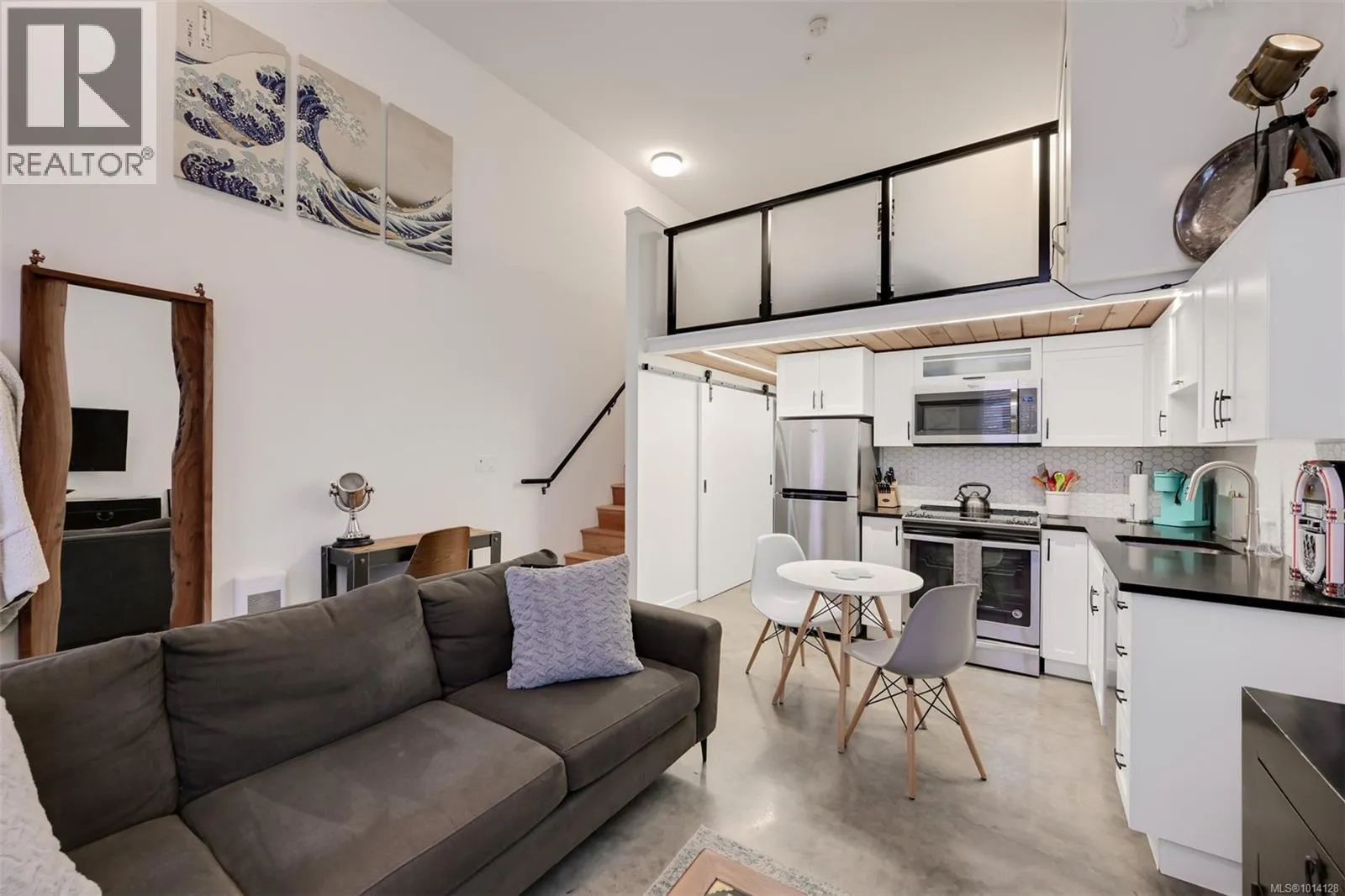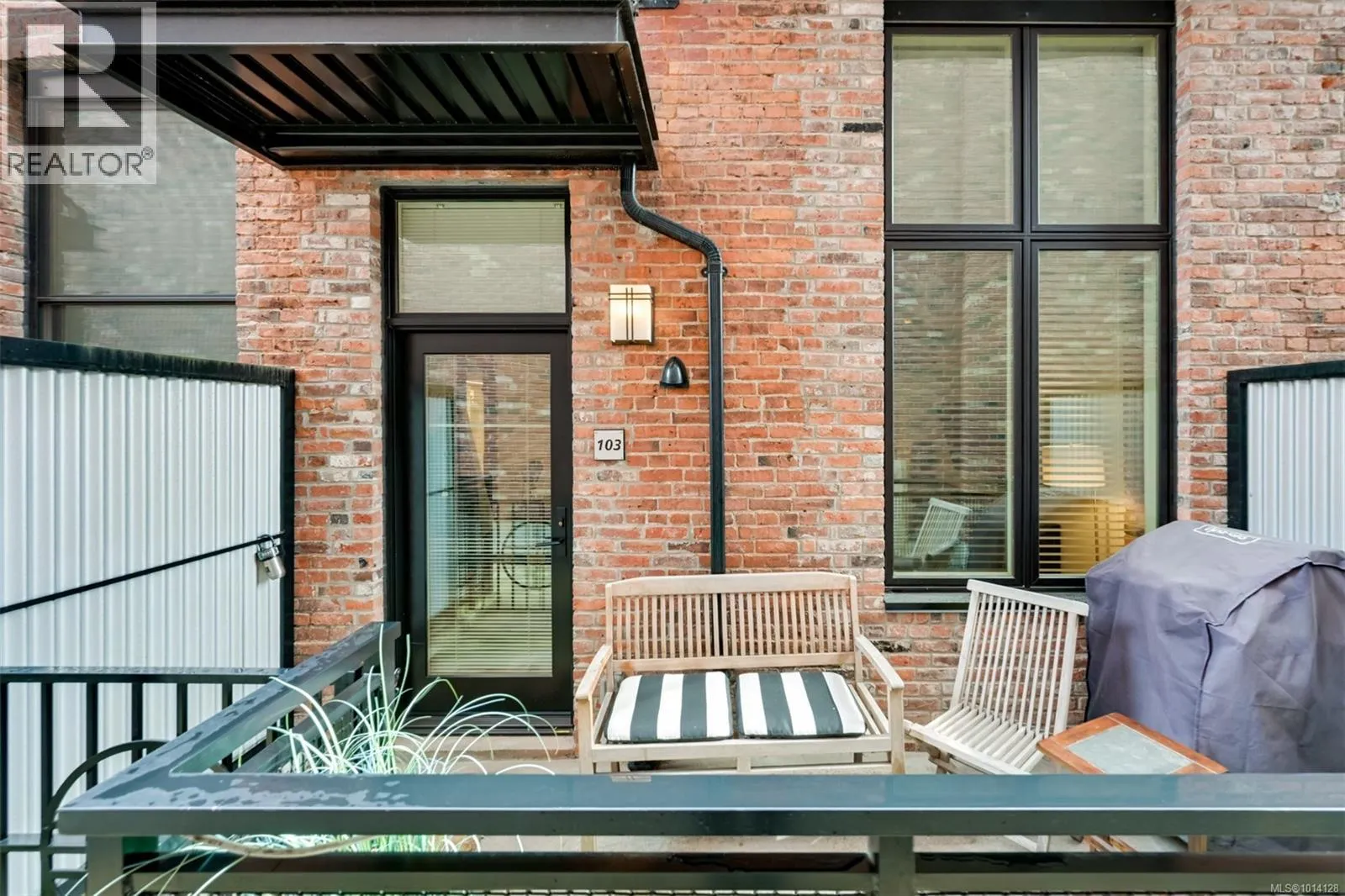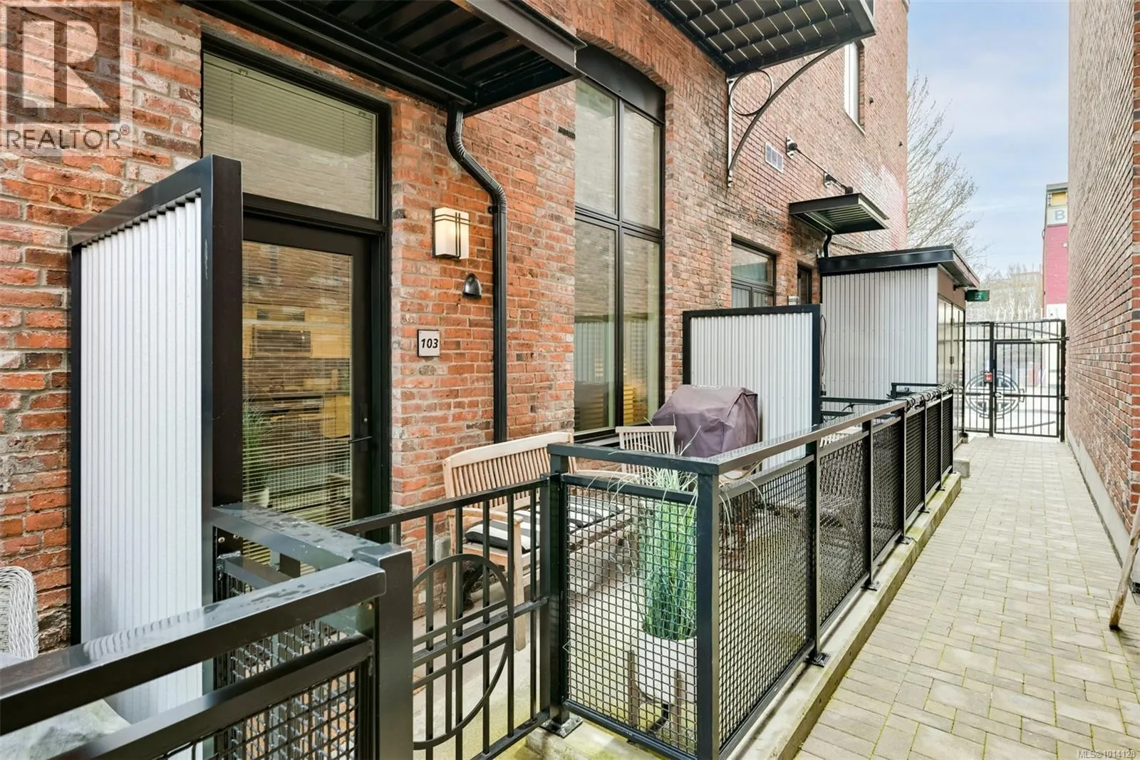 Welcome to the Lum Sam & Lee Chong Building, an architecturally significant conversion of the original 1884 structure, beautifully remastered by Le Fevre & Company in 2017. Tucked within a quiet brick and cobblestone walkway between Chinatown and historic Pandora Avenue, this unique ground-level home offers a blend of heritage charm and modern convenience. Step inside to soaring ceilings, exposed brick walls, and a thoughtfully designed open floorplan. The loft-style bedroom overlooks the main living area, creating a spacious yet cozy atmosphere. A full bathroom, in-suite laundry, and a private entrance add to the functionality of this inviting home. For cyclists and outdoor lovers, the generous patio is perfect for biking straight in and unwinding in the fresh air. With the Inner Harbour, shops, dining, and everything downtown Victoria has to offer just steps away, this is urban living at its finest. Donât miss this rare opportunity to own a OTD -1 zoning (id:27476)