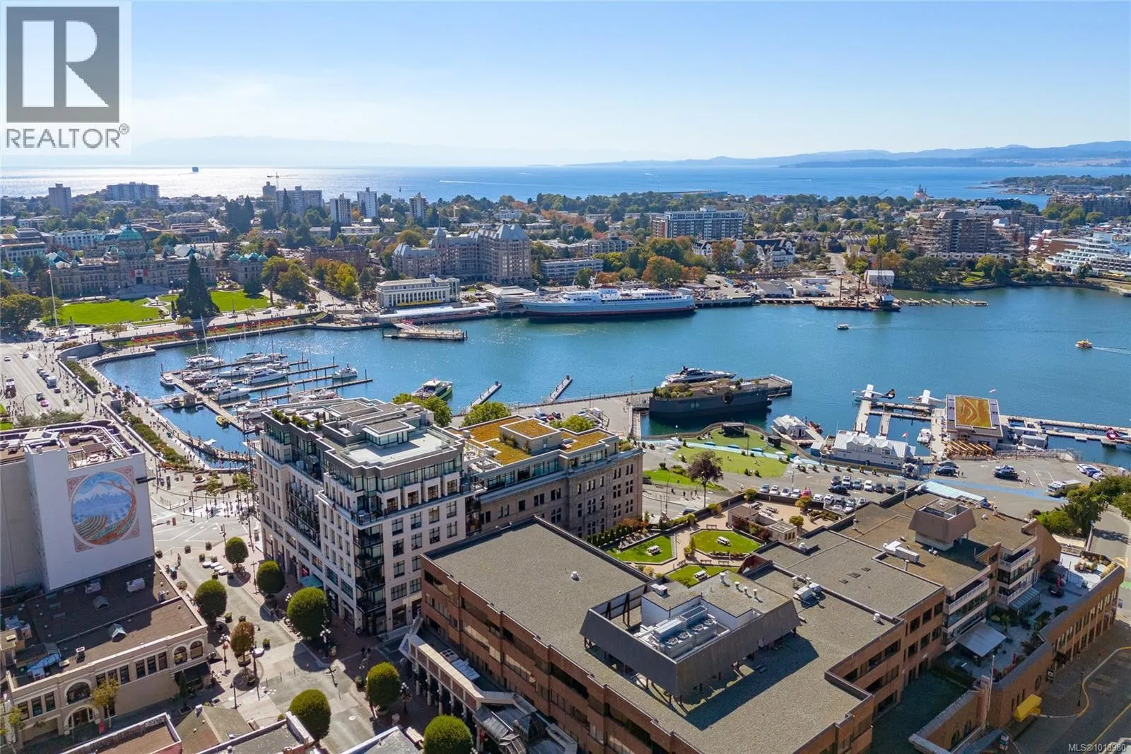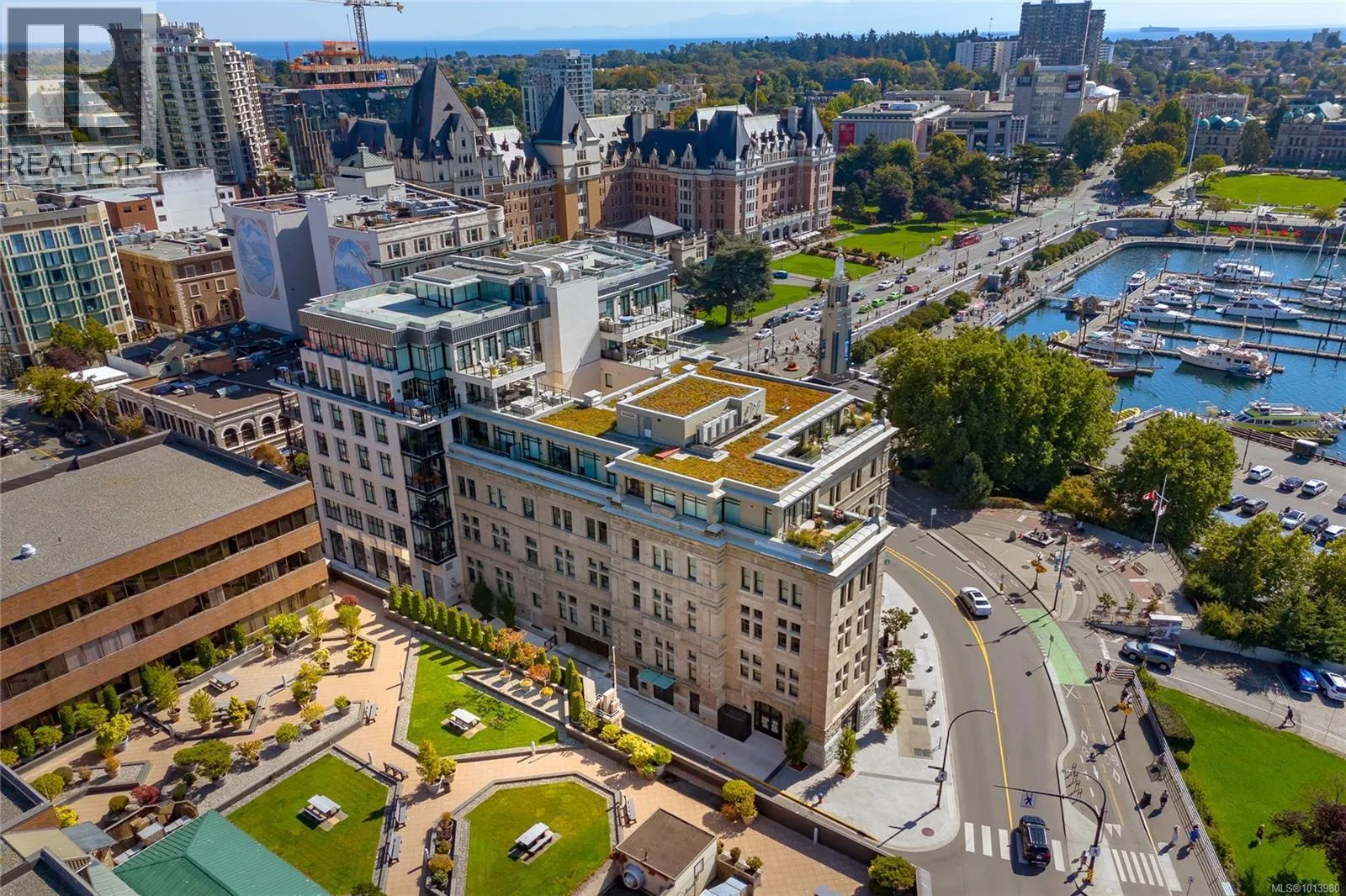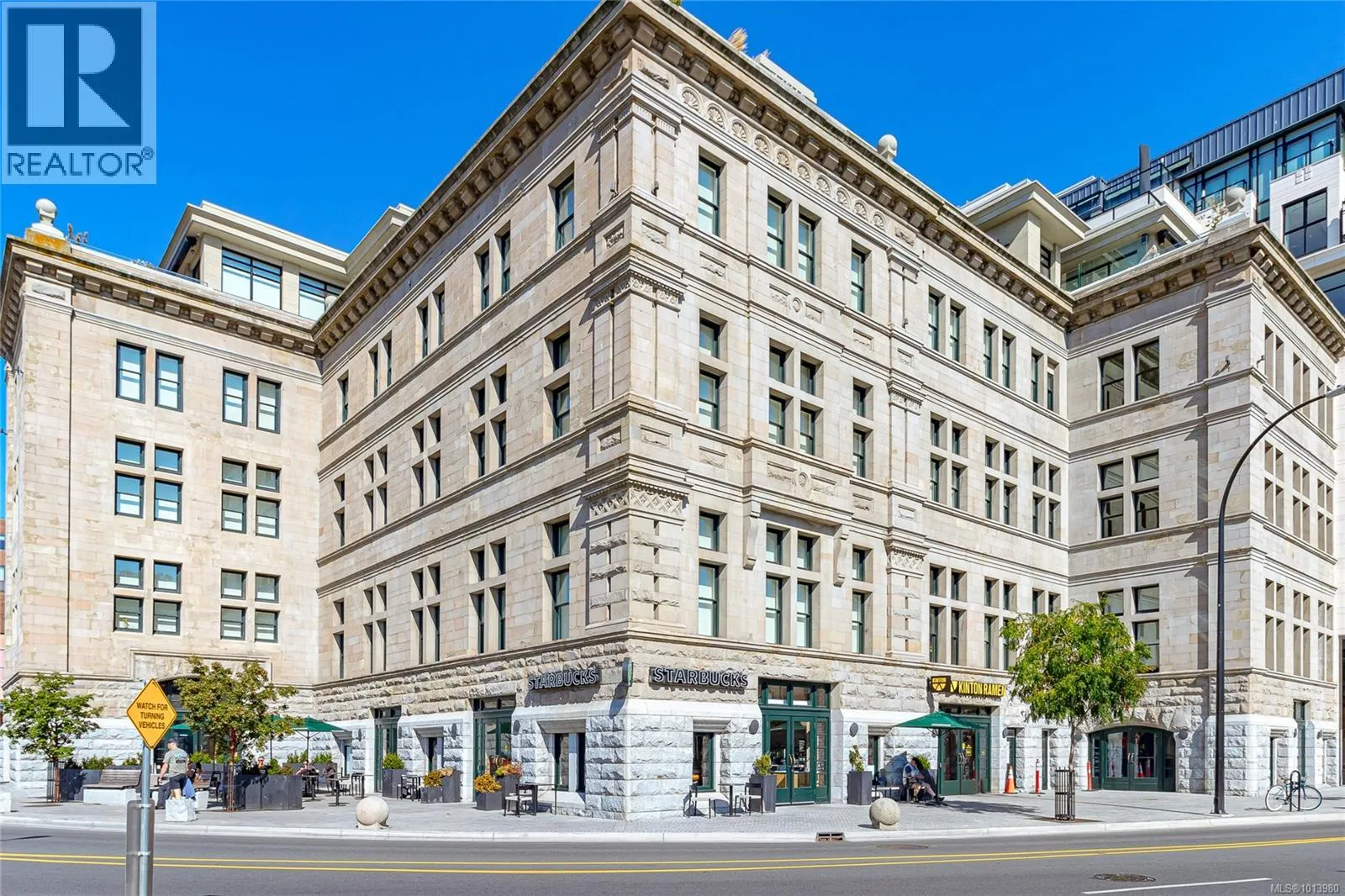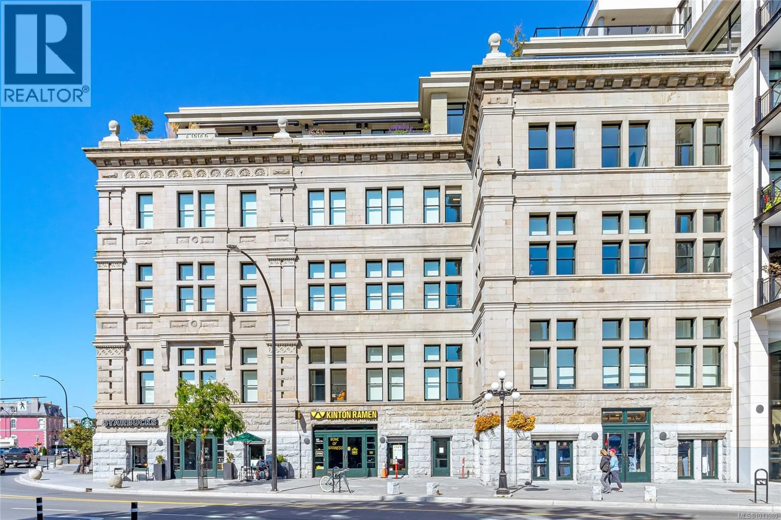 Located in the iconic Customs House on Victoriaâs Inner Harbour, this studio home offers 524 sq ft of well-designed living space. The perfect Pied-Ã -terre, the open layout features 10â ceilings, wide-plank hardwood floors, and a modern kitchen with Bosch appliances, quartz countertops, and sleek cabinetry. The main living area extends seamlessly to a spacious private patio, perfect for morning coffee or evening relaxation. Thoughtful details include in-suite laundry and ample storage. Residents enjoy access to premium amenities including a fully equipped gym, steam and sauna rooms, concierge service, and an elegant lobby that reflects the buildingâs heritage character. Steps from the Empress Hotel, BC Legislature, restaurants, shopping, and the Inner Harbour, this is a rare opportunity to enjoy a landmark building in one of Victoriaâs most desirable locations. (id:27476)