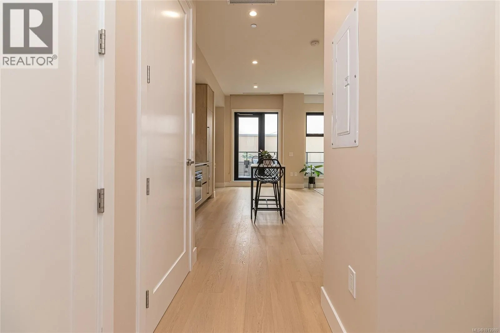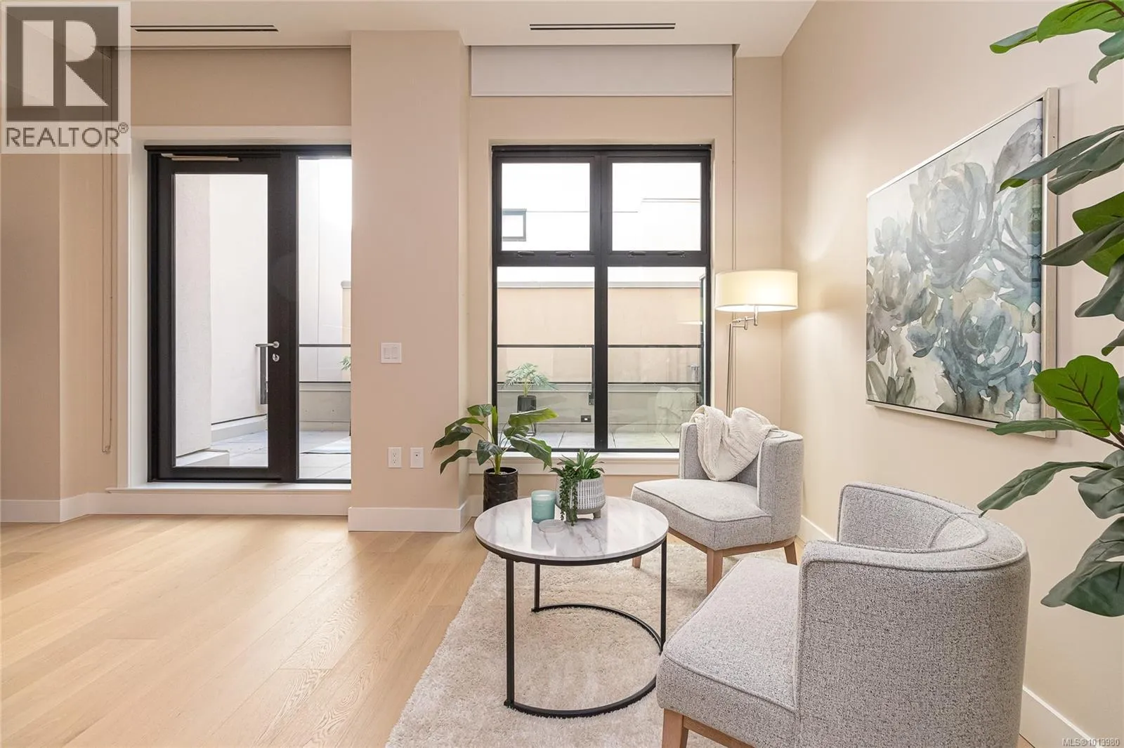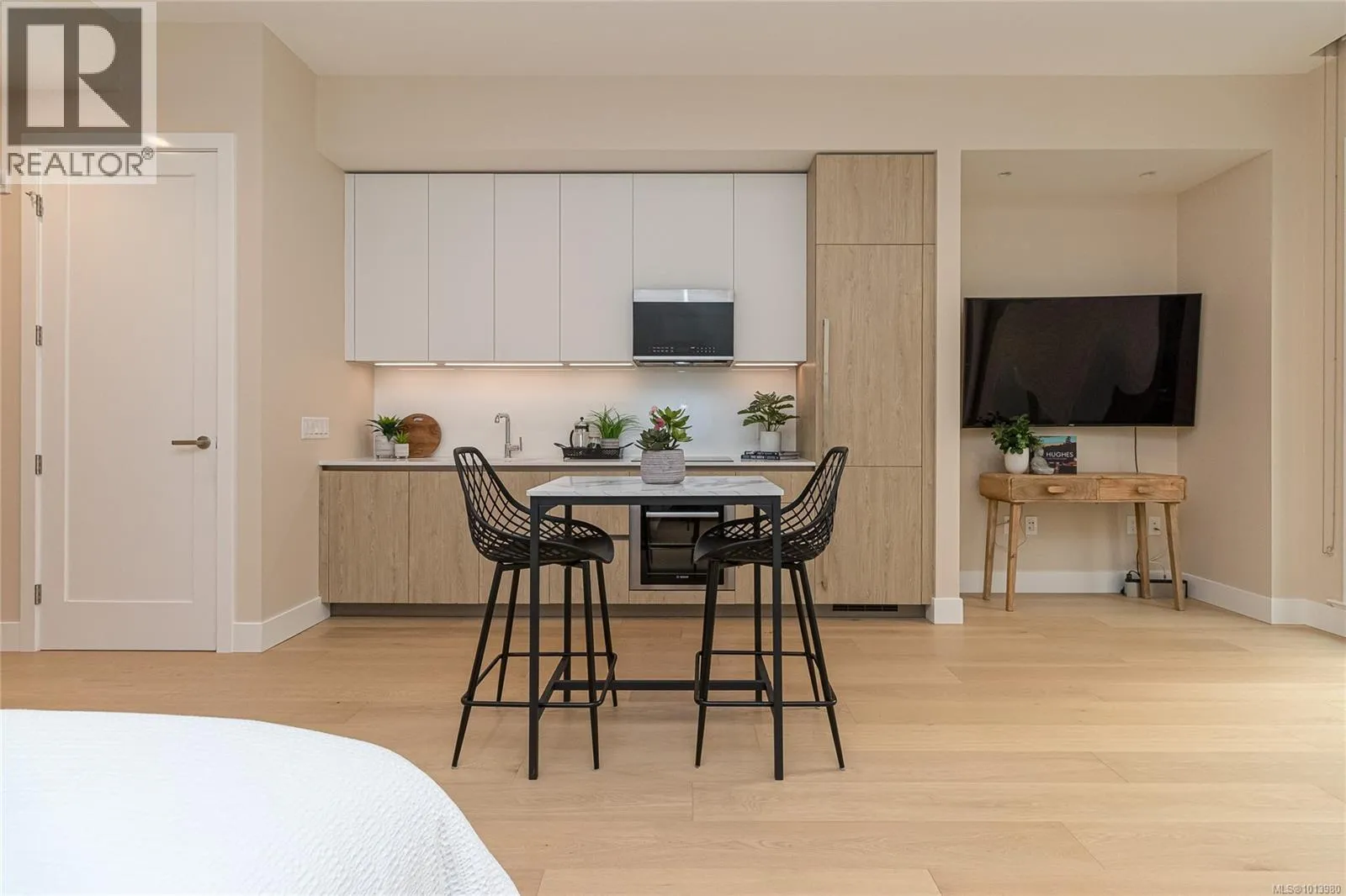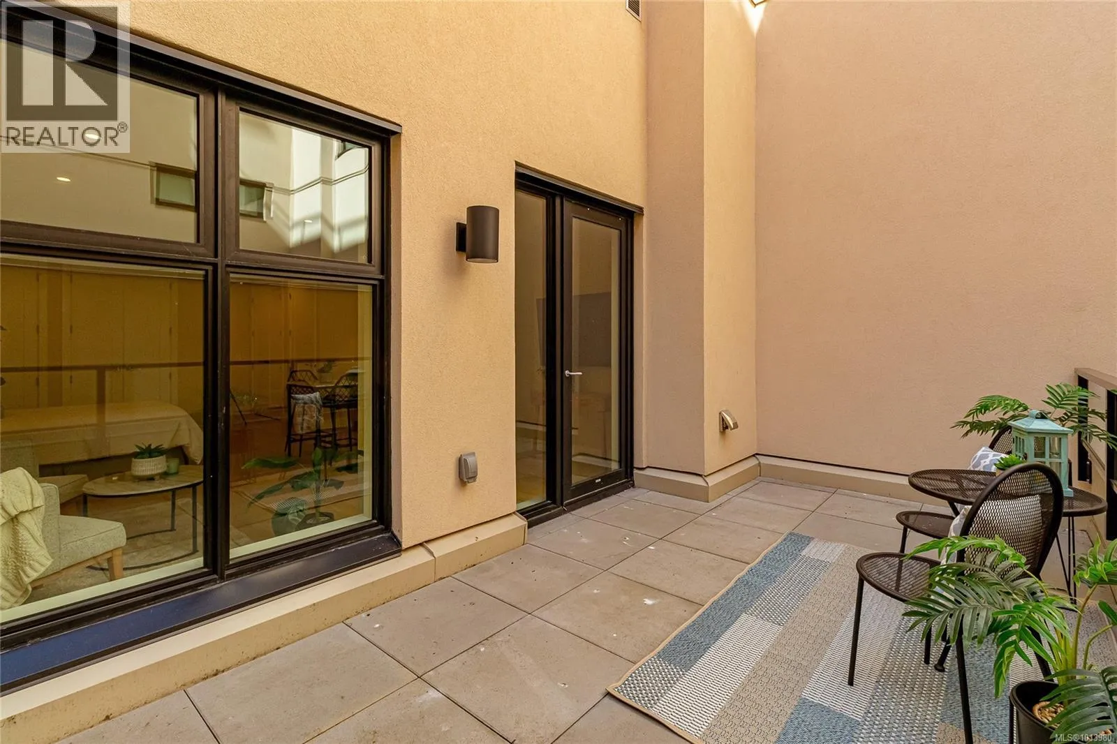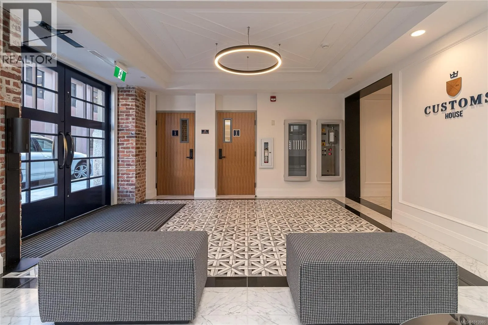 Located in the iconic Customs House on Victoriaâs Inner Harbour, this studio home offers 524 sq ft of well-designed living space. The perfect Pied-Ã -terre, the open layout features 10â ceilings, wide-plank hardwood floors, and a modern kitchen with Bosch appliances, quartz countertops, and sleek cabinetry. The main living area extends seamlessly to a spacious private patio, perfect for morning coffee or evening relaxation. Thoughtful details include in-suite laundry and ample storage. Residents enjoy access to premium amenities including a fully equipped gym, steam and sauna rooms, concierge service, and an elegant lobby that reflects the buildingâs heritage character. Steps from the Empress Hotel, BC Legislature, restaurants, shopping, and the Inner Harbour, this is a rare opportunity to enjoy a landmark building in one of Victoriaâs most desirable locations. (id:27476)
