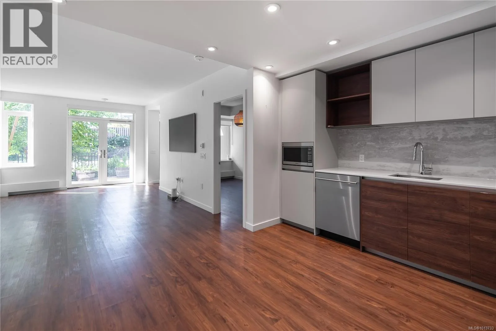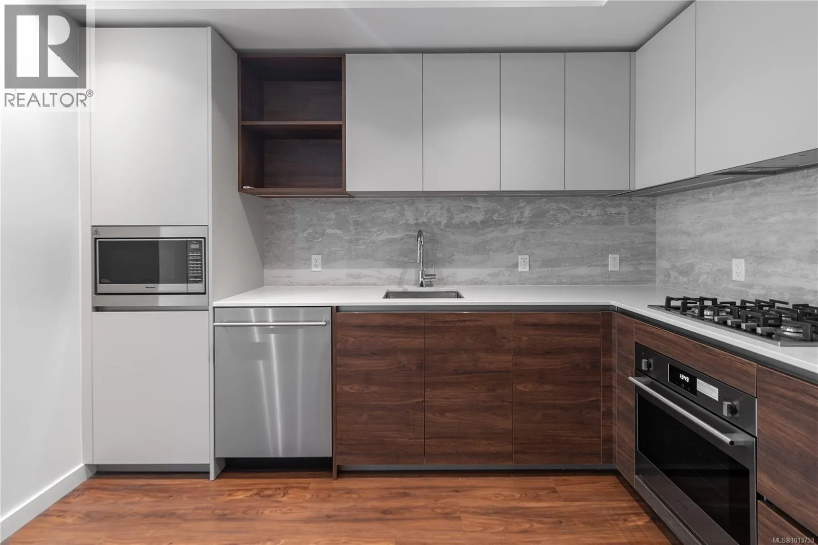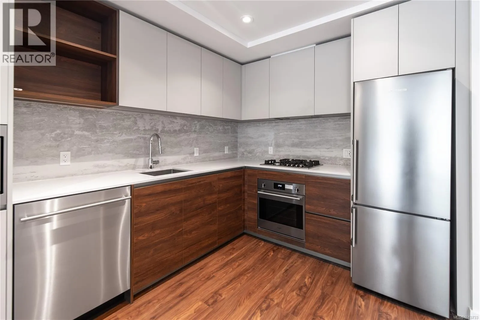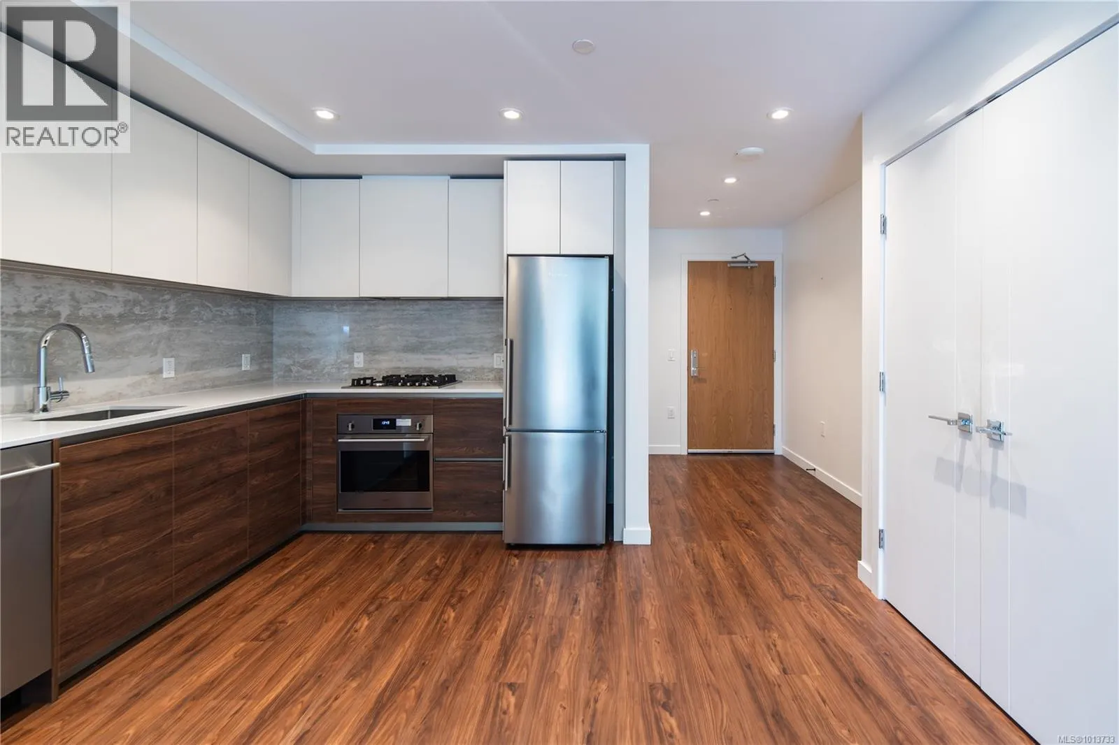 Meet Bosaâs newest Dockside Green condo your modern home! This 2023-built, steel & concrete 1 bed/1 bath ground-floor unit offers ~700 sqft of efficient living plus its own private street entrance. The gourmet kitchen boasts Stosa Italian soft-close cabinetry, quartz counters, designer slab backsplash & under-cabinet lighting. Residents enjoy top-tier amenities: full gym, rooftop lounge w/ firepit, BBQs & dining areas, pet wash, bike tuning room & social lounge. Includes 1 parking, storage locker, visitor parking & secure bike storage. Built for sustainability w/ a Waste Water Treatment Facility & District Energy System. Low strata fees (less than Tower 2!) & NO GST as a resale. Up to 2 Dogs or 2 Cats (or 1 of each) - NO WEIGHT RESTRICTION! Easy to take dogs out your street access front door! Steps to Songhees Walkway, Galloping Goose Trail, cafes & Downtown Victoria. One of the most amenity-rich communities in Victoria & Vancouver Island! (id:27476)