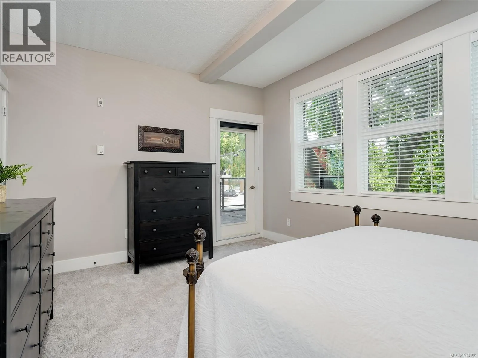 Welcome to Mayfair Walk! This 2 bedroom, 2 bathroom townhouse style home is nestled on a peaceful, tree-lined, no-through street. Featuring a private street-level entry and a modern, open concept layout. On the main floor, youâll find a spacious kitchen with newer 'black stainless steel' appliances, living area, a 2-piece bathroom, and a private entry off the patio. Large, south-facing windows provide for an abundance of natural light throughout the day. Upstairs offers generously-sized bedrooms, in-suite laundry, and a private balcony. The primary bedroom is complete with a roomy walk-through closet leading into a 4-piece bathroom. Pets (2 dogs or cats, no size restriction!) and children are more than welcome here, with a grassy park and playset within the complex. Also included is a secure, covered parking stall close to the unit with access to an electric outlet. Easy walking distance to shops, restaurants, and public transportation. A fantastic opportunity to own a home in a central, convenient location in Victoria! (id:27476)