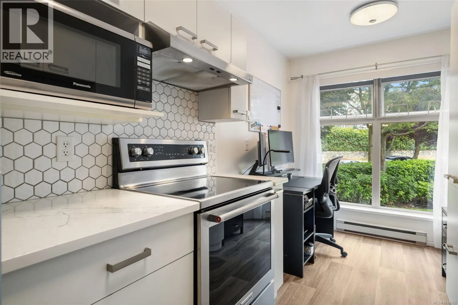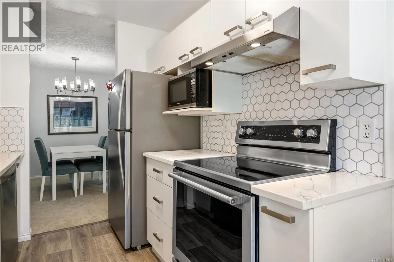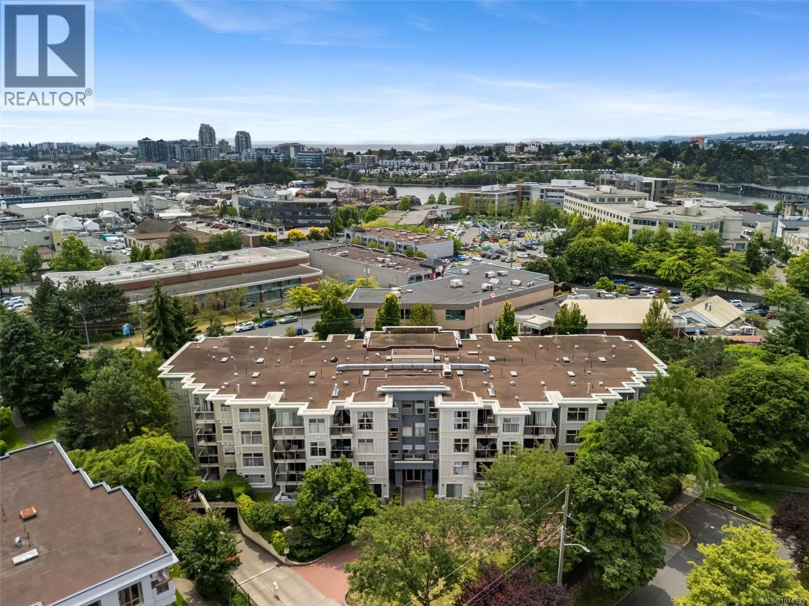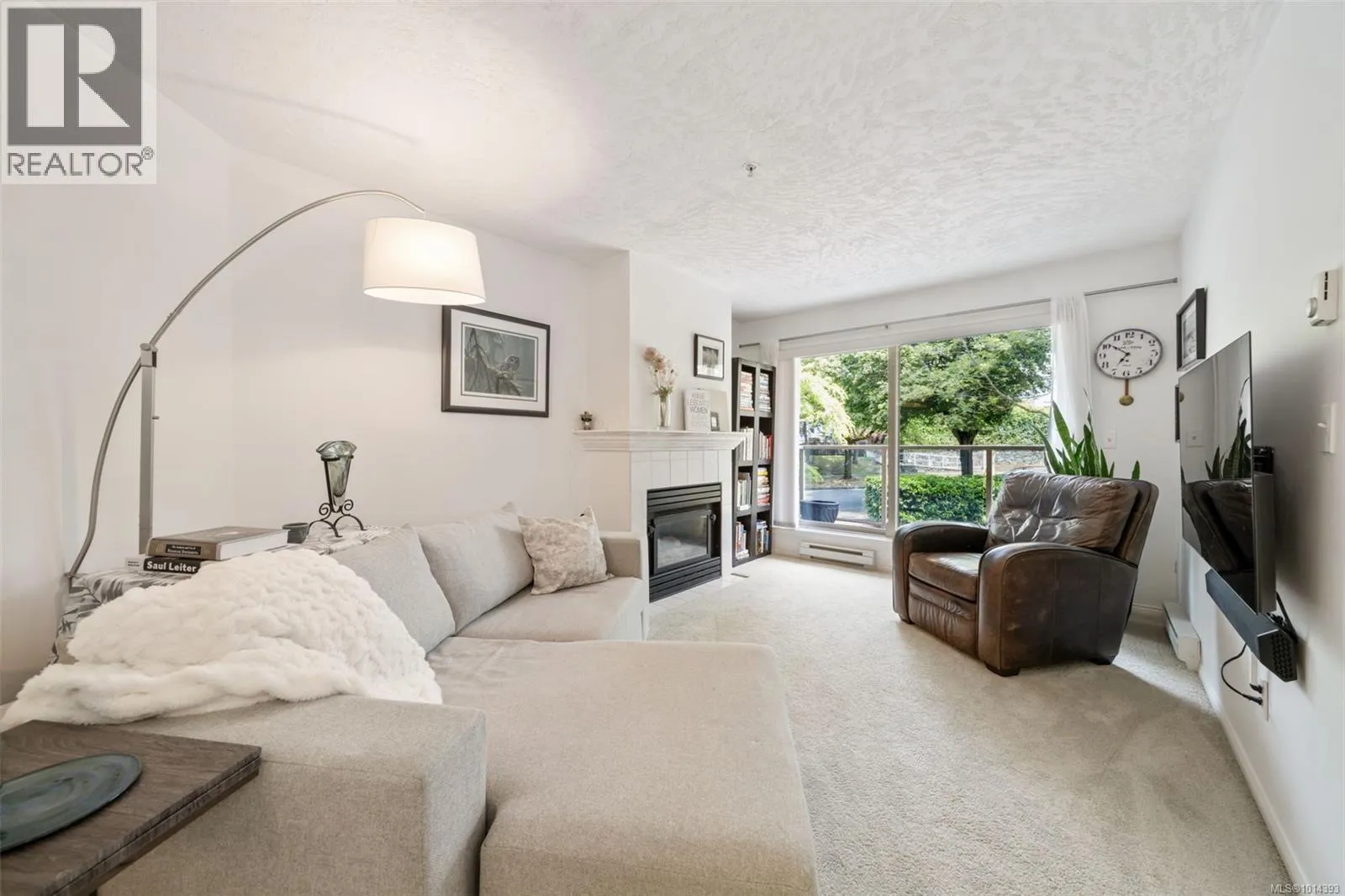 Step into the Victoria market with #203â535 Manchester Rd! This bright and updated 1 bed, 1 bath condo offers over 800 sq ft of well-designed living space with fresh paint, new carpet, and a modern kitchen featuring quartz counters, stainless steel appliances, stylish backsplash, and updated lighting. The spacious bedroom includes a walk-in closet, while the inviting living room with its cozy gas fireplace adds warmth and charm. Relax on your private northwest-facing patio with a peaceful outlook onto greenery on a quiet no-thru street. Secure underground parking, storage locker, and rentable bike storage are included. Steps to the Selkirk Waterfront, Galloping Goose Trail, and downtown. Perfect for first-time buyers or investors. An affordable chance to stop renting, build equity, and start your real estate journey. Donât miss this opportunity to own in a vibrant, central location! (id:27476)