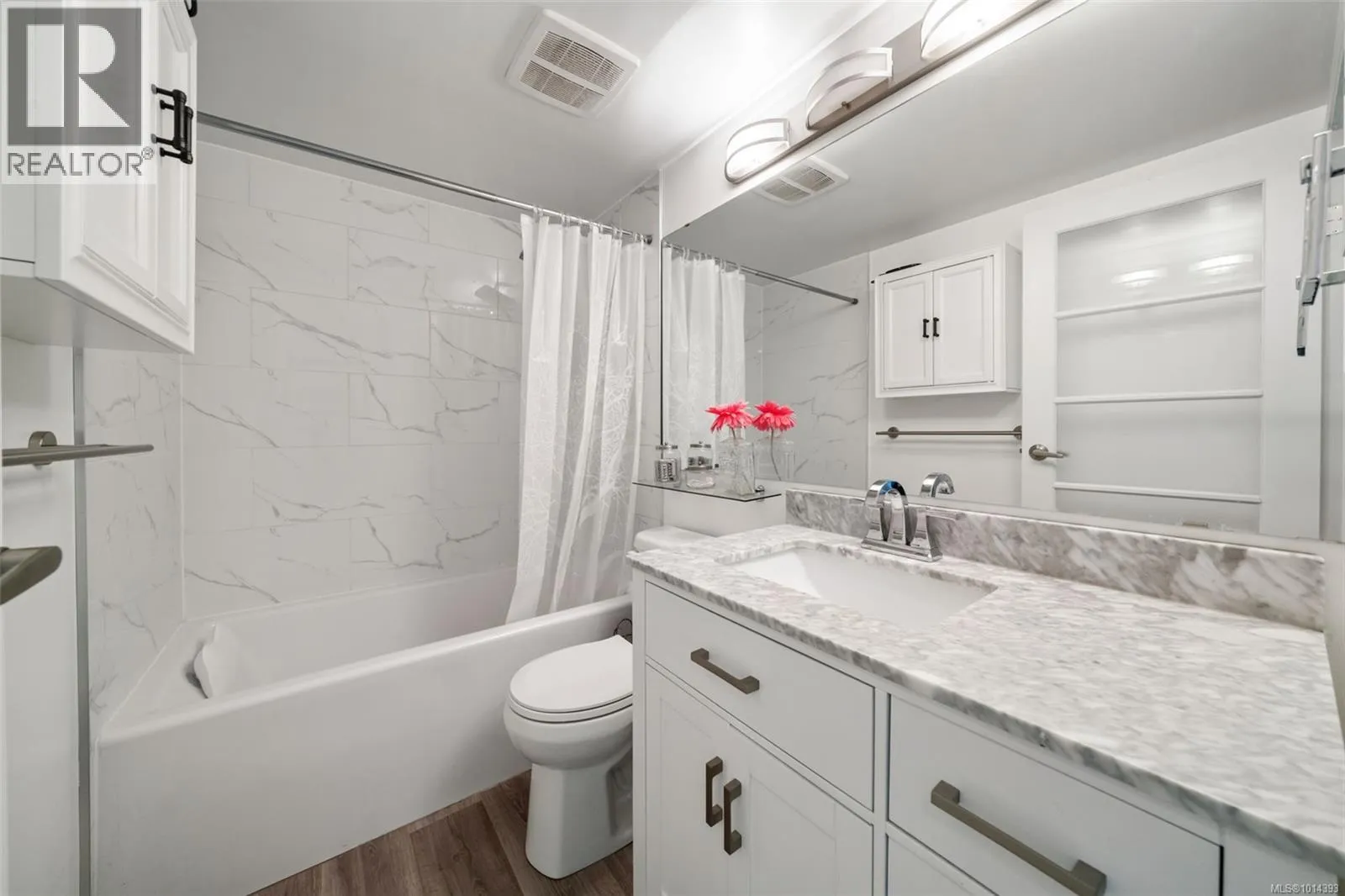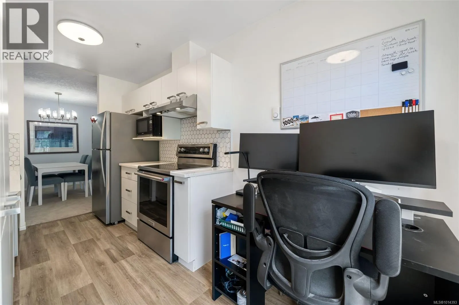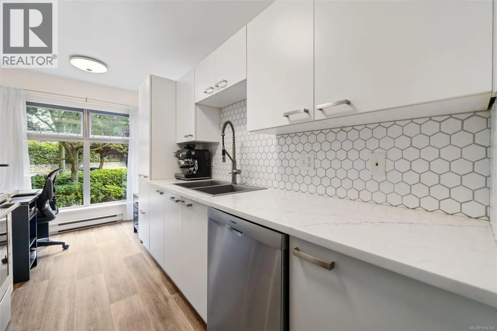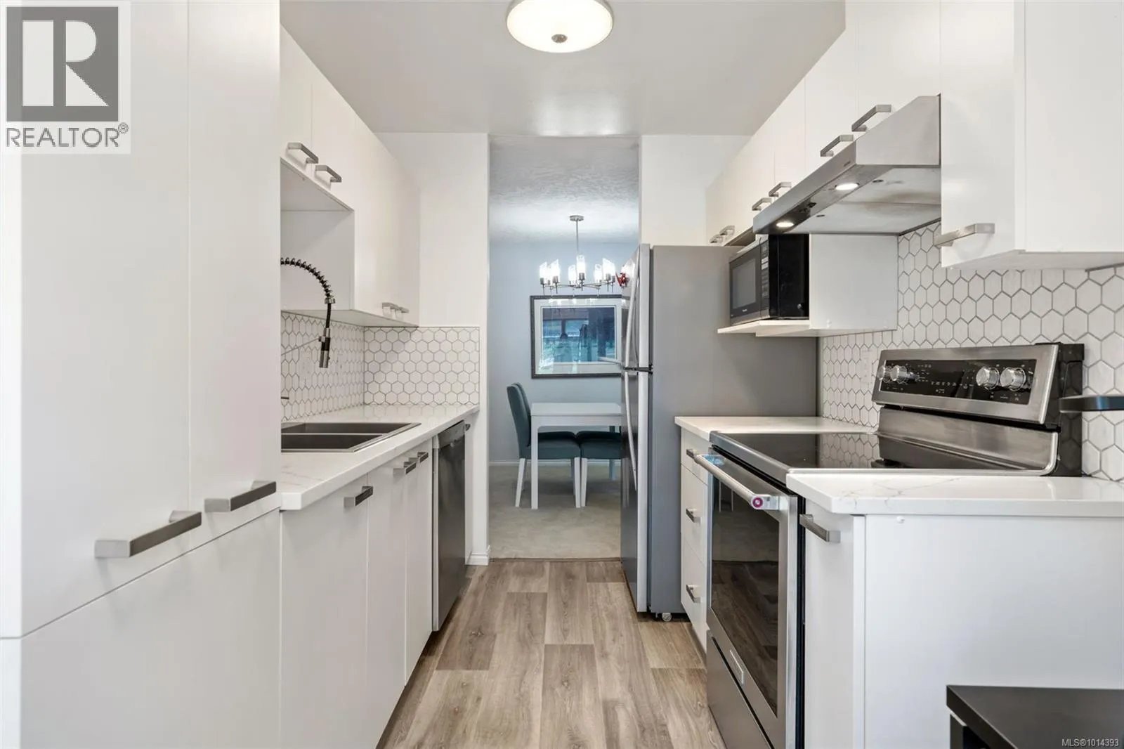 Step into the Victoria market with #203â535 Manchester Rd! This bright and updated 1 bed, 1 bath condo offers over 800 sq ft of well-designed living space with fresh paint, new carpet, and a modern kitchen featuring quartz counters, stainless steel appliances, stylish backsplash, and updated lighting. The spacious bedroom includes a walk-in closet, while the inviting living room with its cozy gas fireplace adds warmth and charm. Relax on your private northwest-facing patio with a peaceful outlook onto greenery on a quiet no-thru street. Secure underground parking, storage locker, and rentable bike storage are included. Steps to the Selkirk Waterfront, Galloping Goose Trail, and downtown. Perfect for first-time buyers or investors. An affordable chance to stop renting, build equity, and start your real estate journey. Donât miss this opportunity to own in a vibrant, central location! (id:27476)