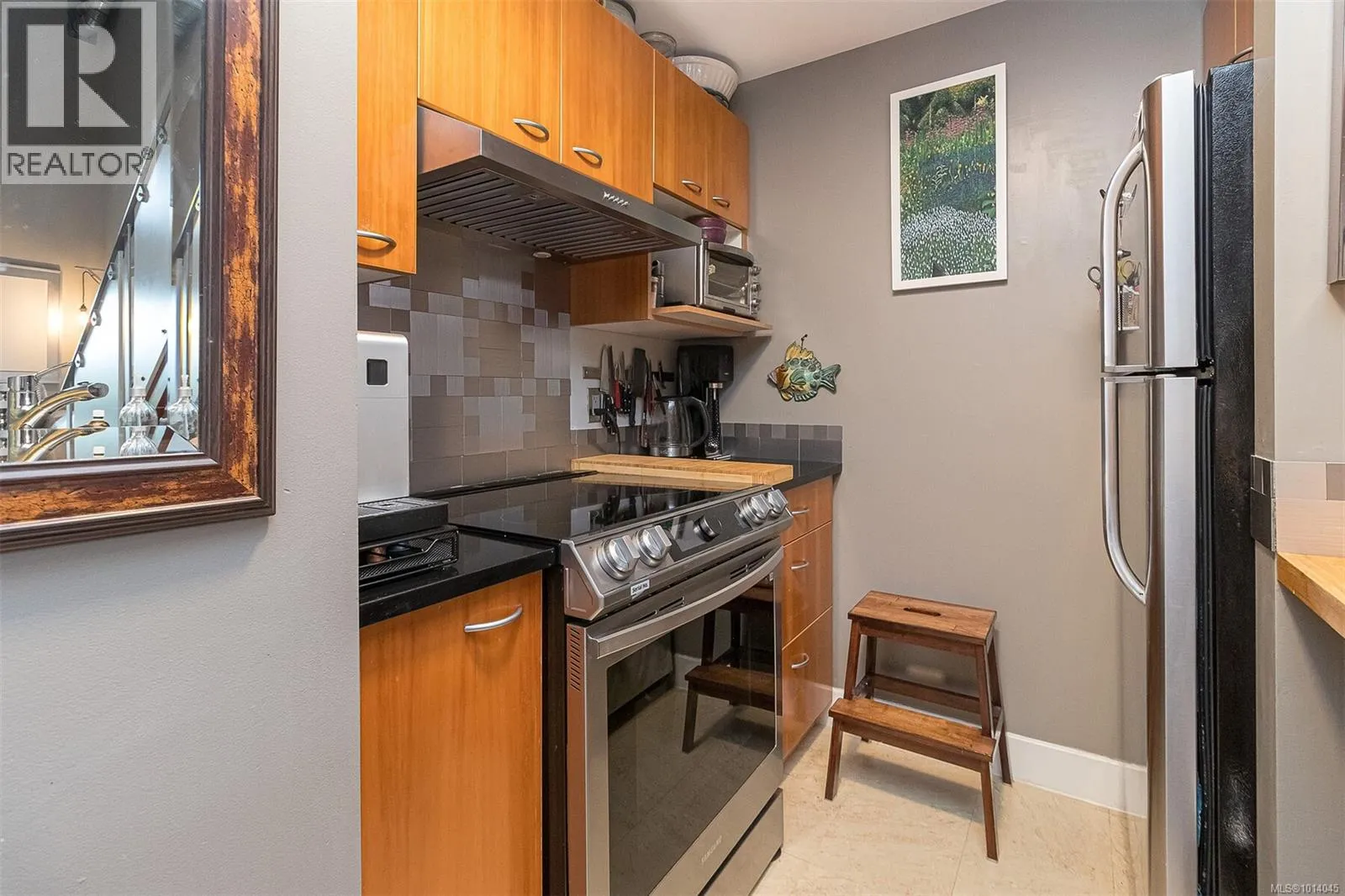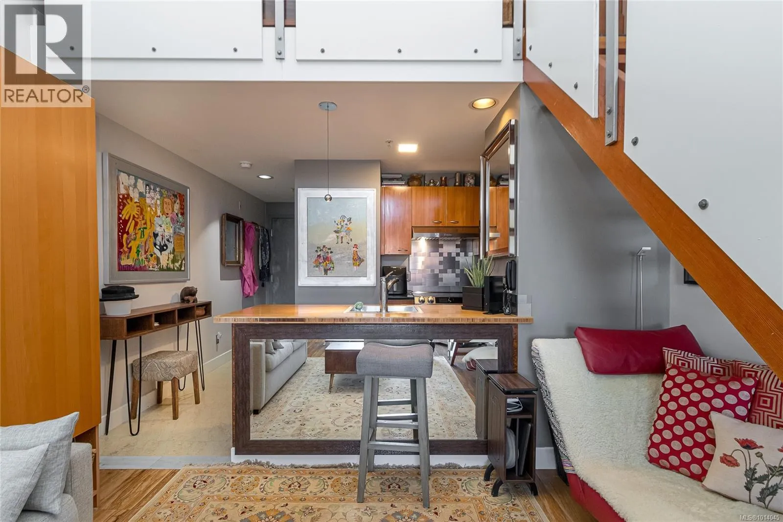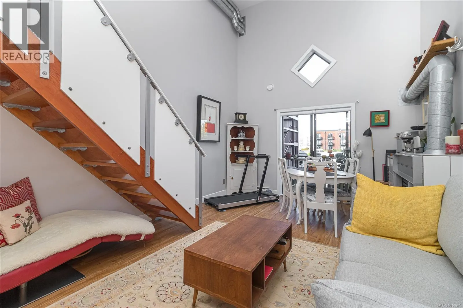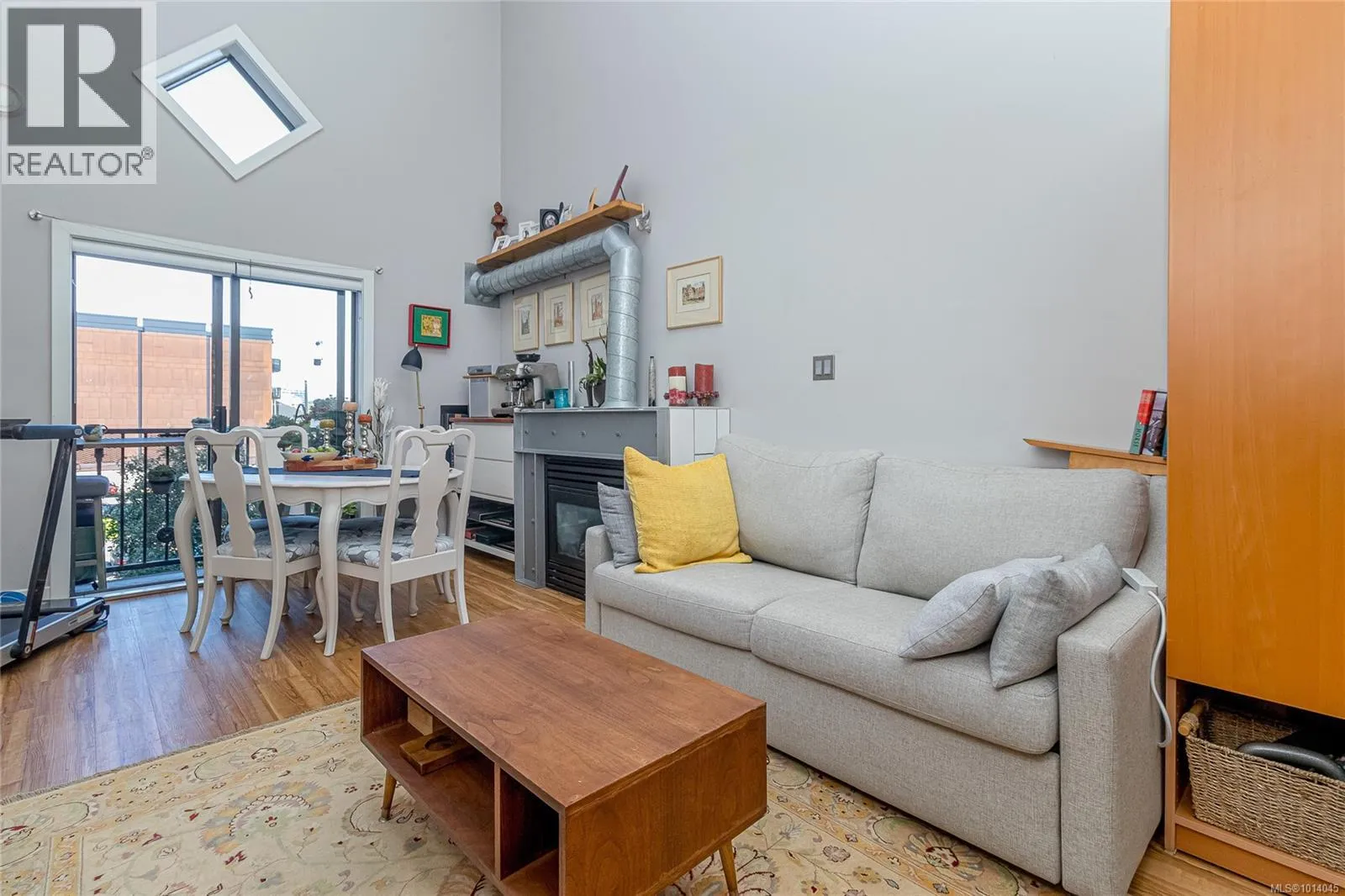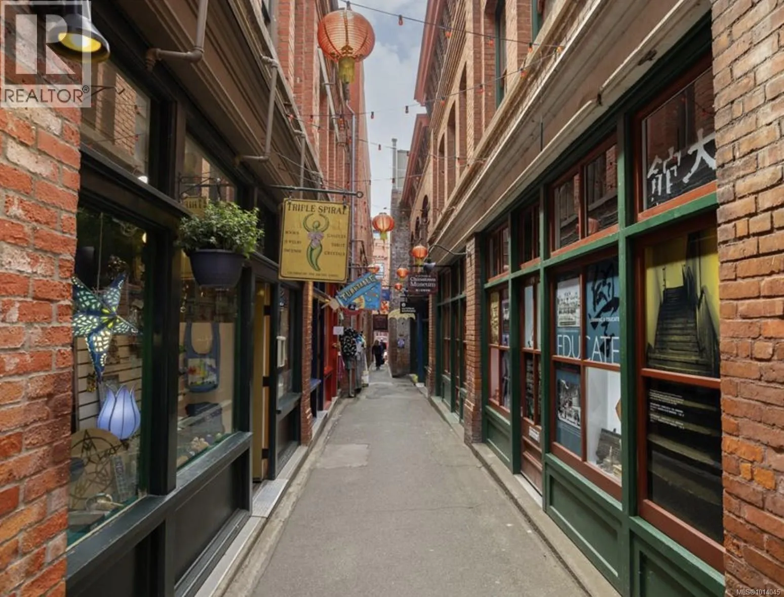 Experience the best of urban living at the sought-after Chatham Studio Lofts! Perfectly located in the heart of Old Town Victoria, this 1-bedroom loft blends historic charm with modern style. Step outside your door and youâre surrounded by the cityâs iconic brick buildings, hidden alleyways, boutique shops, trendy cafés, and theatresâall within minutes. Inside, the loft impresses with soaring 16-foot ceilings and an airy open-concept layout thatâs both stylish and functional. The cozy gas fireplace anchors the living space, while oversized windows bring in plenty of natural light. The modern kitchen features granite and bamboo countertops along with a convenient eating bar for casual dining. Just off the main living area, the west-facing patio is ideal for soaking up the afternoon sun or enjoying a quiet evening outdoors. This home comes with thoughtful extras including in-suite laundry, a storage locker, and access to the buildingâs rooftop patio with 360° city viewsâa perfect place to unwind or entertain friends. The building is pet-friendly too, so your furry companion is welcome! Chatham Studio Lofts offers a rare chance to live in one of Victoriaâs most walkable neighbourhoods. With restaurants, boutiques, Canadaâs oldest Chinatown, and the Inner Harbour all nearby, youâll be immersed in the full downtown experience. This is urban living at its finest! (id:27476)