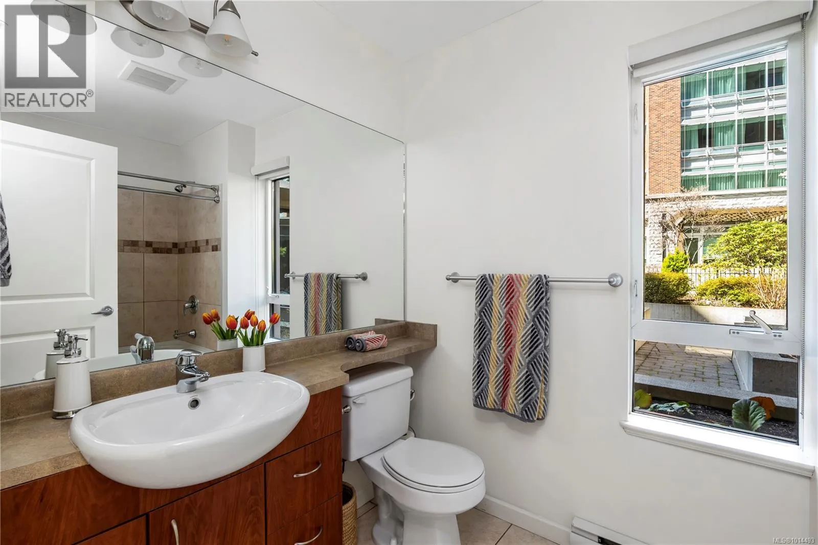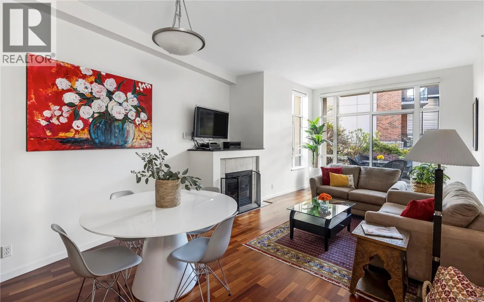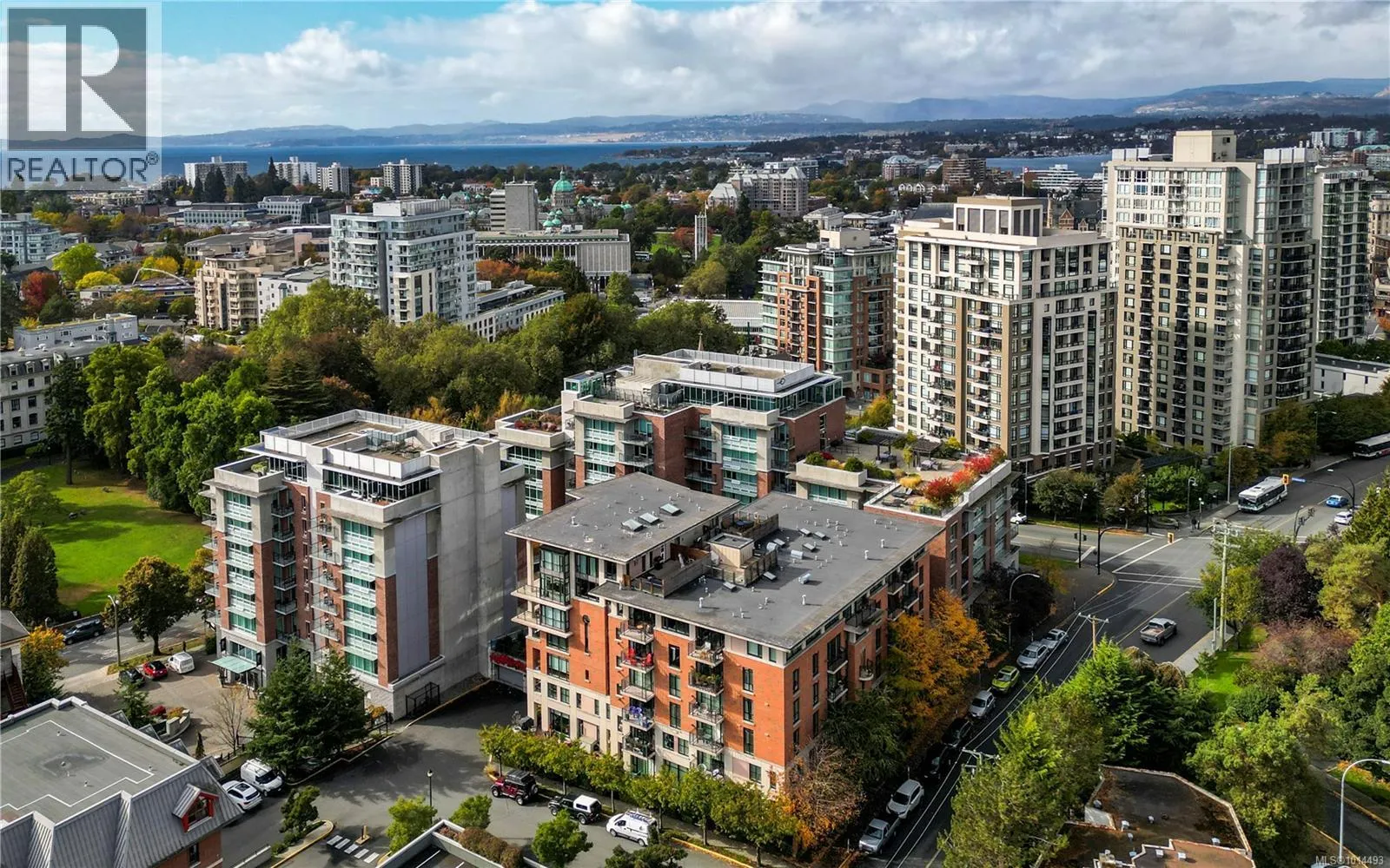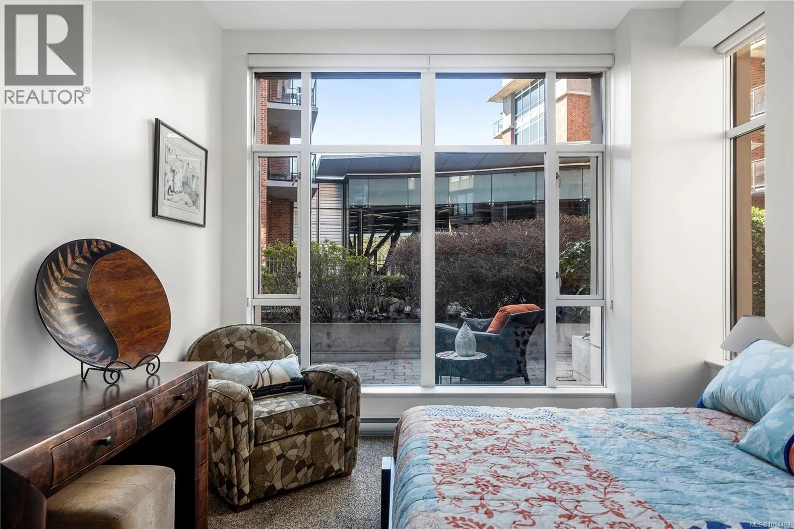 Discover an extraordinary blend of space, light, and tranquillity in Victoriaâs sought-after Humboldt Valley, bordering Fairfield and just steps to Beacon Hill Park, St. Annâs Academy, Cook St Village, and the Inner Harbour. This ground-level residence feels more like a private townhome, with soaring 9â9â ceilings, an open layout, and a seamless flow to the outdoors. The true centrepiece is an impressive 23'7'' x 8'6â south-facing patio that extends into beautifully landscaped courtyard gardens. Sun-drenched and sheltered, this outdoor retreat becomes an extension of your living space - perfect for morning coffee, entertaining, or unwinding in peace. Surrounded by greenery, it offers a rare garden connection that few condominiums can match, blending the ease of condo living with the serenity of a private yard. Inside, the two-bedroom, two-bathroom layout is bright and thoughtfully designed. Floor-to-ceiling windows in the primary suite bring the gardens indoors, while the ensuite bath provides a private retreat. A modern kitchen anchors the living space, complemented by an open den and generous storage. This home offers true one-level living with zero steps - from the front door of the building to your patio, making it ideal for those seeking to downsize without compromise, combining space, comfort, and accessibility. Located in City Place, an award-winning steel and concrete building. This residence provides both elegance and peace of mind with secure underground parking (including EV charger), bike storage, and a separate locker. The building welcomes pets, including up to two dogs, and rentals are permitted, offering flexibility and long-term value. A rare offering that balances the calm of a garden sanctuary with the quality and security of concrete construction. (id:27476)