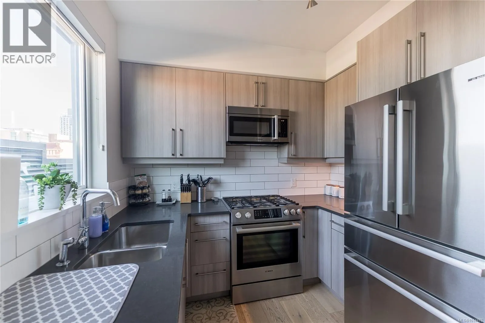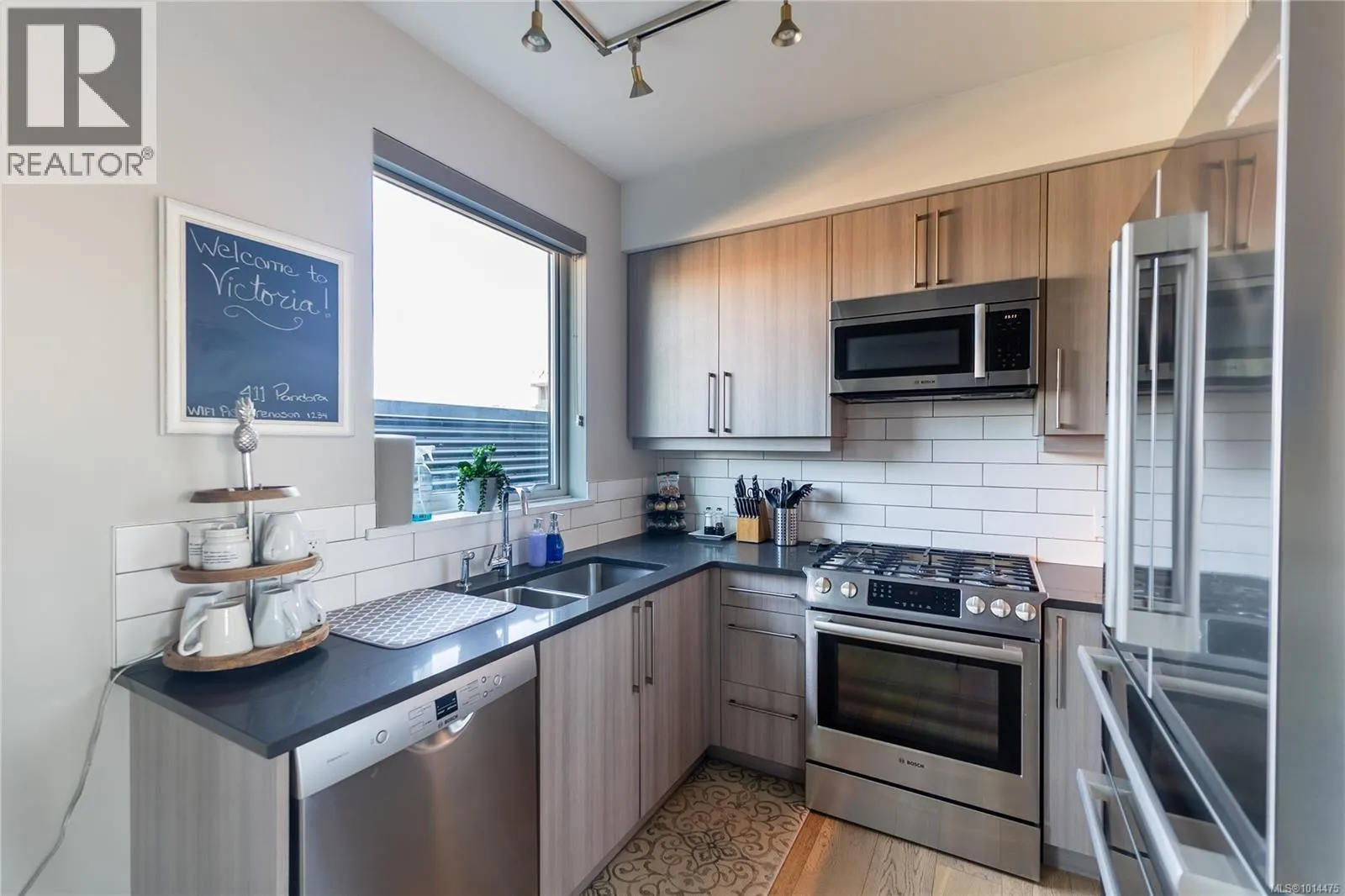 Welcome to 411-595 Pandora The Abacus in Victoriaâs historic Old Town, superb offering with desirable private terrace. Look no further, this Condo checks all your boxes; like-new, sophisticated and prime location in the Heart of Downtown Victoria. Modern timeless design, 9âceilings, engineered floors, granite counters, Bosch appliances, new fridge, gas cook top and so much more. Fabulous large bedroom features access to the terrace via a sliding door and double closets. This residence has in-suite laundry, additional storage, bike room, lounge, gym and secured parking. Location location- this is Victoriaâs brewery district-also neighboring Market Square, Fan-Tan Alley, China Town, Lower Johnson, Inner Harbor for easy flights, Legislature, Victoriaâs restaurants, night-life, too many details to list. This is a turn-key condo and can be rented. Pets allowed too. So much growth and change happening around here, amazing investment and lifestyle opportunity. (id:27476)