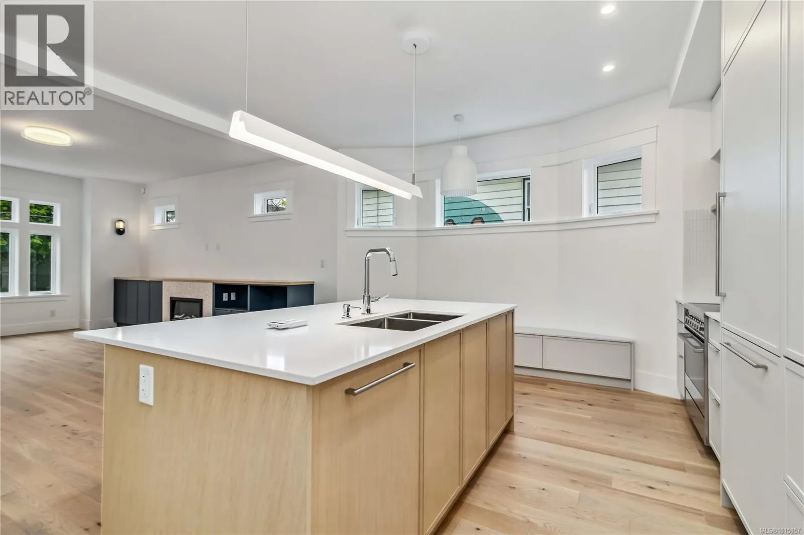 Welcome to this newly completed two-bedroom character conversion in the heart of vibrant Fernwood. Thoughtfully designed by Pamela Billinghurst Interior Design, this boutique residence offers a rare blend of historic charm and high-end modern finishes. Set within a beautifully restored heritage building, each unit features a unique layout with carefully curated details that reflect the homeâs character while delivering refined, contemporary living. Inside, the bright, open-concept layout is filled with natural light and premium features. The kitchen is a true showpiece, with sleek quartz countertops, custom cabinetry, stainless steel appliances, and elegant tileworkâperfect for cooking and entertaining alike. The living and dining areas are welcoming and stylish, featuring wide-plank flooring, designer lighting, and tasteful accents throughout. Two bedrooms provide peaceful retreats, each with generous closet space and quality finishes. The home includes two beautifully appointed bathrooms, both echoing the same attention to detail found throughout the home. Located just steps from Fernwood Square, you'll enjoy cafés, parks, boutique shops, and the iconic Belfry Theatre right outside your door. This is your chance to live in one of Victoriaâs most beloved neighbourhoods, rich in community spirit and cultural energy. Donât miss out on this rare opportunity to own a thoughtfully designed, move-in-ready home in a truly special location. (id:27476)