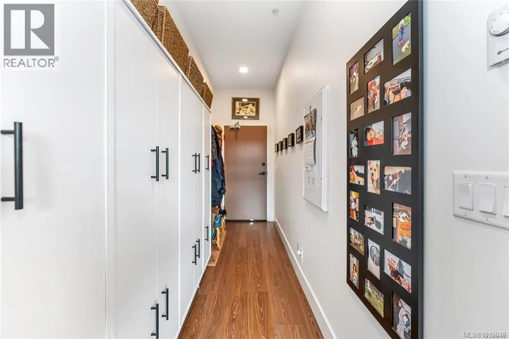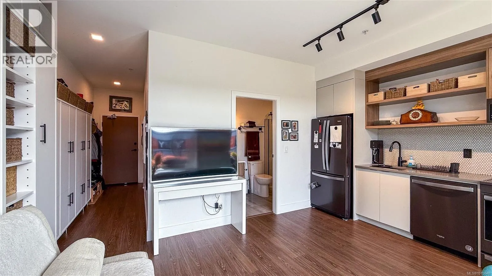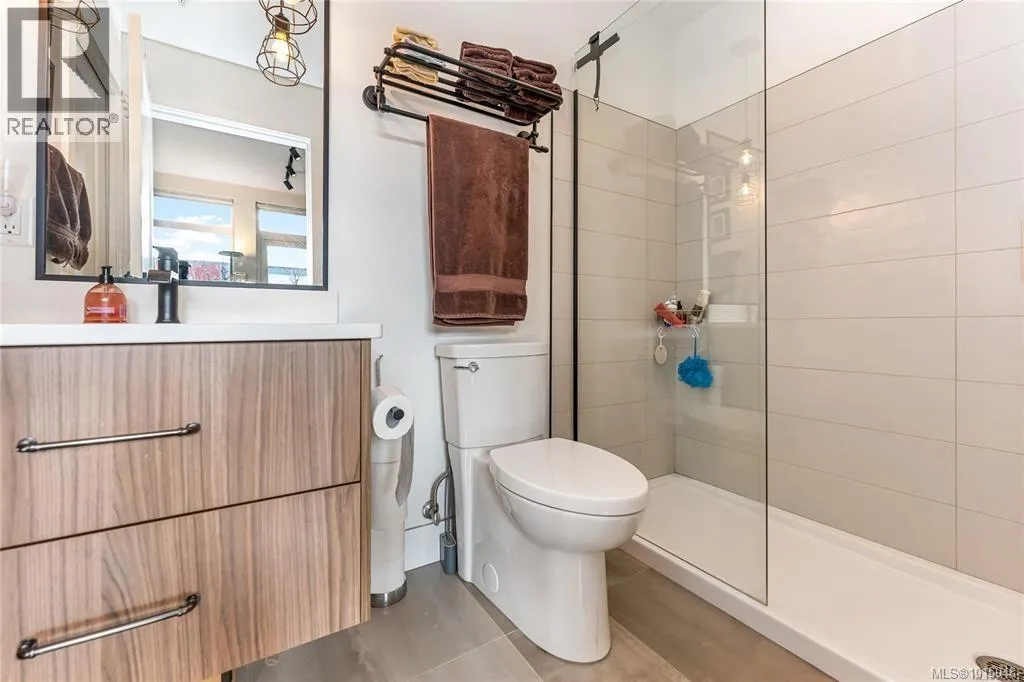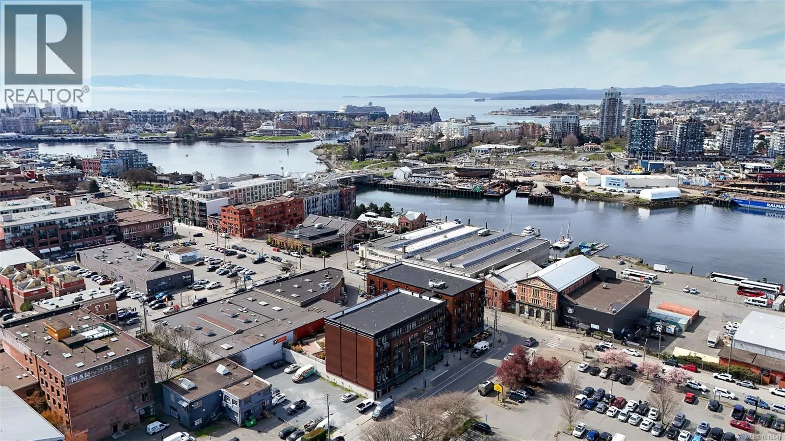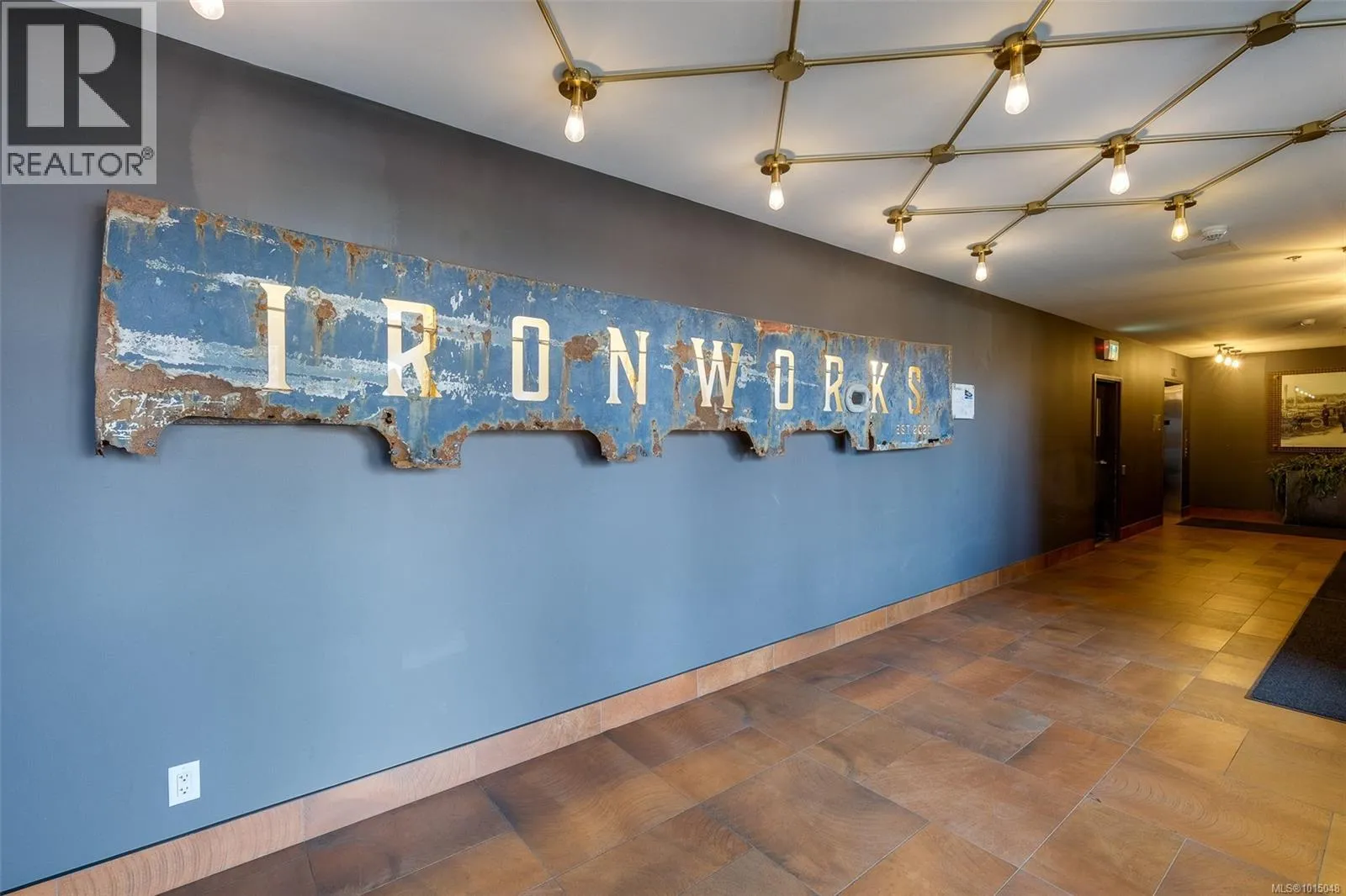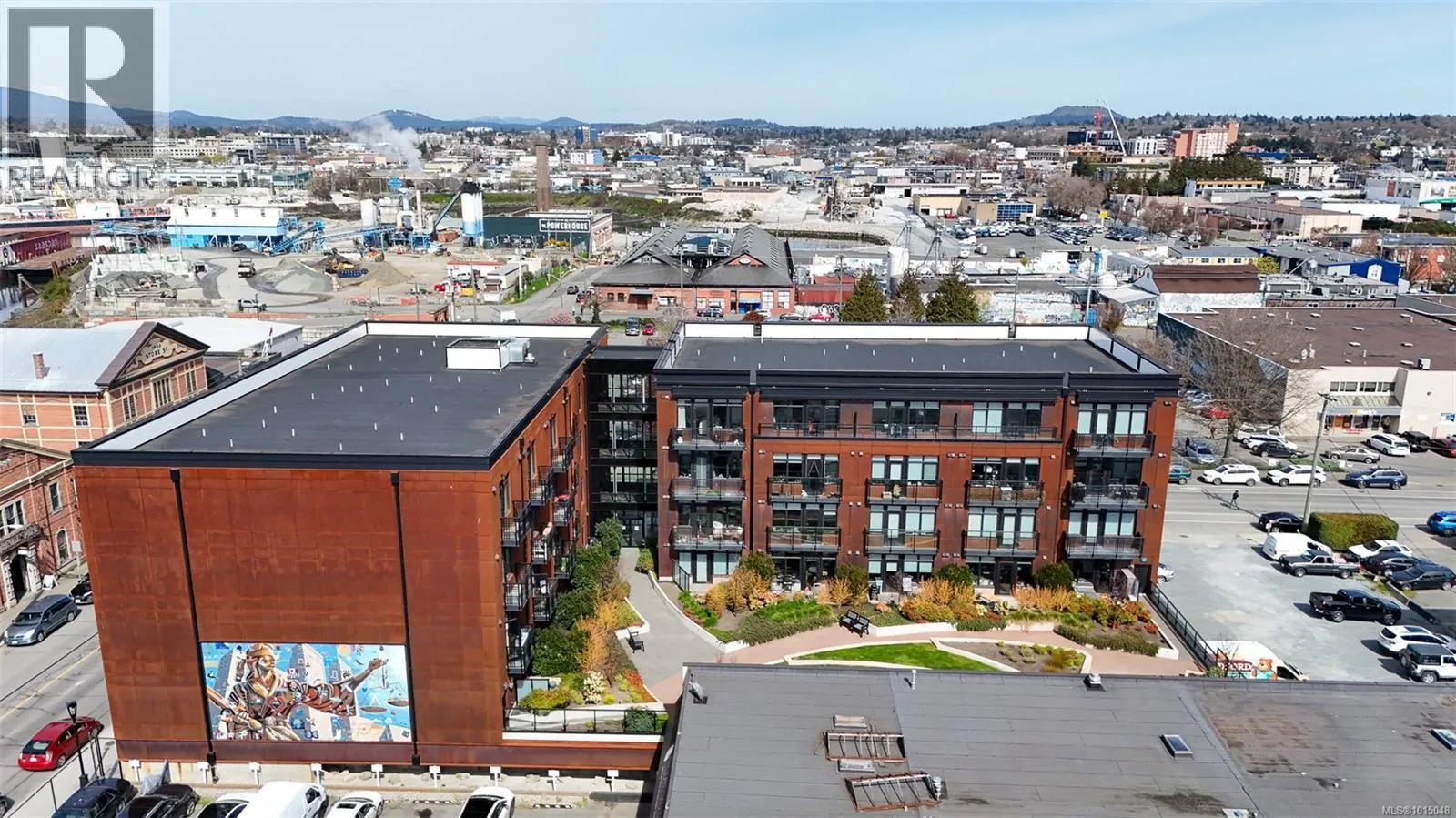 Welcome to this modern and private, end-unit suite boasting a bright and sunny elevated courtyard patio that is complete with secure underground parking at the Ironworks, in the heart of BCâs historic Capital. The combined living and dining space features a modern kitchen, incorporating premium appliances, quartz countertops, unique backsplash, dual-tone cabinetry and open shelving that blends well with the BBQ-friendly, south-facing outdoor space - perfect for small pets and faces the quiet courtyard outlaid with luscious grass and greenery to enjoy serene afternoons nestled away from the daily downtown activity. This condo has in-unit laundry, a beautiful 3 piece bathroom with contemporary matte black plumbing fixtures & a rain shower head all designed by LeFevre and Co., a local leader in Victoria Development. Steps from the city's best restaurants, cafes, shops, markets, culture venues, and nightlife making it easier to choose the lifestyle that you prefer. (id:27476)