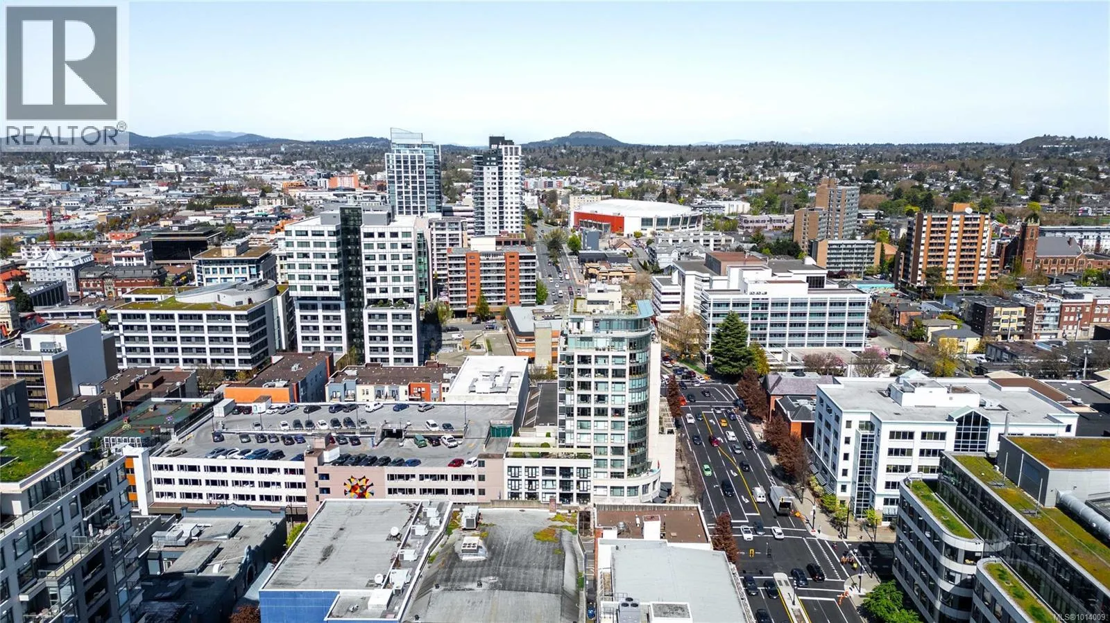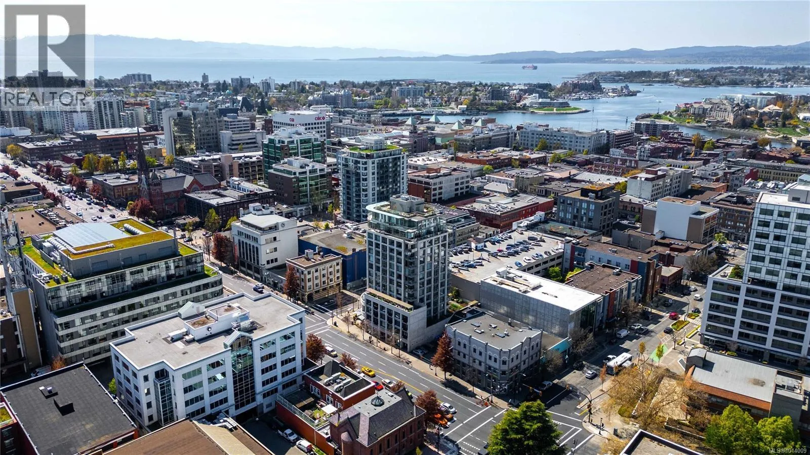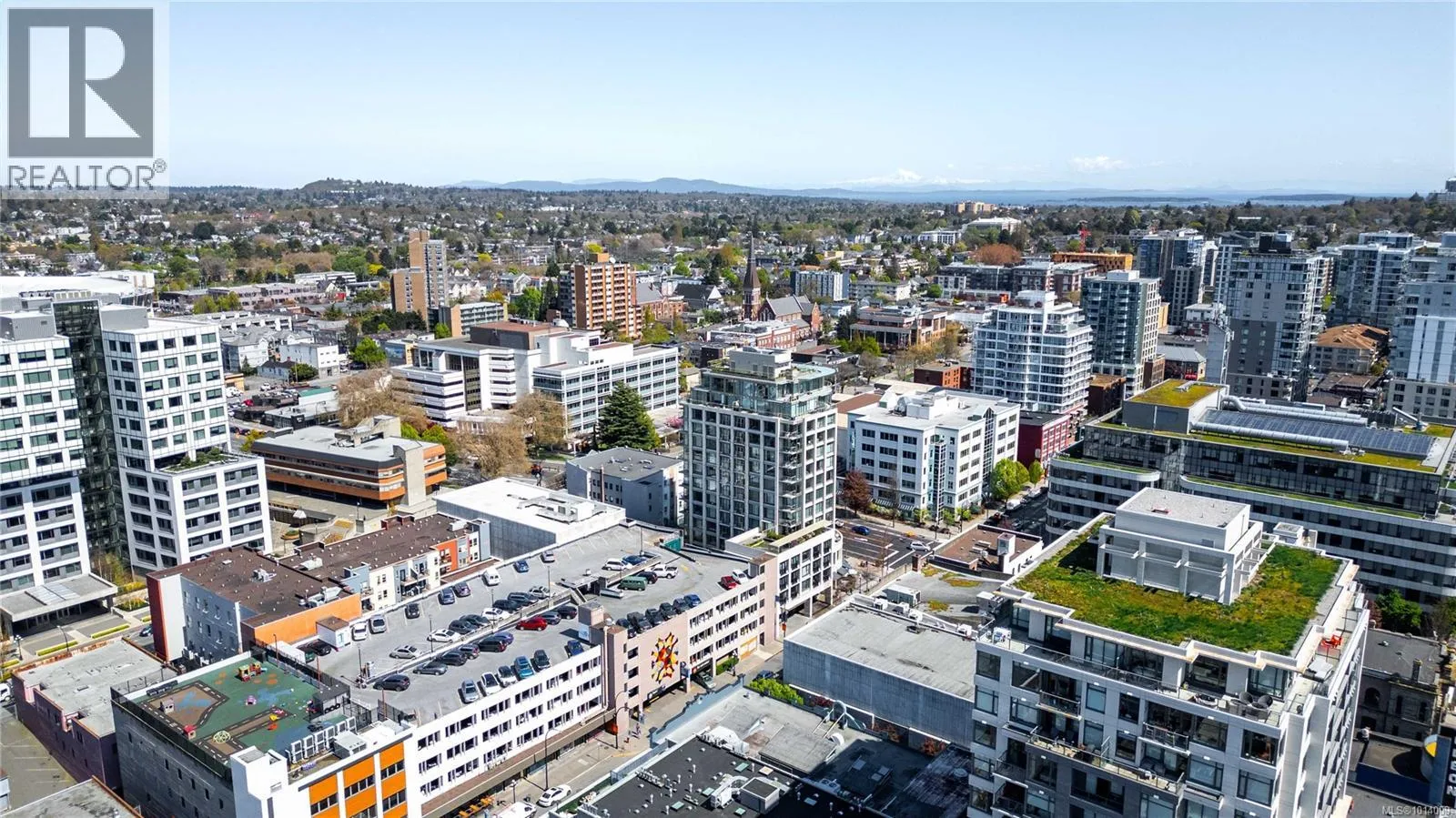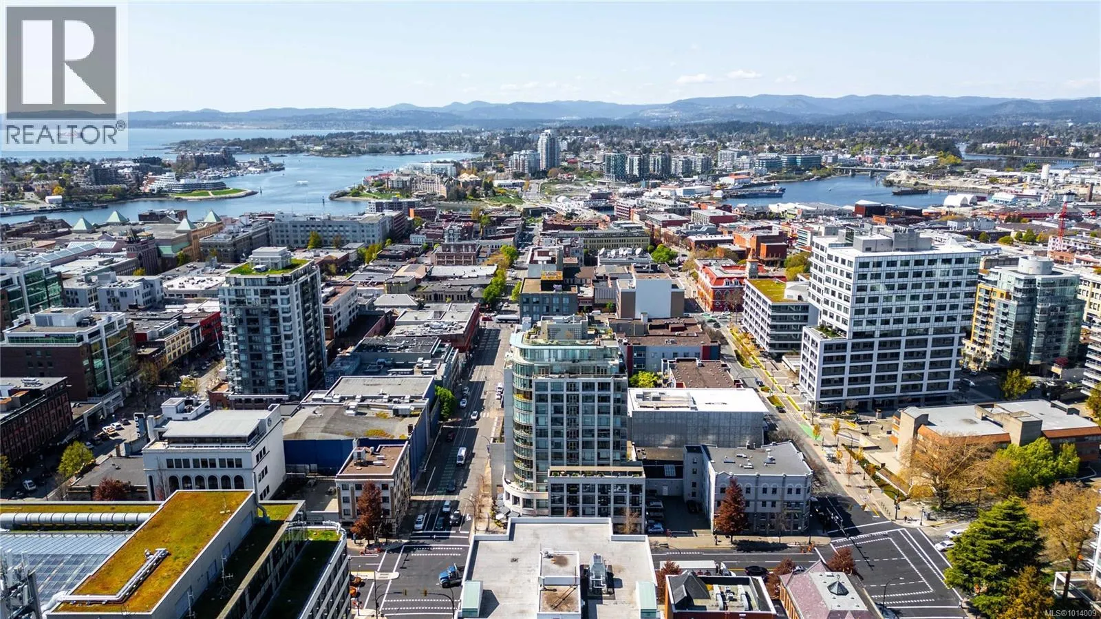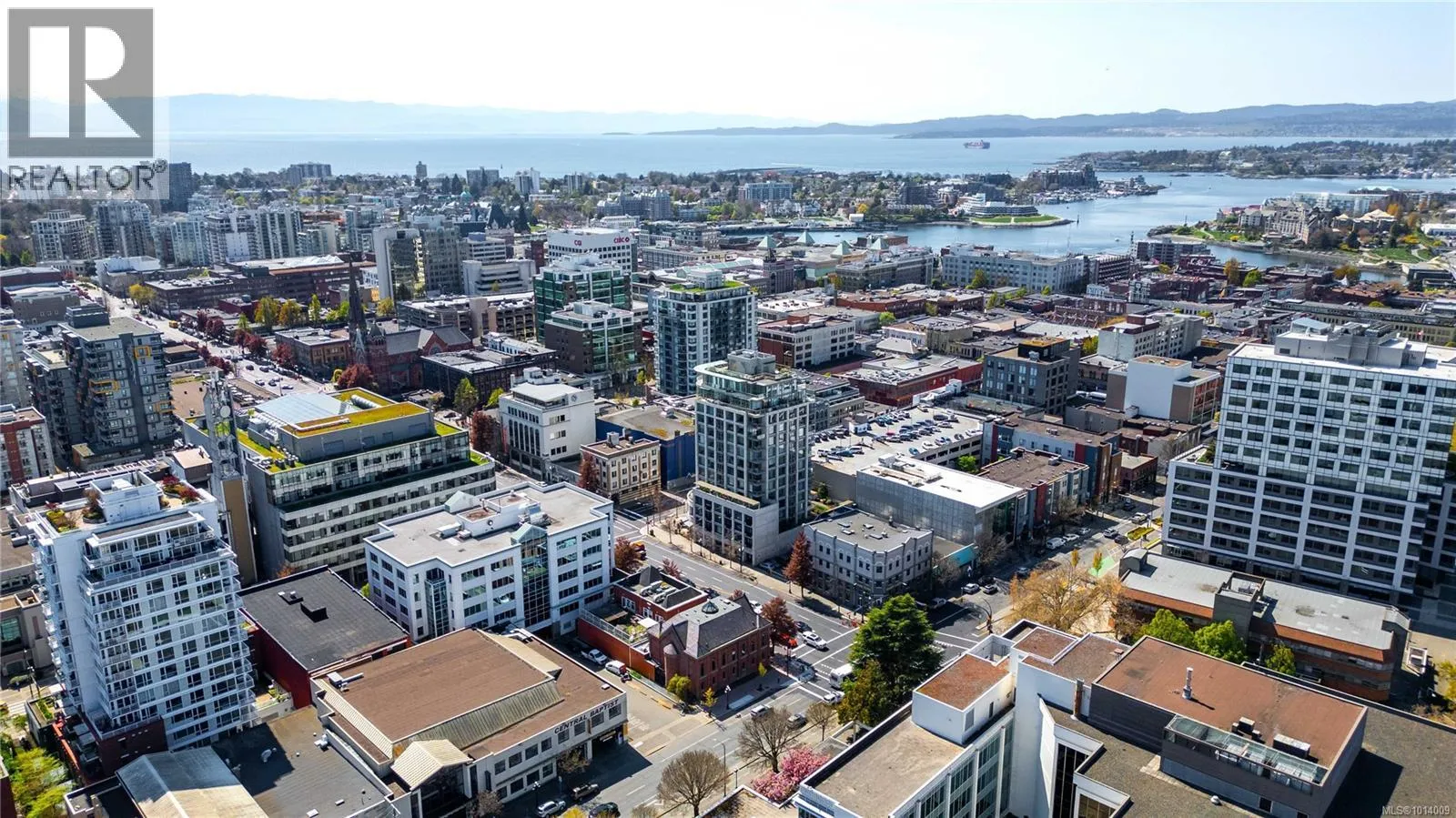 Welcome to a bright 2-bed, 1-bath condo in The Juliet, a sought-after steel and concrete building in the heart of Victoria. The floor-to-ceiling windows offer sweeping views of the city, which fill the space with natural light. The modern kitchen features ss appliances, quartz counters, a bi-level island with breakfast bar, and sleek bamboo flooring throughout. The primary bedroom includes its own access to the 4-piece bathroom. Step out onto your covered balcony, perfect for enjoying your morning coffee. This unit also features in-suite laundry, 1 secure parking stall, & bike storage. This building includes an expansive rooftop terrace, complete with a zen garden and bbq area, that wraps around the entire building showcasing 360° views of Victoria. Located steps from cafes, restaurants, shops, and everything downtown Victoria has to offer. Including an onsite caretaker and pet-friendly policies, this condo blends modern comfort with an unbeatable location. (id:27476)