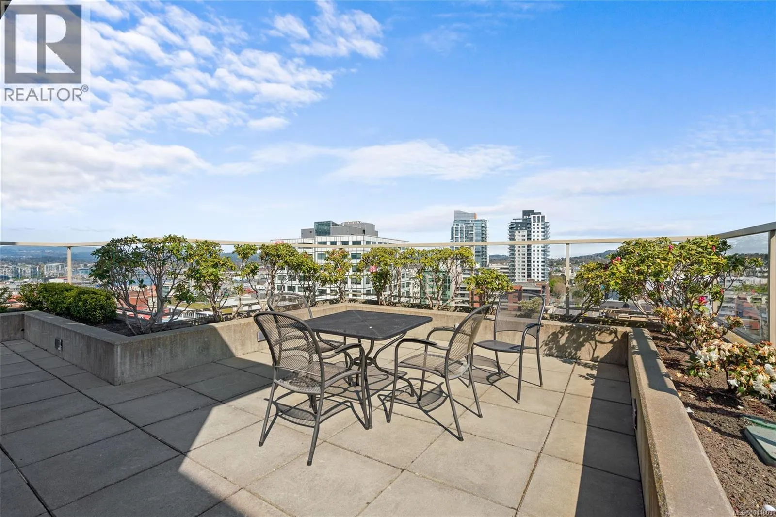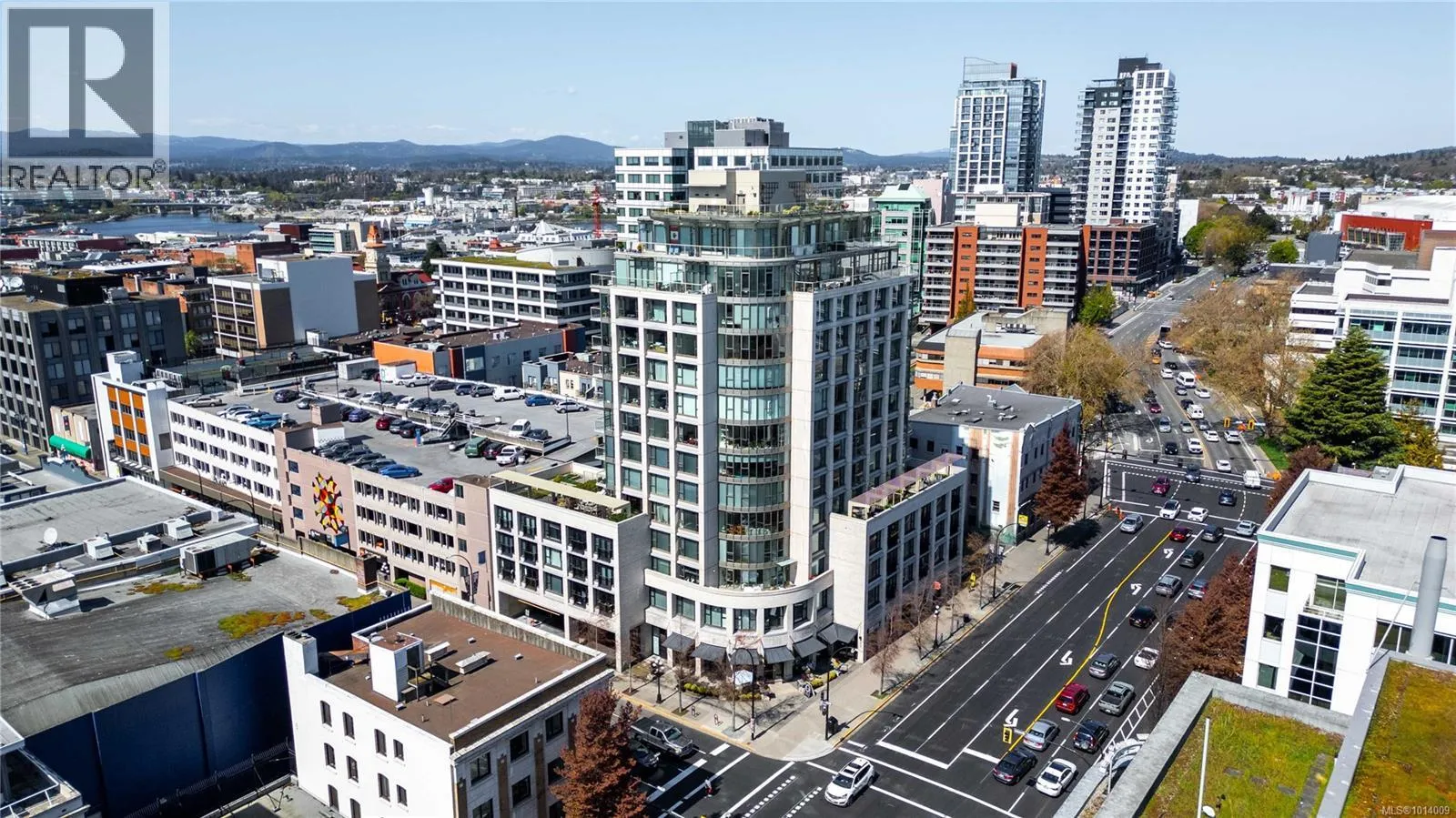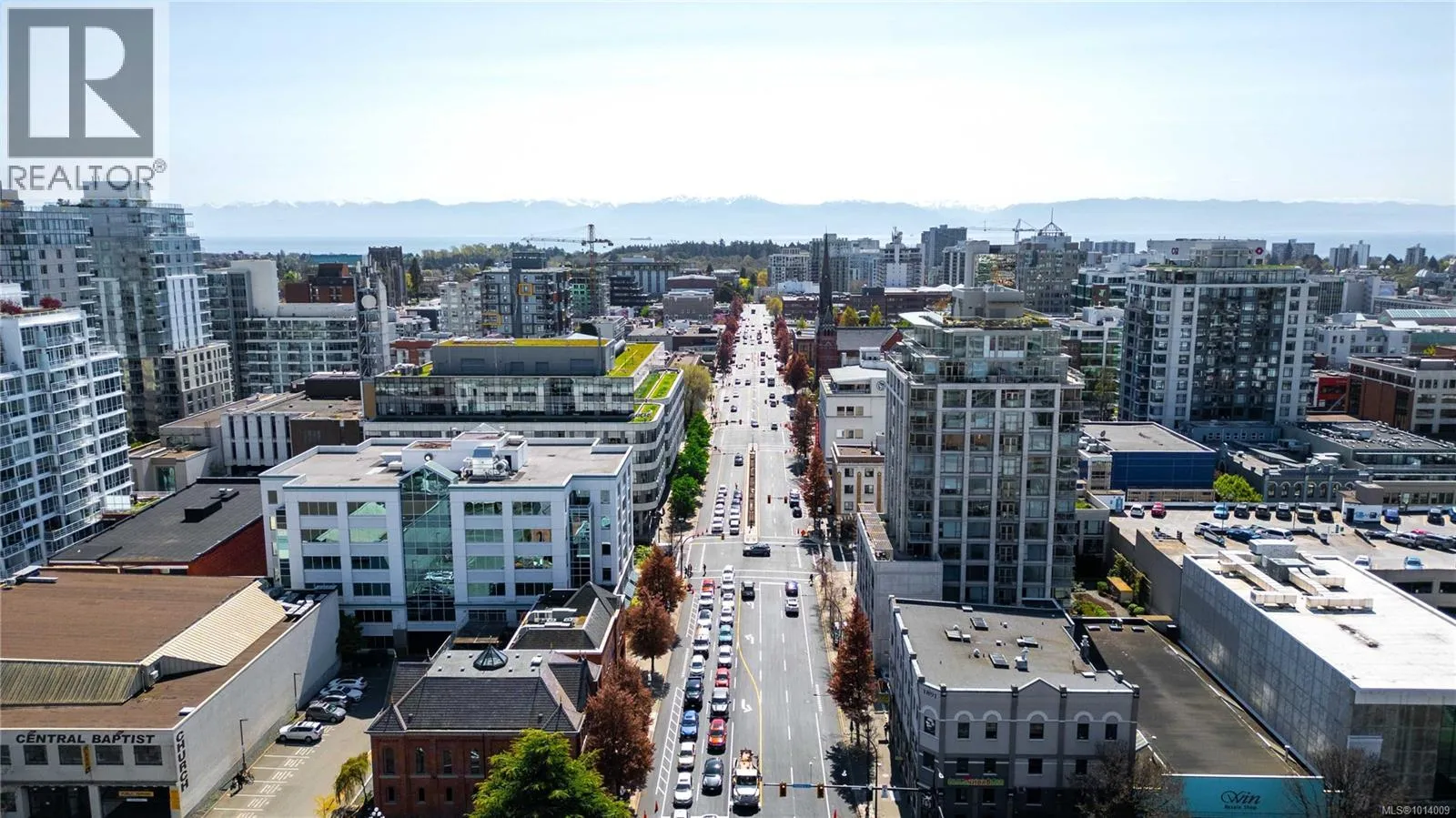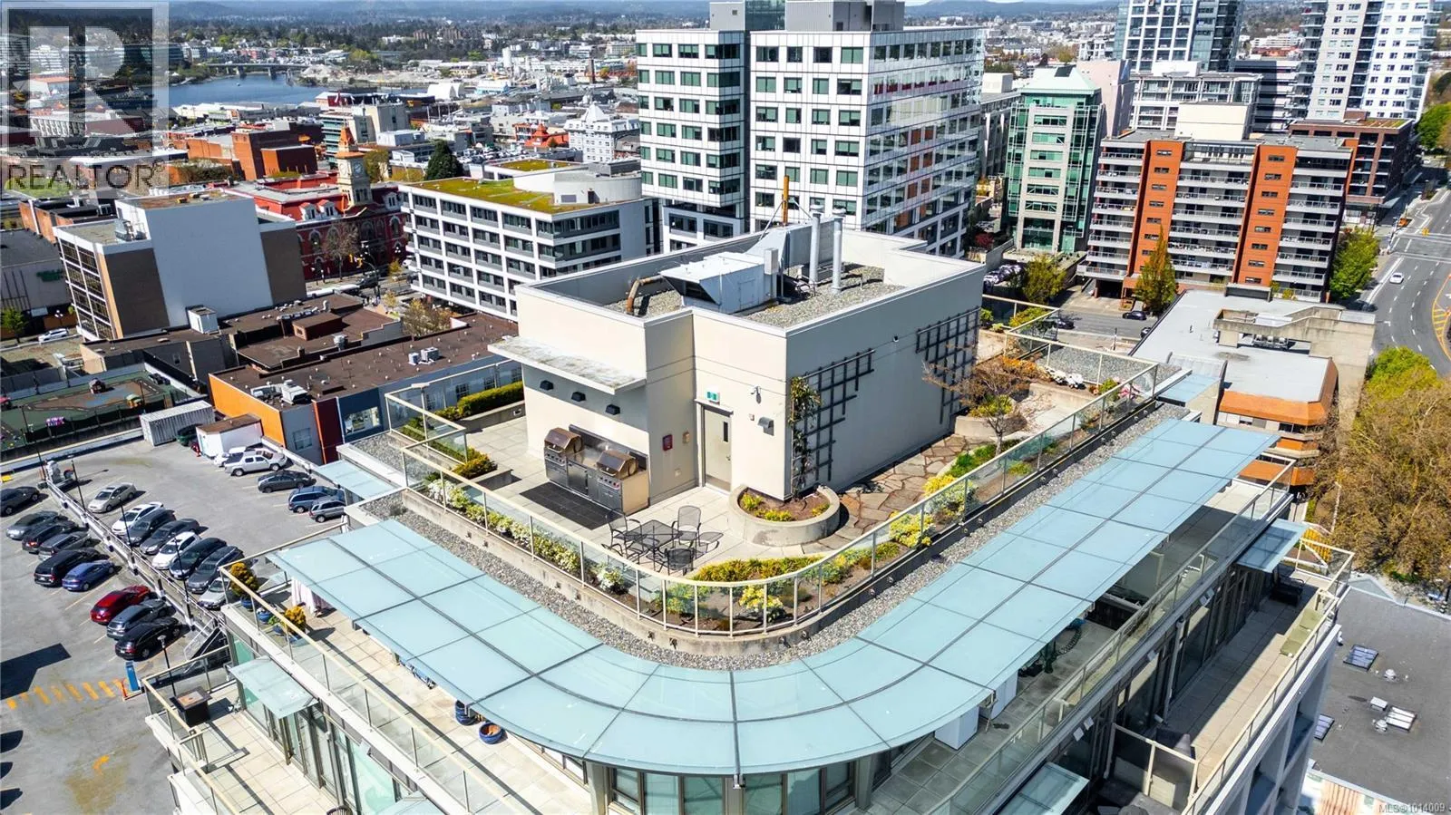 Welcome to a bright 2-bed, 1-bath condo in The Juliet, a sought-after steel and concrete building in the heart of Victoria. The floor-to-ceiling windows offer sweeping views of the city, which fill the space with natural light. The modern kitchen features ss appliances, quartz counters, a bi-level island with breakfast bar, and sleek bamboo flooring throughout. The primary bedroom includes its own access to the 4-piece bathroom. Step out onto your covered balcony, perfect for enjoying your morning coffee. This unit also features in-suite laundry, 1 secure parking stall, & bike storage. This building includes an expansive rooftop terrace, complete with a zen garden and bbq area, that wraps around the entire building showcasing 360° views of Victoria. Located steps from cafes, restaurants, shops, and everything downtown Victoria has to offer. Including an onsite caretaker and pet-friendly policies, this condo blends modern comfort with an unbeatable location. (id:27476)