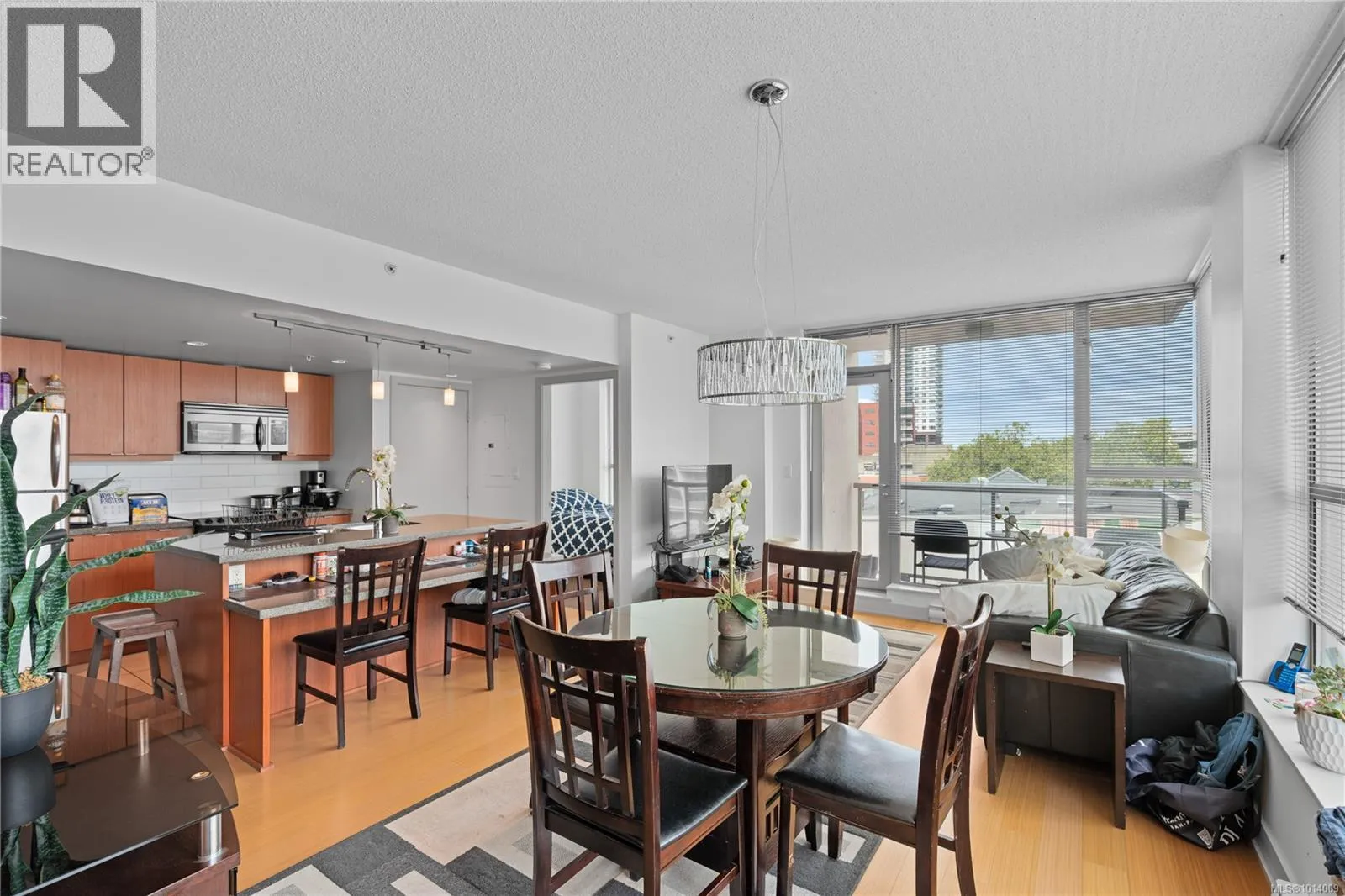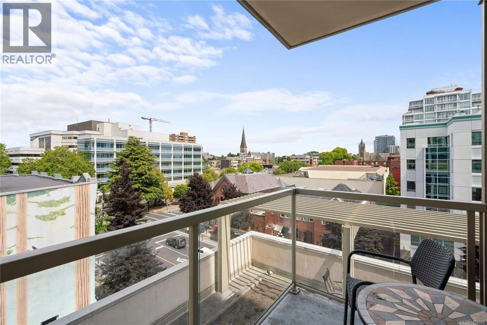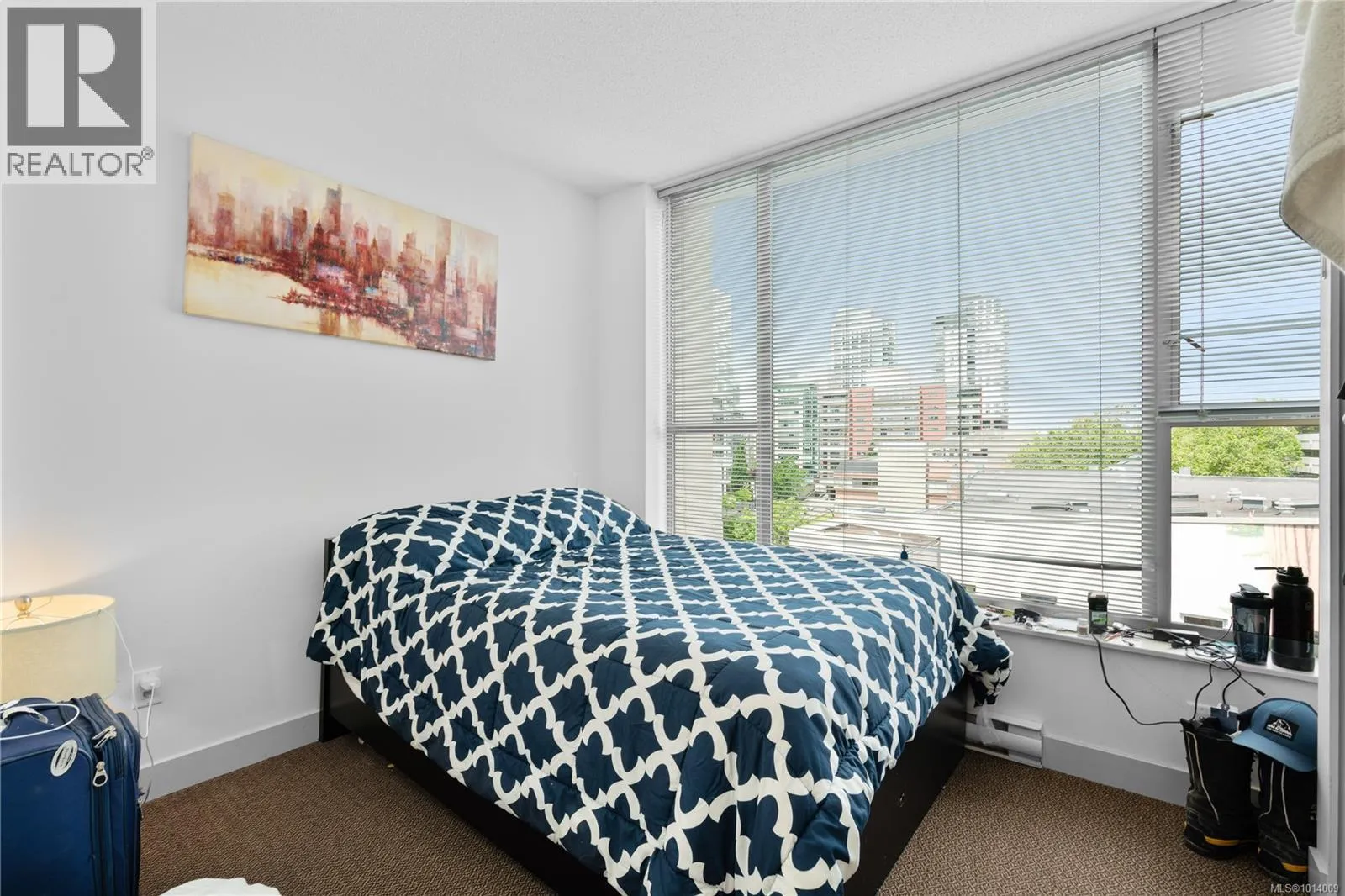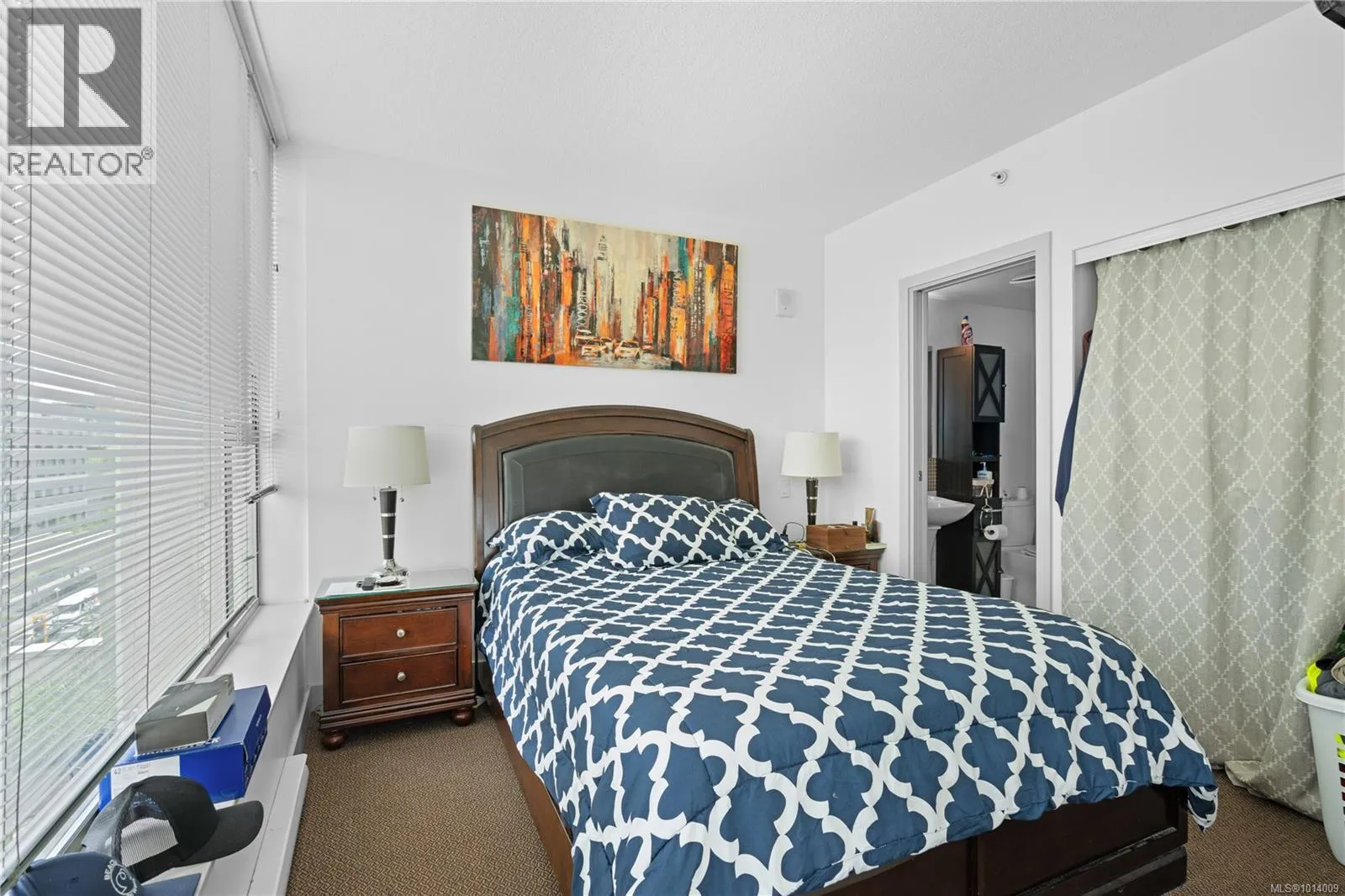 Welcome to a bright 2-bed, 1-bath condo in The Juliet, a sought-after steel and concrete building in the heart of Victoria. The floor-to-ceiling windows offer sweeping views of the city, which fill the space with natural light. The modern kitchen features ss appliances, quartz counters, a bi-level island with breakfast bar, and sleek bamboo flooring throughout. The primary bedroom includes its own access to the 4-piece bathroom. Step out onto your covered balcony, perfect for enjoying your morning coffee. This unit also features in-suite laundry, 1 secure parking stall, & bike storage. This building includes an expansive rooftop terrace, complete with a zen garden and bbq area, that wraps around the entire building showcasing 360° views of Victoria. Located steps from cafes, restaurants, shops, and everything downtown Victoria has to offer. Including an onsite caretaker and pet-friendly policies, this condo blends modern comfort with an unbeatable location. (id:27476)