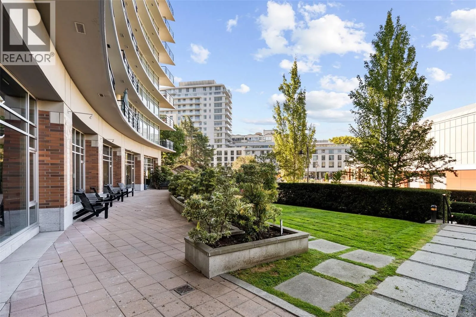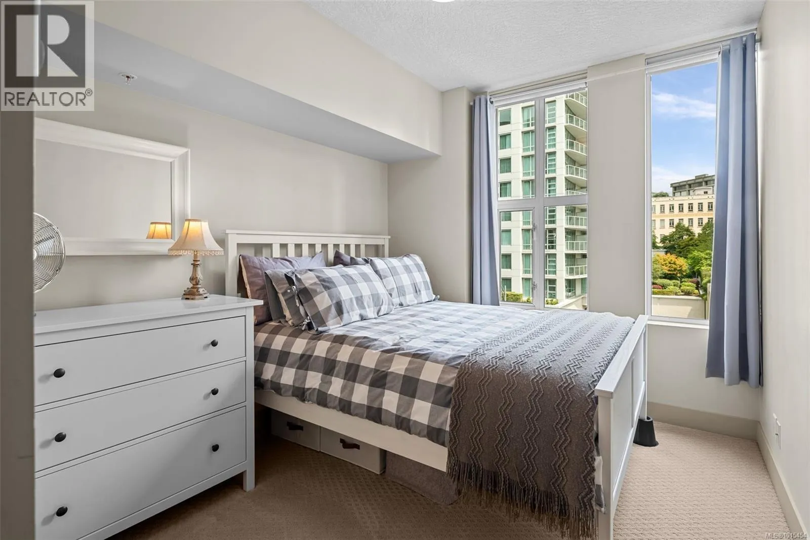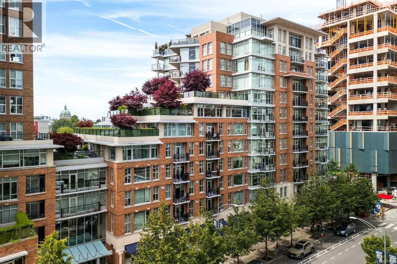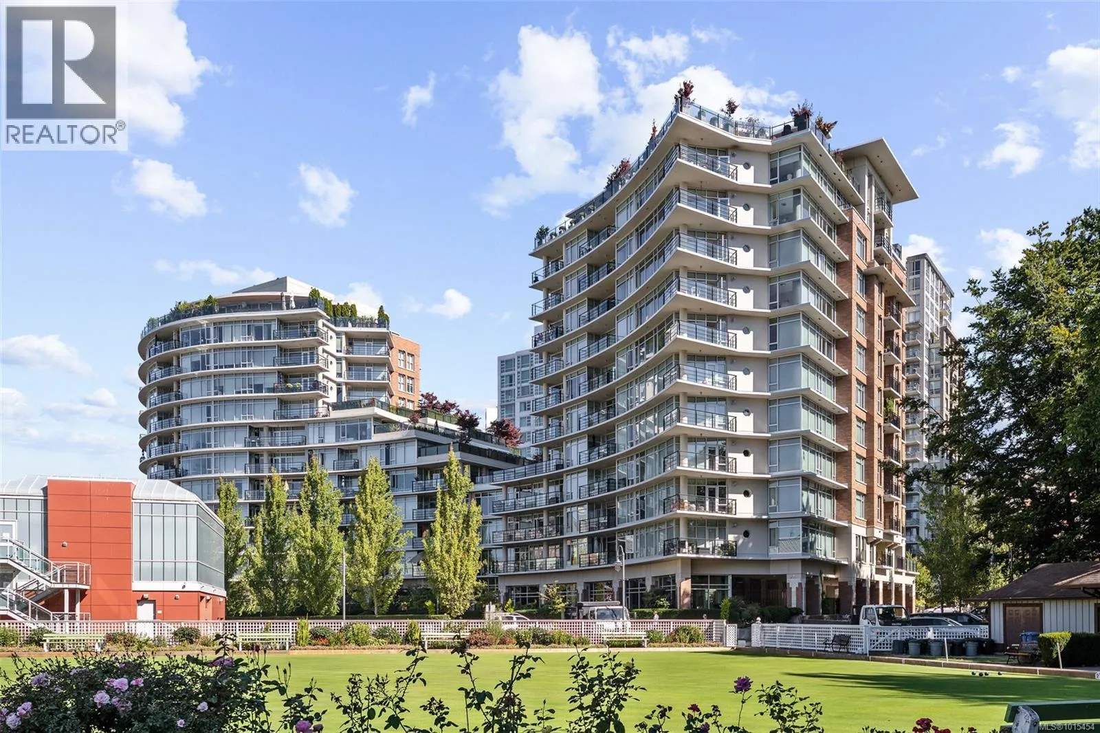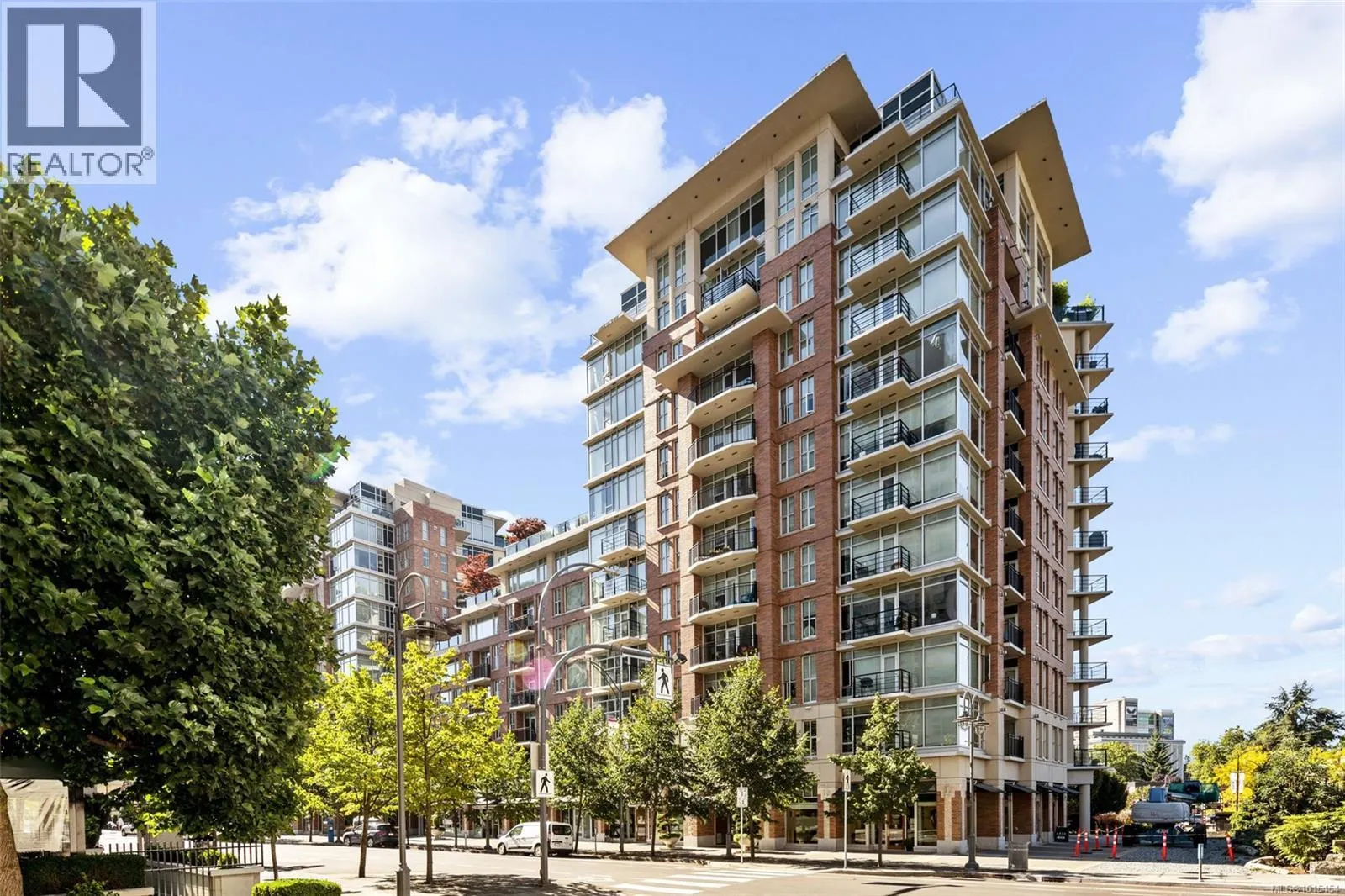 Prepare to be impressed with this meticulous luxury condo in the prestigious ARIA building. Step into a bright open floor plan showcasing gleaming engineered wood flooring, cozy gas fireplace, floor to ceiling windows framing picturesque corridor views of blue skies and elevated garden greenery. A Chefâs kitchen finished with granite countertops, richly toned cabinets, wine storage and stainless appliances including gas range. Spacious primary bedroom with accommodation space for furnishings and 4pc ensuite. Spa-inspired bathroom for guests and second bedroom. Complex amenities feature a residents lounge, fitness facility and sauna, bike storage room workshop, and underground parking. City living at its finest in the heart of the Humboldt Valley, a neighbourhood encompassing famous landmark destinations. Steps to the Inner Harbour, Beacon Hill Park, IMAX theatre, Royal BC Museum, Parliament Buildings, Restaurants, Entertainment and Shopping. (id:27476)