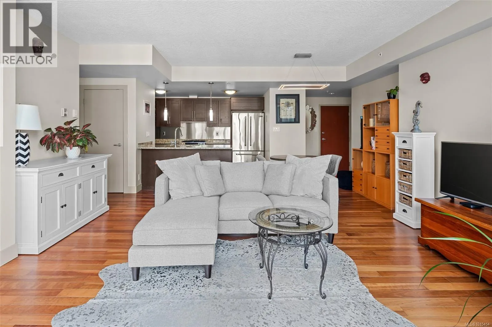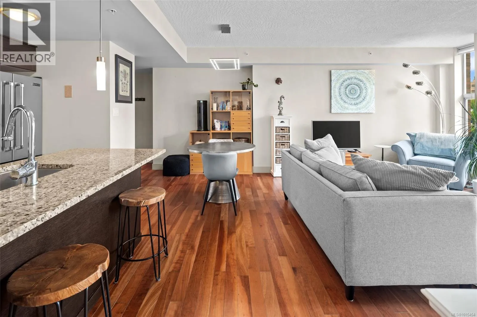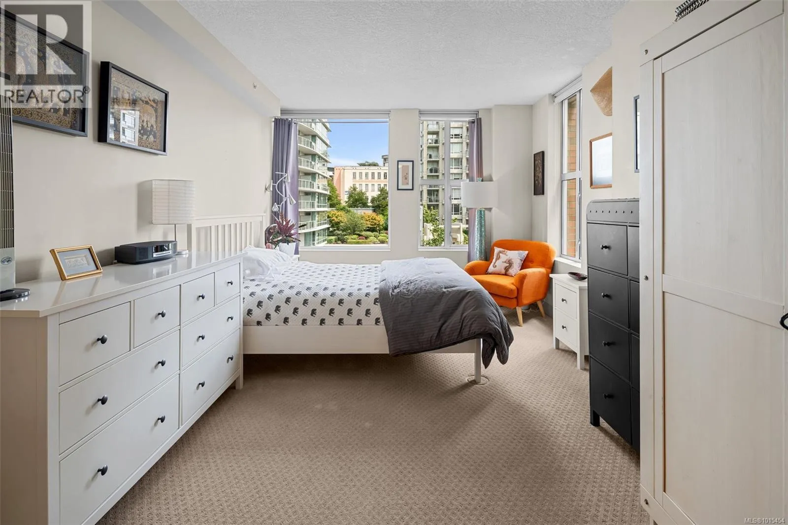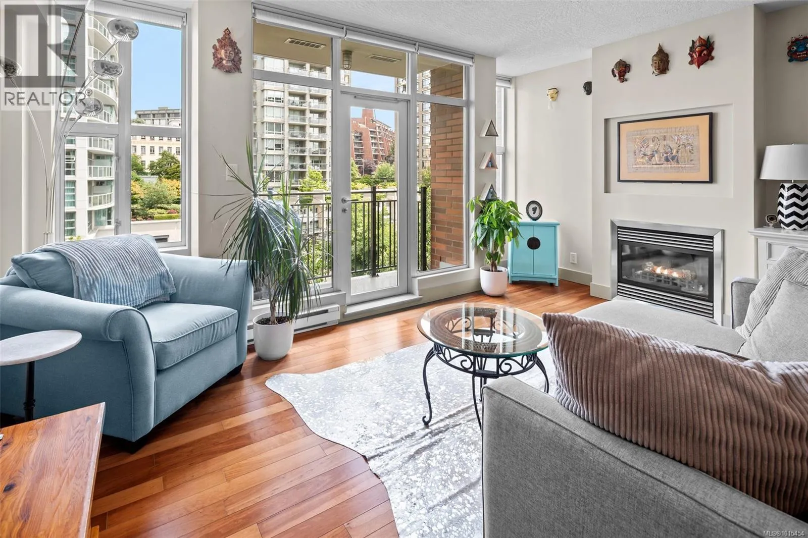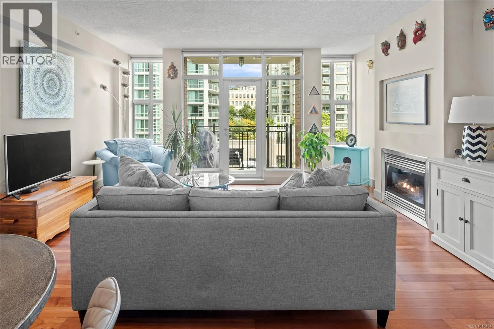 Prepare to be impressed with this meticulous luxury condo in the prestigious ARIA building. Step into a bright open floor plan showcasing gleaming engineered wood flooring, cozy gas fireplace, floor to ceiling windows framing picturesque corridor views of blue skies and elevated garden greenery. A Chefâs kitchen finished with granite countertops, richly toned cabinets, wine storage and stainless appliances including gas range. Spacious primary bedroom with accommodation space for furnishings and 4pc ensuite. Spa-inspired bathroom for guests and second bedroom. Complex amenities feature a residents lounge, fitness facility and sauna, bike storage room workshop, and underground parking. City living at its finest in the heart of the Humboldt Valley, a neighbourhood encompassing famous landmark destinations. Steps to the Inner Harbour, Beacon Hill Park, IMAX theatre, Royal BC Museum, Parliament Buildings, Restaurants, Entertainment and Shopping. (id:27476)