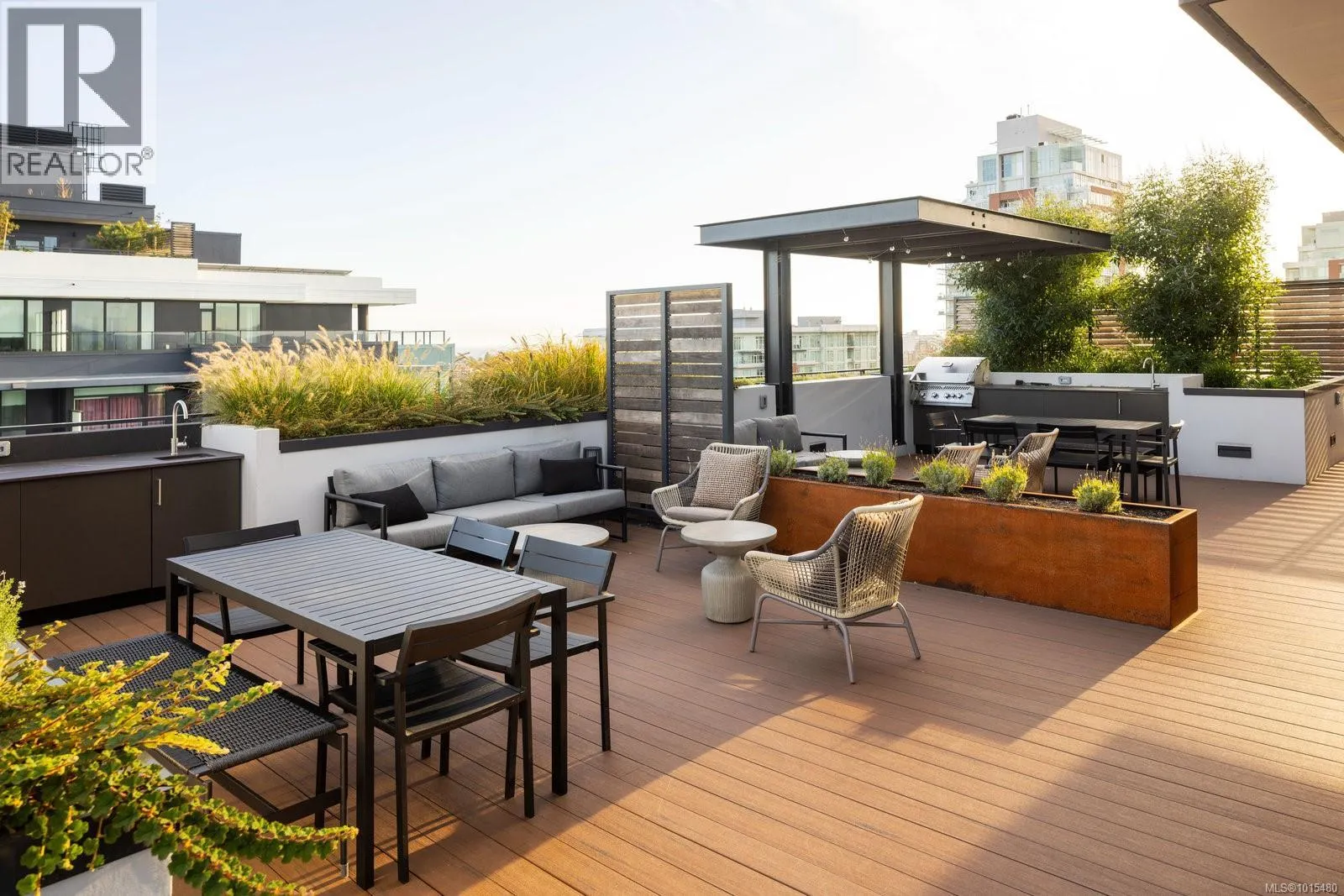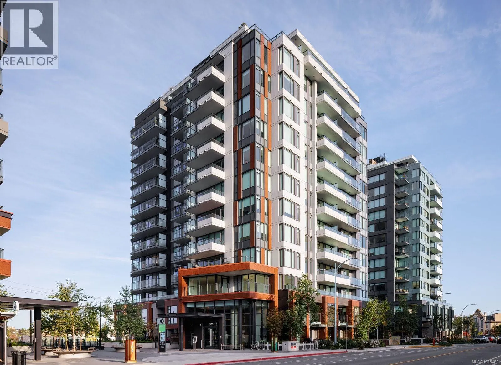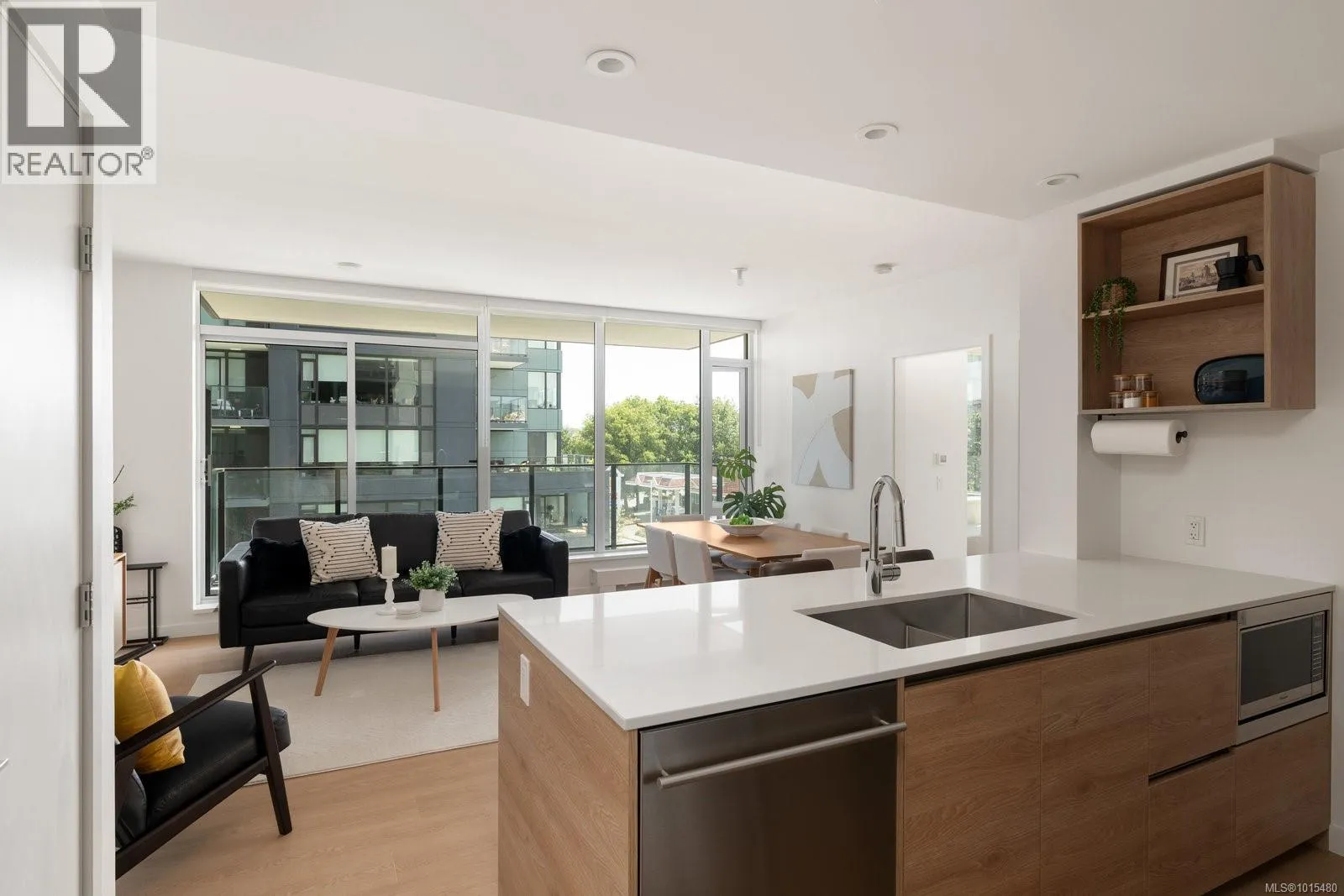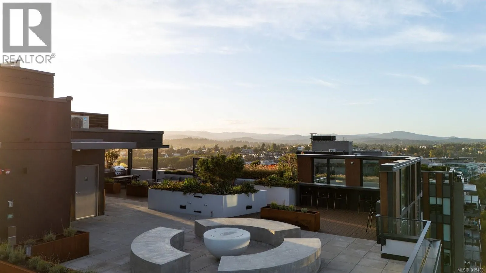 Welcome to Dockside Green, where sustainable design meets modern luxury. This exceptional 2-bedroom, 2-bathroom suite by BOSA Development was completed in 2023 and remains under full warranty, offering peace of mind and impeccable craftsmanship. Perfectly positioned on a southeast-facing corner, the home enjoys natural light throughout the day and offers serene views from its generous 107-square-foot balconyâa perfect spot for morning coffee or evening unwinding. Step into a chef-inspired kitchen with a quartz peninsula that seats four, ideal for both casual meals and entertaining. The kitchen also features a sleek gas range, a statement backsplash, Stosa Italian cabinetry, and extensive cupboard space. The open-concept layout flows seamlessly into a sunlit living area, creating an inviting space for gathering or relaxing. The spacious primary suite is a tranquil retreat with a walk-in closet and a spa-inspired ensuite bathroom featuring a no-step shower and modern finishes. A second full bathroom includes a deep soaker tub, ideal for quiet relaxation. This thoughtfully designed building offers standout amenities: a best-in-class fitness center, a rooftop terrace complete with three BBQ stations and a gas fireplace, a pet wash area, secure bike storage, and a warm, contemporary social lounge for gatherings and quiet moments alike. Aspire to live in Vic-West, nestled near the Galloping Goose Trail and just a short stroll to Marlena, Boom and Batten, the Songhees Walkway, and downtownâs finest restaurants, this home combines comfort, convenience, and community. Includes one secure parking space, a storage locker, and allows two dogs with no size restriction. (id:27476)