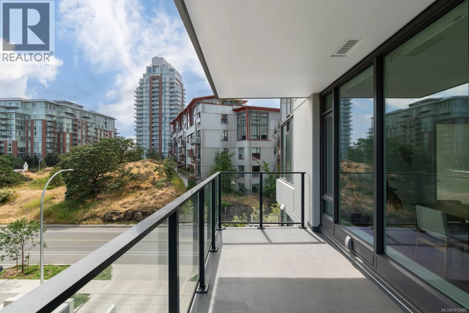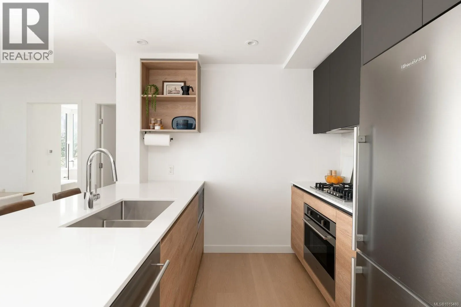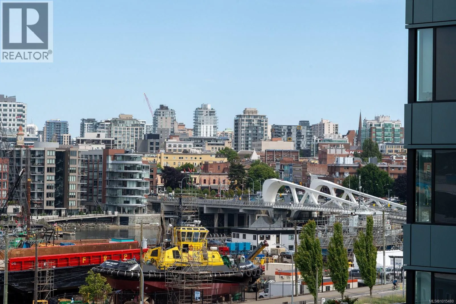 Welcome to Dockside Green, where sustainable design meets modern luxury. This exceptional 2-bedroom, 2-bathroom suite by BOSA Development was completed in 2023 and remains under full warranty, offering peace of mind and impeccable craftsmanship. Perfectly positioned on a southeast-facing corner, the home enjoys natural light throughout the day and offers serene views from its generous 107-square-foot balconyâa perfect spot for morning coffee or evening unwinding. Step into a chef-inspired kitchen with a quartz peninsula that seats four, ideal for both casual meals and entertaining. The kitchen also features a sleek gas range, a statement backsplash, Stosa Italian cabinetry, and extensive cupboard space. The open-concept layout flows seamlessly into a sunlit living area, creating an inviting space for gathering or relaxing. The spacious primary suite is a tranquil retreat with a walk-in closet and a spa-inspired ensuite bathroom featuring a no-step shower and modern finishes. A second full bathroom includes a deep soaker tub, ideal for quiet relaxation. This thoughtfully designed building offers standout amenities: a best-in-class fitness center, a rooftop terrace complete with three BBQ stations and a gas fireplace, a pet wash area, secure bike storage, and a warm, contemporary social lounge for gatherings and quiet moments alike. Aspire to live in Vic-West, nestled near the Galloping Goose Trail and just a short stroll to Marlena, Boom and Batten, the Songhees Walkway, and downtownâs finest restaurants, this home combines comfort, convenience, and community. Includes one secure parking space, a storage locker, and allows two dogs with no size restriction. (id:27476)