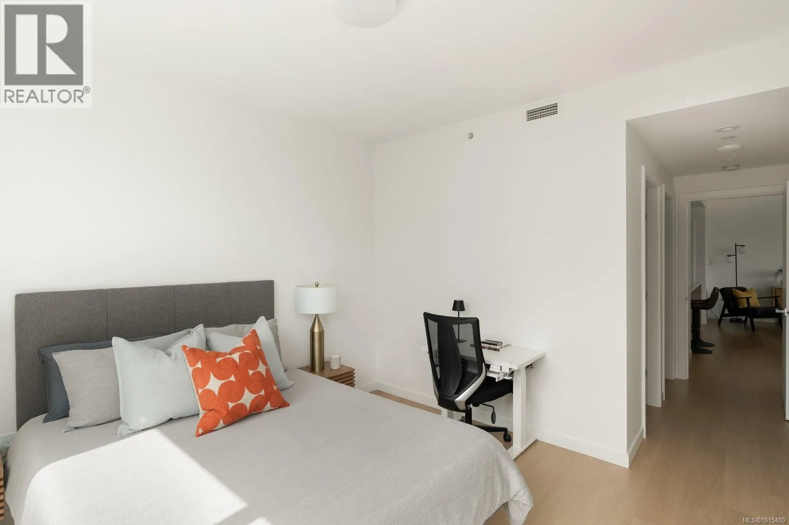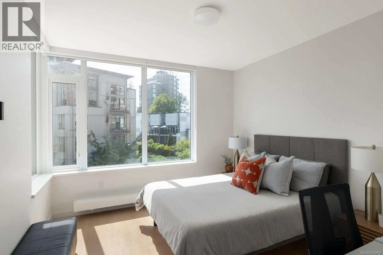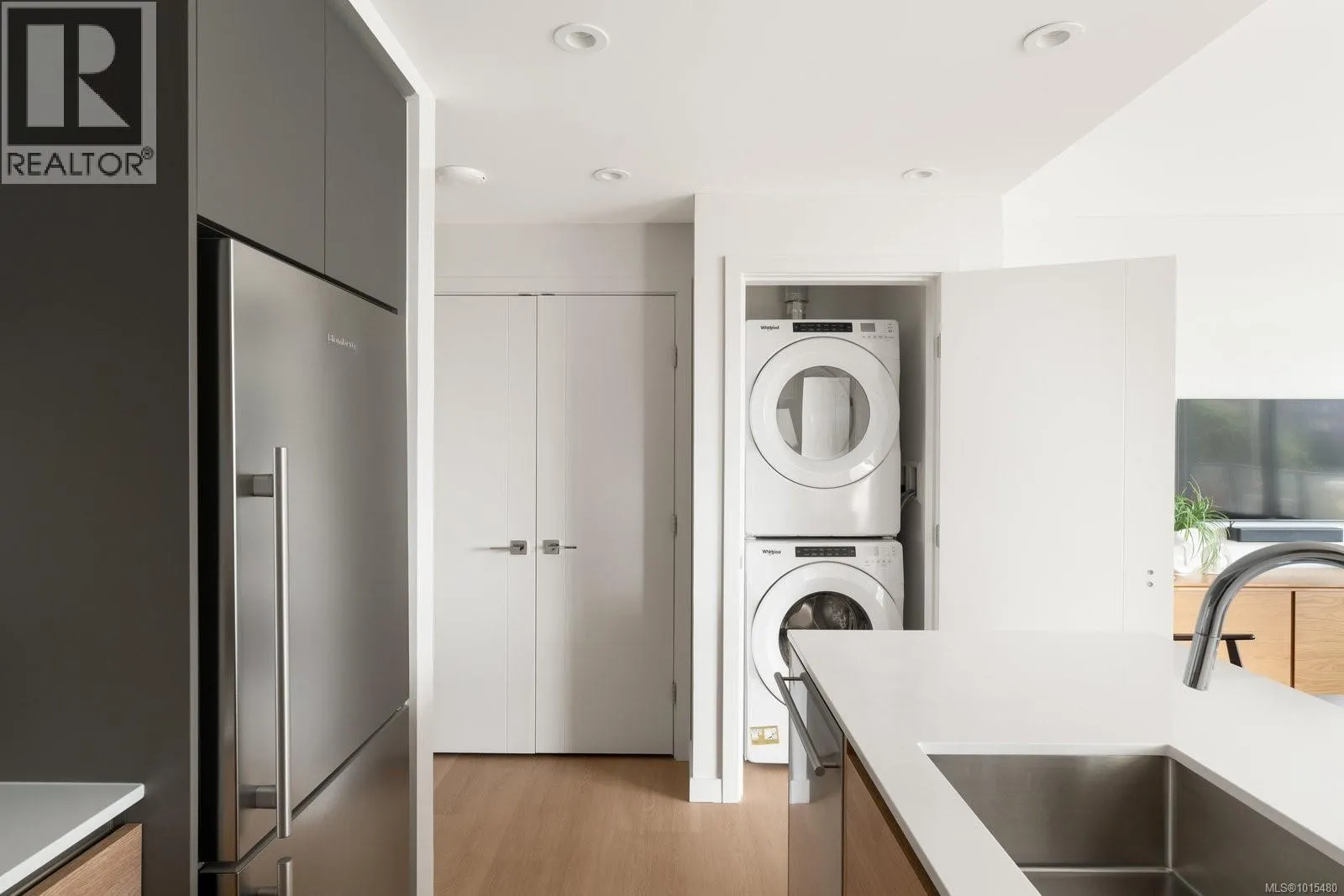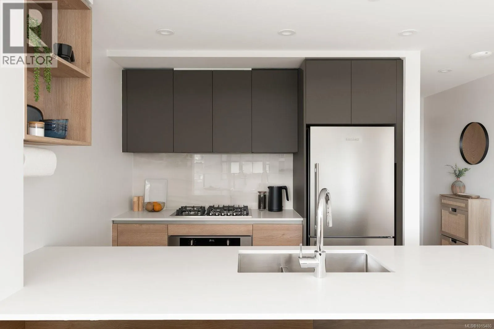 Welcome to Dockside Green, where sustainable design meets modern luxury. This exceptional 2-bedroom, 2-bathroom suite by BOSA Development was completed in 2023 and remains under full warranty, offering peace of mind and impeccable craftsmanship. Perfectly positioned on a southeast-facing corner, the home enjoys natural light throughout the day and offers serene views from its generous 107-square-foot balconyâa perfect spot for morning coffee or evening unwinding. Step into a chef-inspired kitchen with a quartz peninsula that seats four, ideal for both casual meals and entertaining. The kitchen also features a sleek gas range, a statement backsplash, Stosa Italian cabinetry, and extensive cupboard space. The open-concept layout flows seamlessly into a sunlit living area, creating an inviting space for gathering or relaxing. The spacious primary suite is a tranquil retreat with a walk-in closet and a spa-inspired ensuite bathroom featuring a no-step shower and modern finishes. A second full bathroom includes a deep soaker tub, ideal for quiet relaxation. This thoughtfully designed building offers standout amenities: a best-in-class fitness center, a rooftop terrace complete with three BBQ stations and a gas fireplace, a pet wash area, secure bike storage, and a warm, contemporary social lounge for gatherings and quiet moments alike. Aspire to live in Vic-West, nestled near the Galloping Goose Trail and just a short stroll to Marlena, Boom and Batten, the Songhees Walkway, and downtownâs finest restaurants, this home combines comfort, convenience, and community. Includes one secure parking space, a storage locker, and allows two dogs with no size restriction. (id:27476)