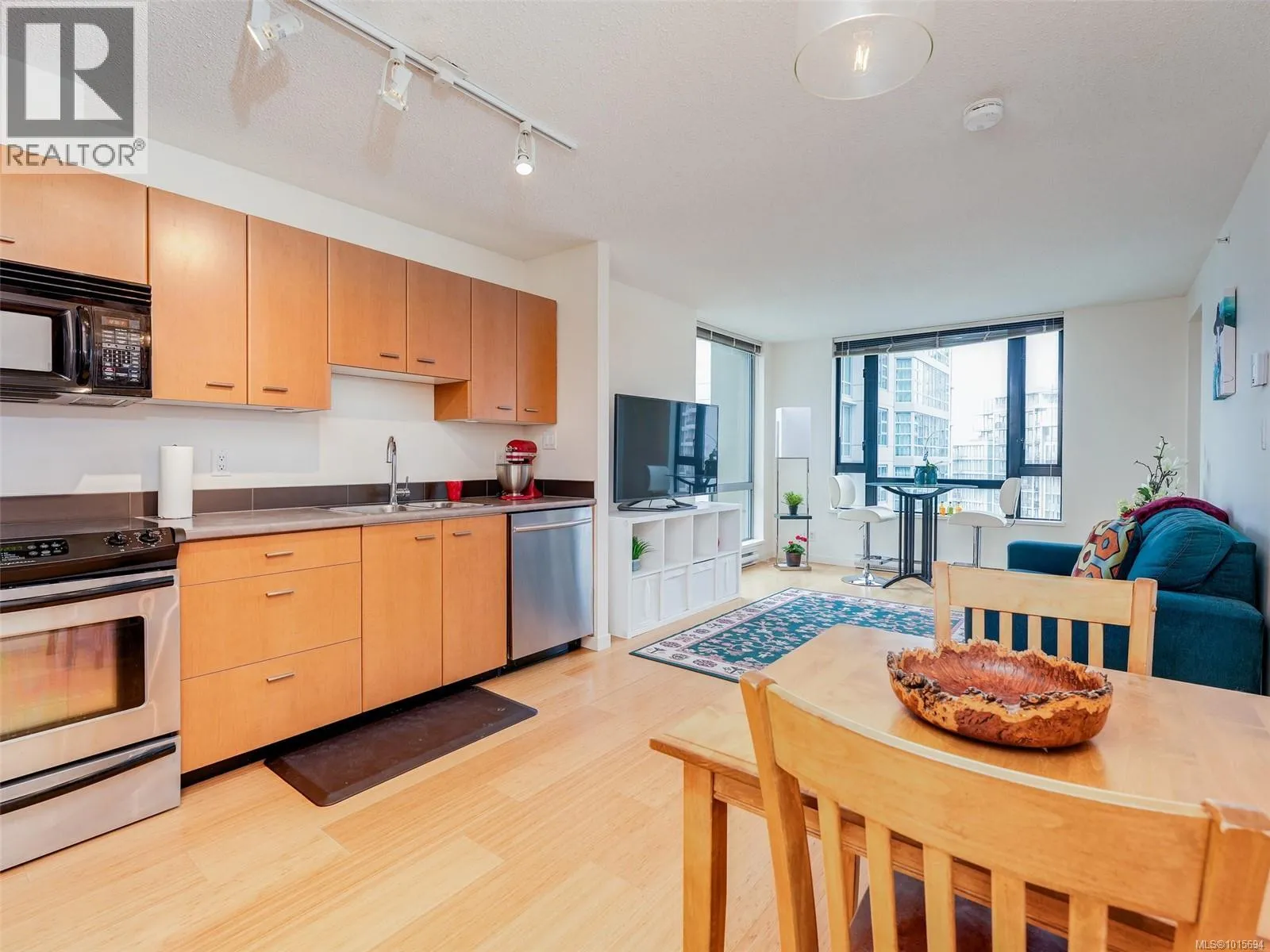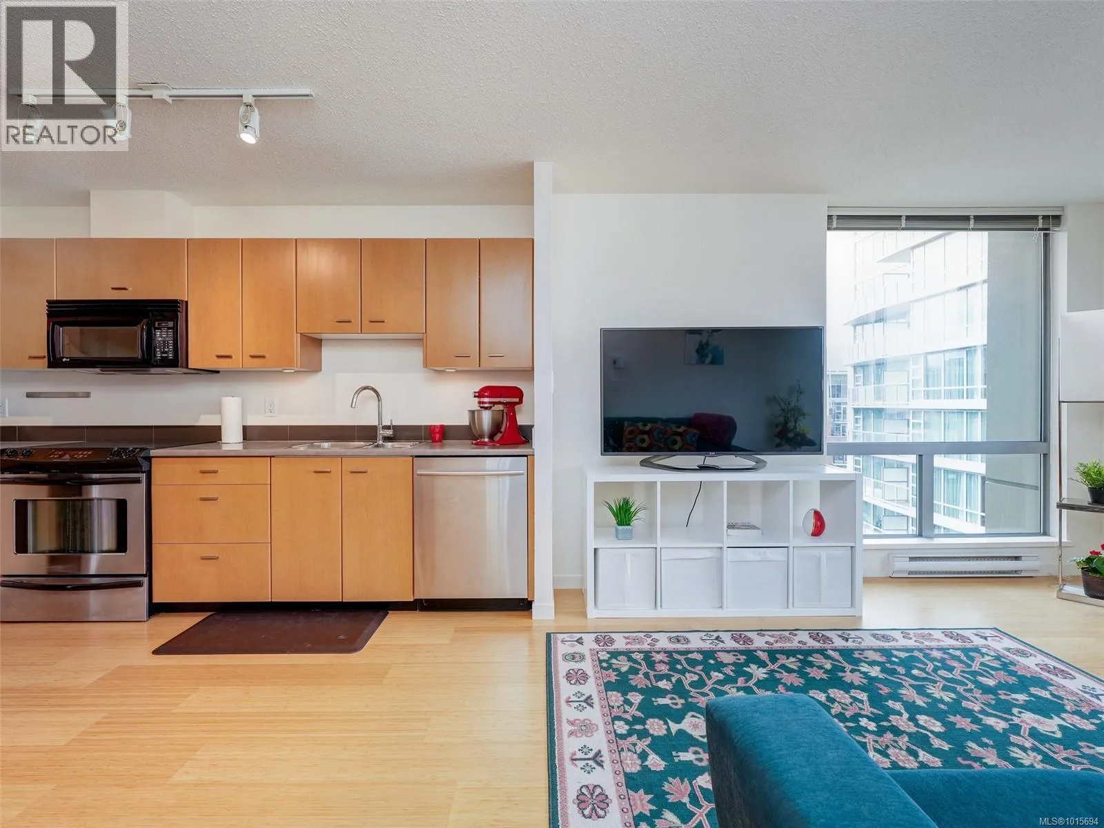 Luxury urban living at the 'Astoria'. A modern steel & concrete building in the heart of Downtown's prestigious Humbolt Valley. This sunny south-facing 1-bedroom plus Den corner unit has a west-facing balcony with Downtown, Legislature, Mountain and Ocean views. The unit is a bright open plan with natural light from floor to ceiling windows on 2 sides, and has in-suite laundry and stainless steel appliances. The versatile 8'x8' den is ideal as an office, dressing room, sofa-bed and has access to the 4-piece bathroom. The Astoria boasts amenities like a gym, games/media lounge, secure underground parking, and permits rentals and pets. Steps from Downtown's vibrant shopping, restaurants, entertainment and the Inner Harbour ~ luxury awaits! (id:27476)