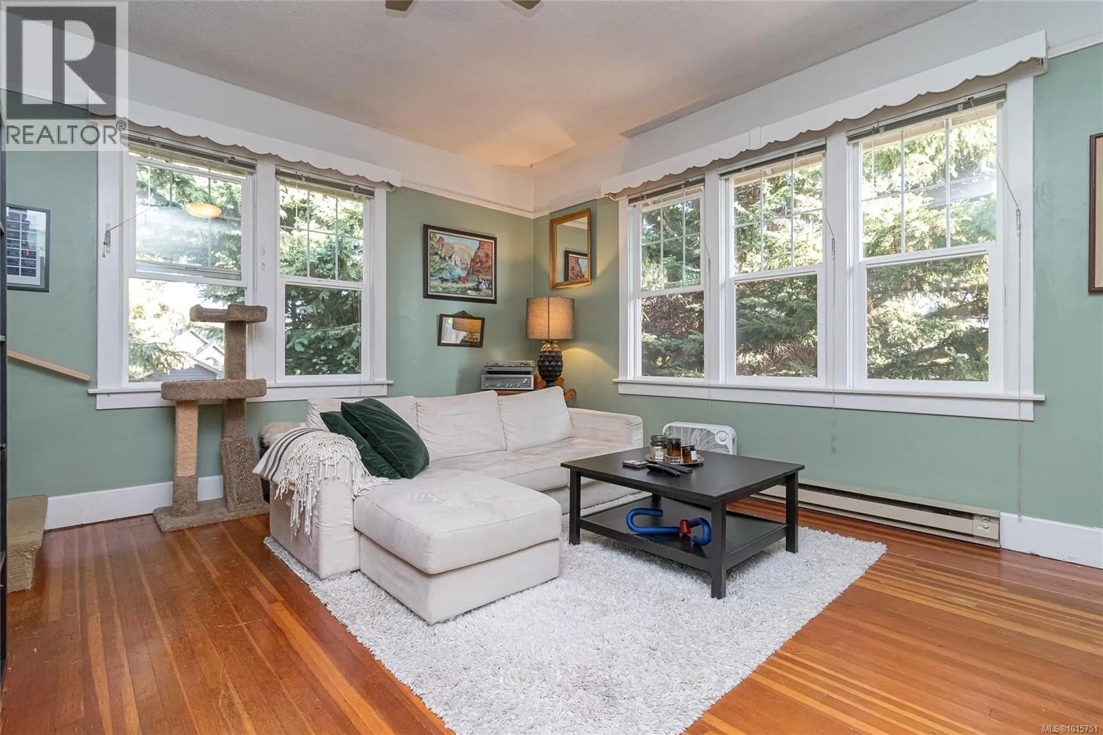 Nestled in a quiet pocket of Oaklands just two blocks from Hillside Mall, this meticulously maintained LEGAL 4-plex is a rare opportunity to secure a strong, income-producing investment. Originally built in the 1920s, the home was moved to its current location and converted to a 4-plex with permits in 1989. Set on a private 13,000+ sq ft panhandle lot, the property offers three bright 2-bedroom suites and one spacious 1-bedroom + den, each with separate entrances, individual meters, hot water tanks, and outdoor space. Character details include 10-foot ceilings and loft-style bedrooms in the upper units, while the garden suites provide generous layouts filled with natural light. Practical features include 300-amp service, common laundry, updated windows, and a double garage (one side converted to storage). With direct transit to UVIC, Camosun, and downtown, this property offers both immediate rental income and excellent long-term holding value. This property is fully tenanted with a showing schedule, and a minimum of 24 hours is required for viewings. (id:27476)