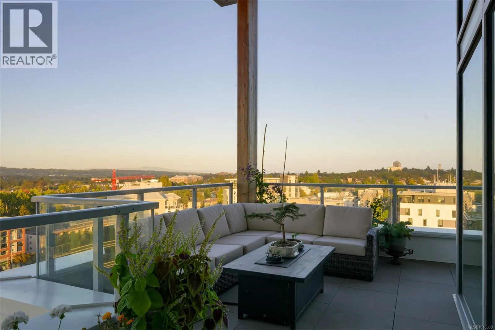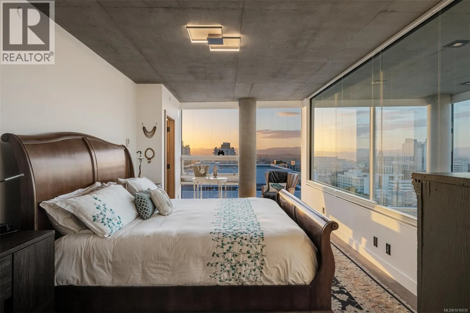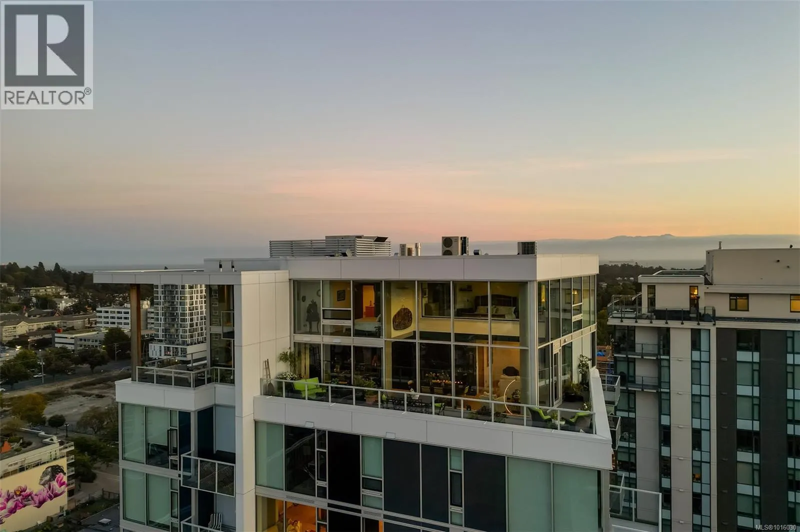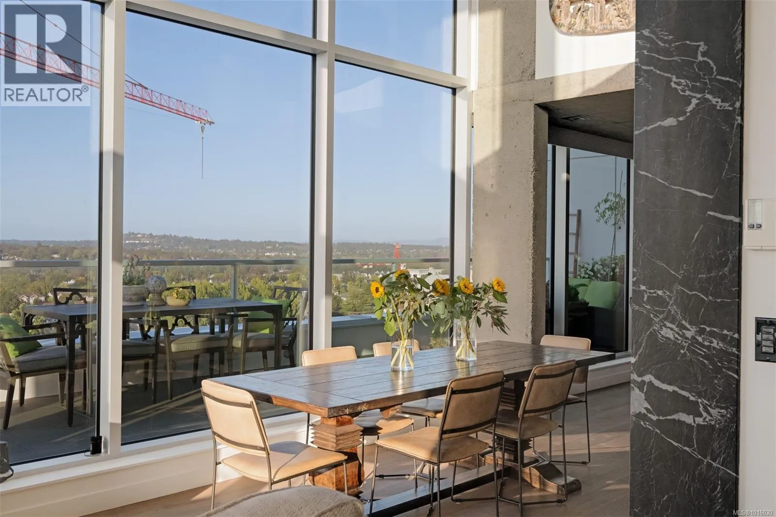 Discover the ultimate penthouse lifestyle at 989 Johnson St in downtown Victoria. This stunning steel and concrete home spans 1,800 sqft over two levels with 17.5-ft ceilings. Floor-to-ceiling windows fill the space with natural light. The kitchen flows seamlessly into the open-concept living area, perfect for hosting or unwinding. Enjoy 270-degree views of mountains, ocean, and city, with three patios to take it all in, including two covered east-facing decks with electric blinds and water/gas hookups. High-end finishes and warm wood accents bring elegance to the industrial style, complementing three bedrooms and baths. The primary bedroom suite, complete with a luxurious ensuite, sits above the family room for unparalleled views. Just steps from restaurants, spas, and downtown amenities. This pet-friendly, rentable penthouse includes two parking spots and a large private storage unit. (id:27476)