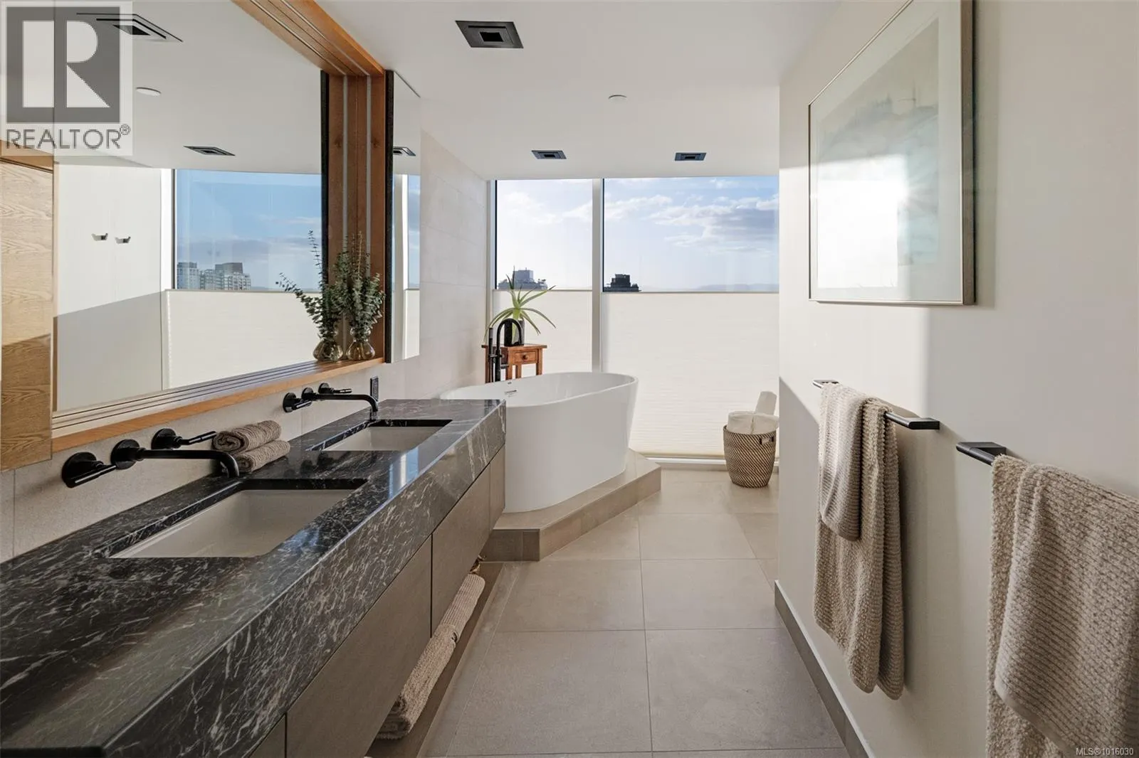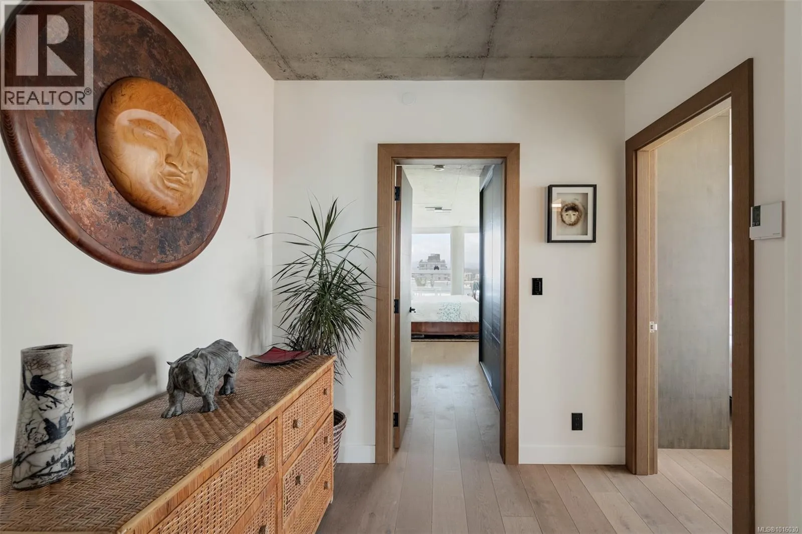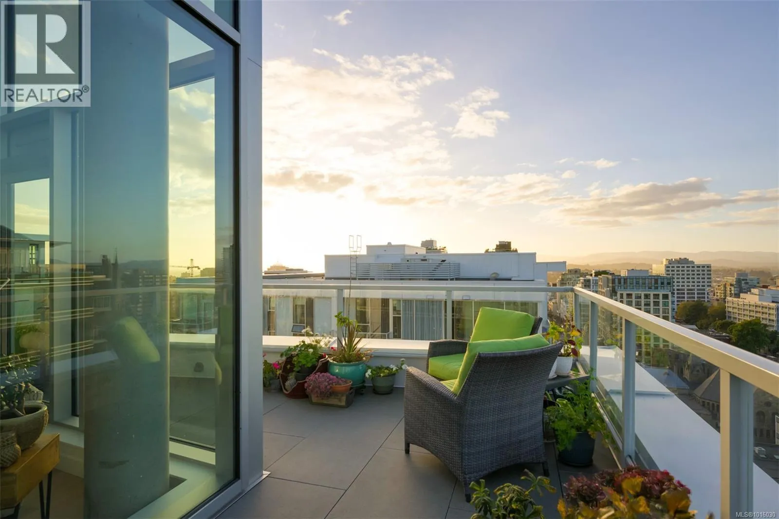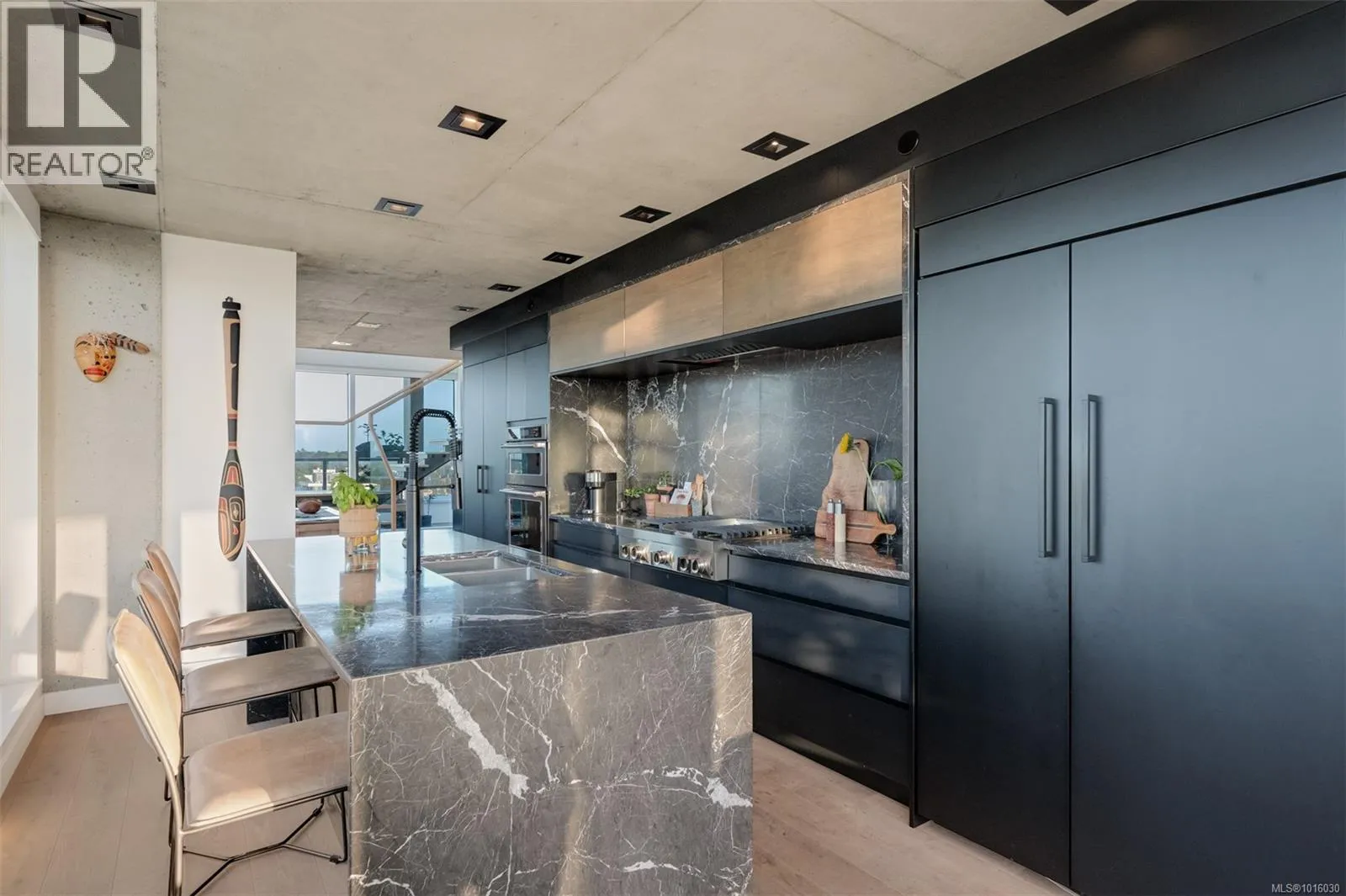 Discover the ultimate penthouse lifestyle at 989 Johnson St in downtown Victoria. This stunning steel and concrete home spans 1,800 sqft over two levels with 17.5-ft ceilings. Floor-to-ceiling windows fill the space with natural light. The kitchen flows seamlessly into the open-concept living area, perfect for hosting or unwinding. Enjoy 270-degree views of mountains, ocean, and city, with three patios to take it all in, including two covered east-facing decks with electric blinds and water/gas hookups. High-end finishes and warm wood accents bring elegance to the industrial style, complementing three bedrooms and baths. The primary bedroom suite, complete with a luxurious ensuite, sits above the family room for unparalleled views. Just steps from restaurants, spas, and downtown amenities. This pet-friendly, rentable penthouse includes two parking spots and a large private storage unit. (id:27476)