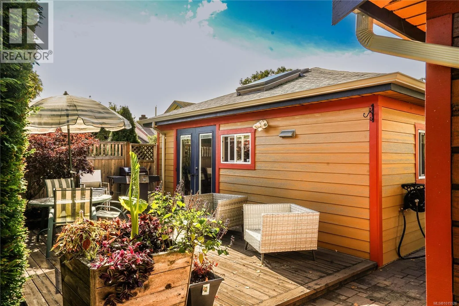 Pristine one-level living with a fully finished detached 1-bedroom suiteâperfect as a mortgage helper, guest space, or private workspace. Both dwellings enjoy separate yards and private patios, with the freedom of no strata fees or restrictions. Renovated in 2013 with updated windows, siding, and roof, this home blends timeless Medicine Brick Yard character with modern upgrades. Interior highlights include hand-scraped hardwood, heated bathroom floors with hand-cut Italian tiles, Grohe fixtures, a jetted tub with custom glass shower, gas fireplace, and built-in cabinetry. Kitchen flooring updated in 2020, bedroom carpets in 2025, fresh paint inside & out, recessed lighting, plus an EV charger for modern convenience. Ideally located near parks, transit, and Hillside Mall, this versatile property offers income potential, private outdoor living, and true lifestyle ease. (id:27476)