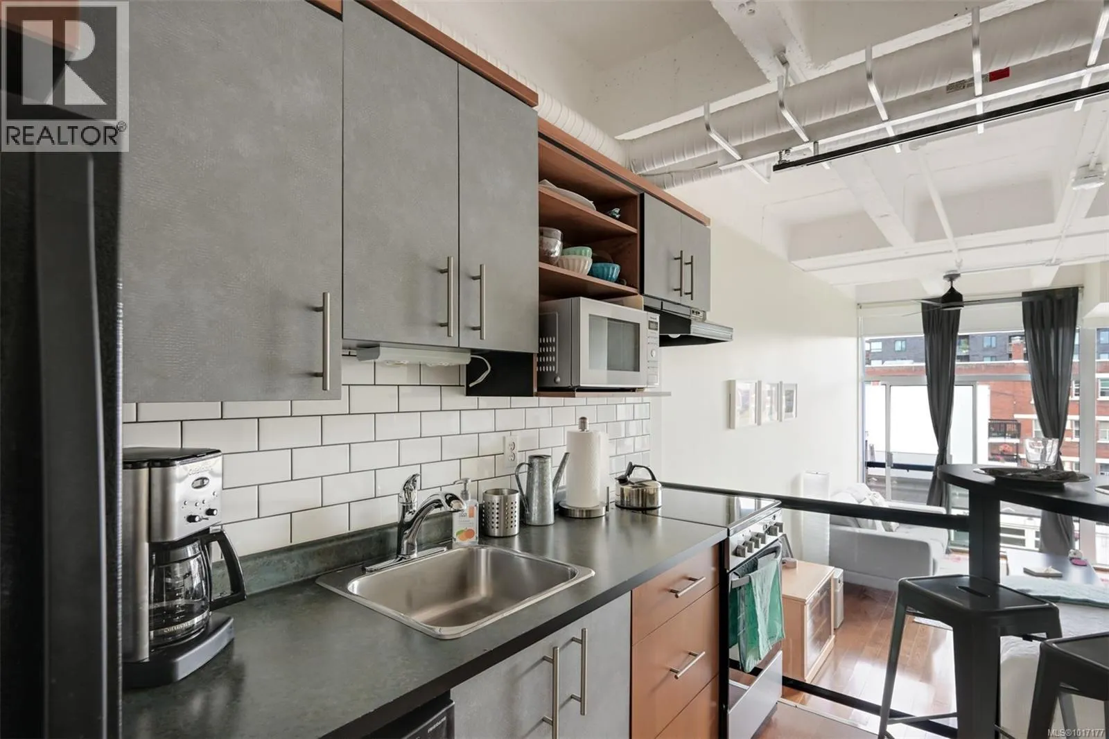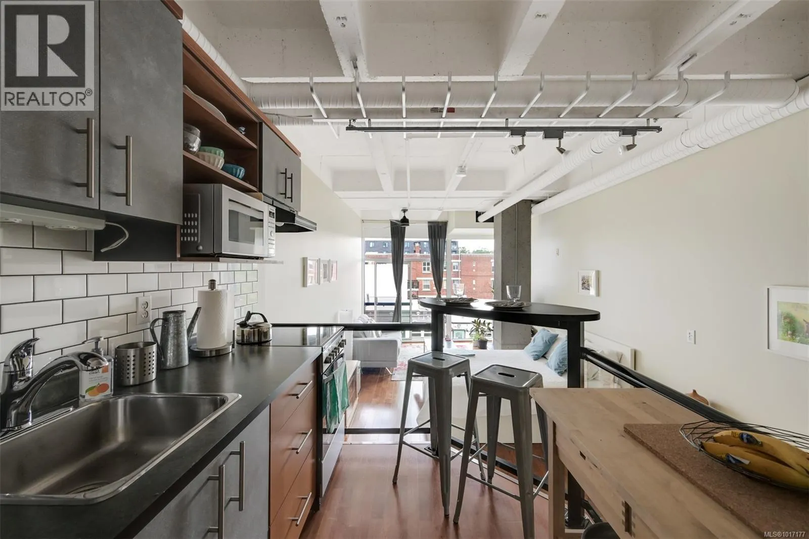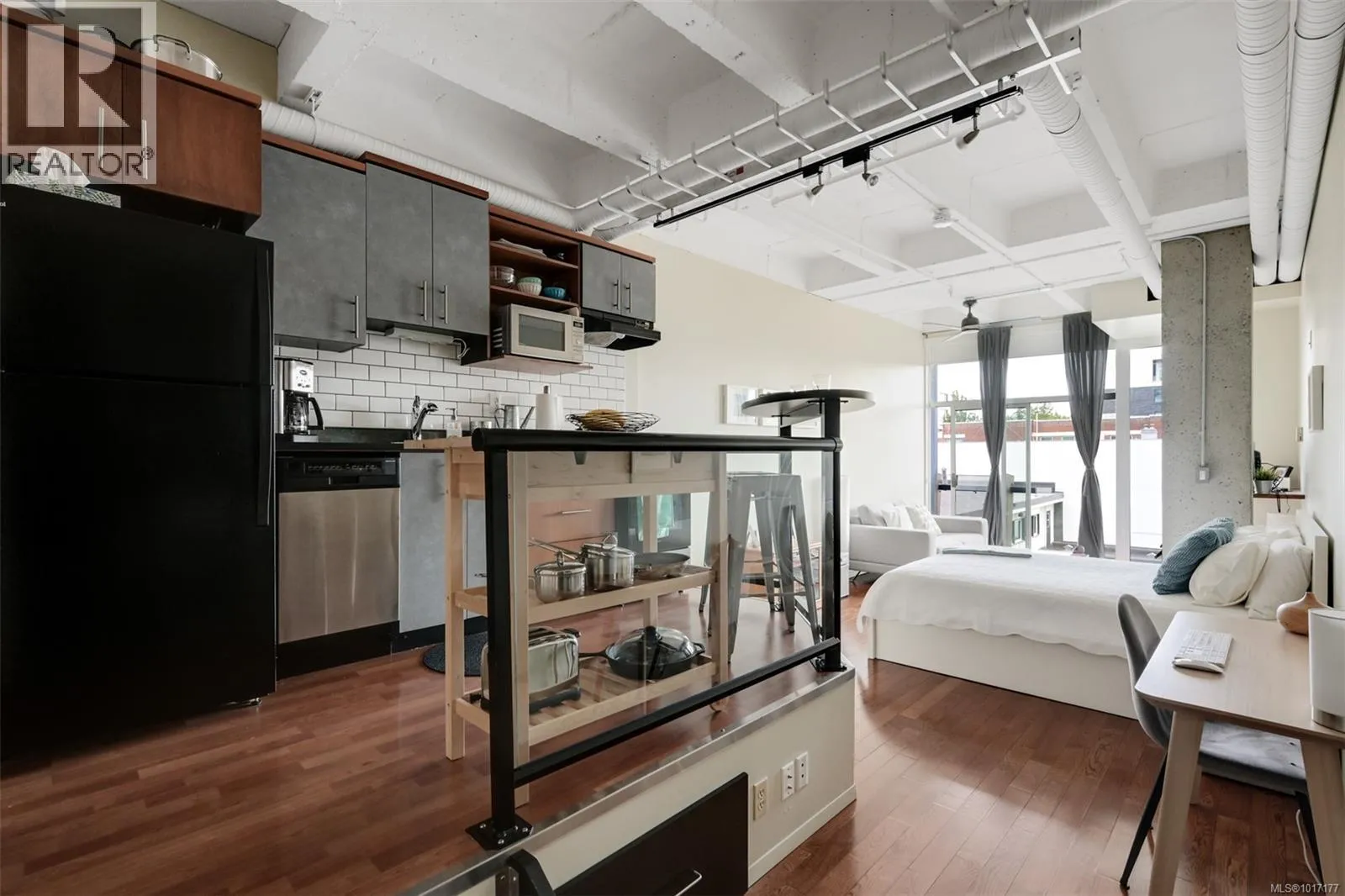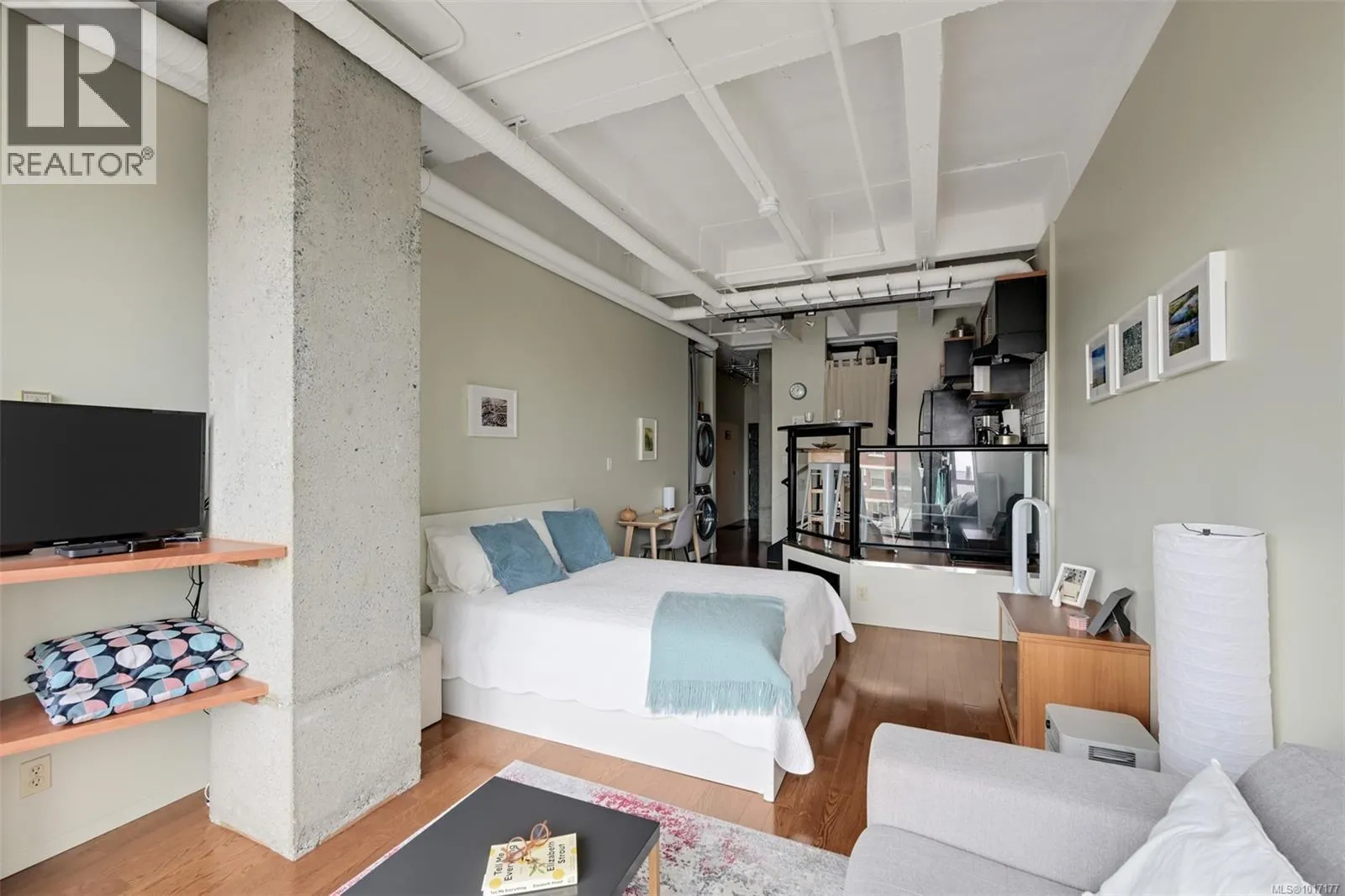 Welcome to The Mosaic, a sought-after concrete & steel building offering an exceptional blend of style & affordability in an ideal downtown location that's close to cafes, restaurants & shopping. This east-facing studio condo is flooded with beautiful morning light thanks to its floor-to-ceiling windows. The space is thoughtfully updated with new motorized blinds for easy light control, newer washer/dryer & new electric stove. Storage is maximized with a sleek, custom wardrobe solution along with an extra storage locker. This unit is an ideal opportunity for students, professionals & savvy investors thanks to its prime location & offers quick access to major bus routes. Enjoy the benefits of a low strata fee that includes your heat, hot water & gas, offering fantastic value & simplifying your monthly budget. A rare offering allowing 2 pets of any size! Stylish, affordable & incredibly convenientâthis studio is a must-see! Don't miss your chance to own a piece of this vibrant community (id:27476)