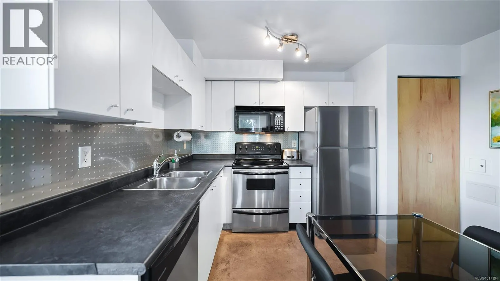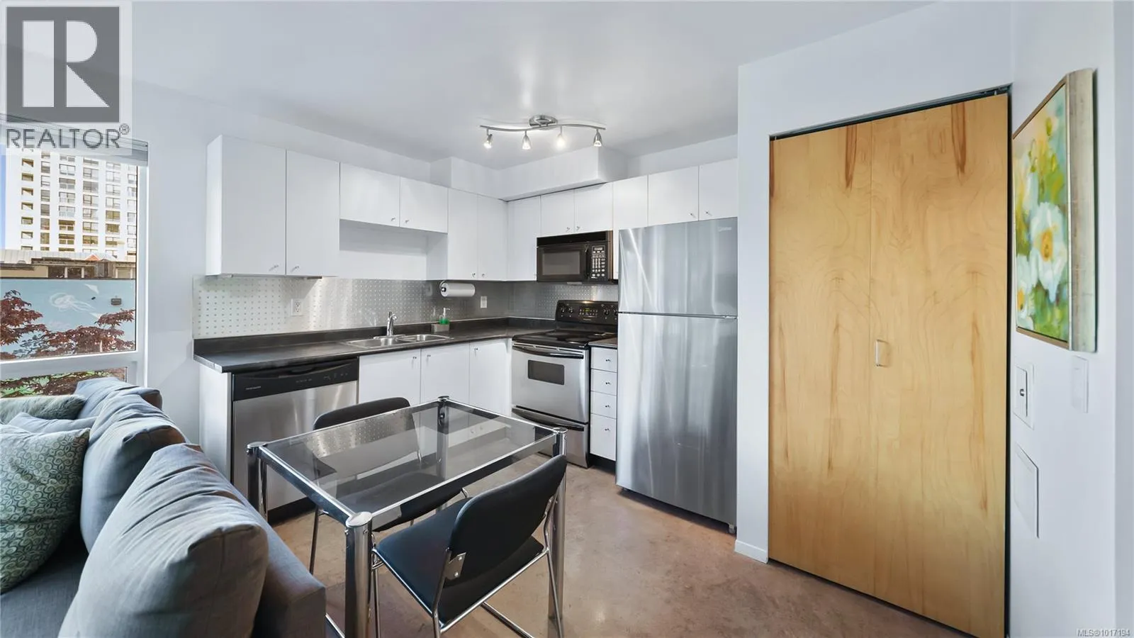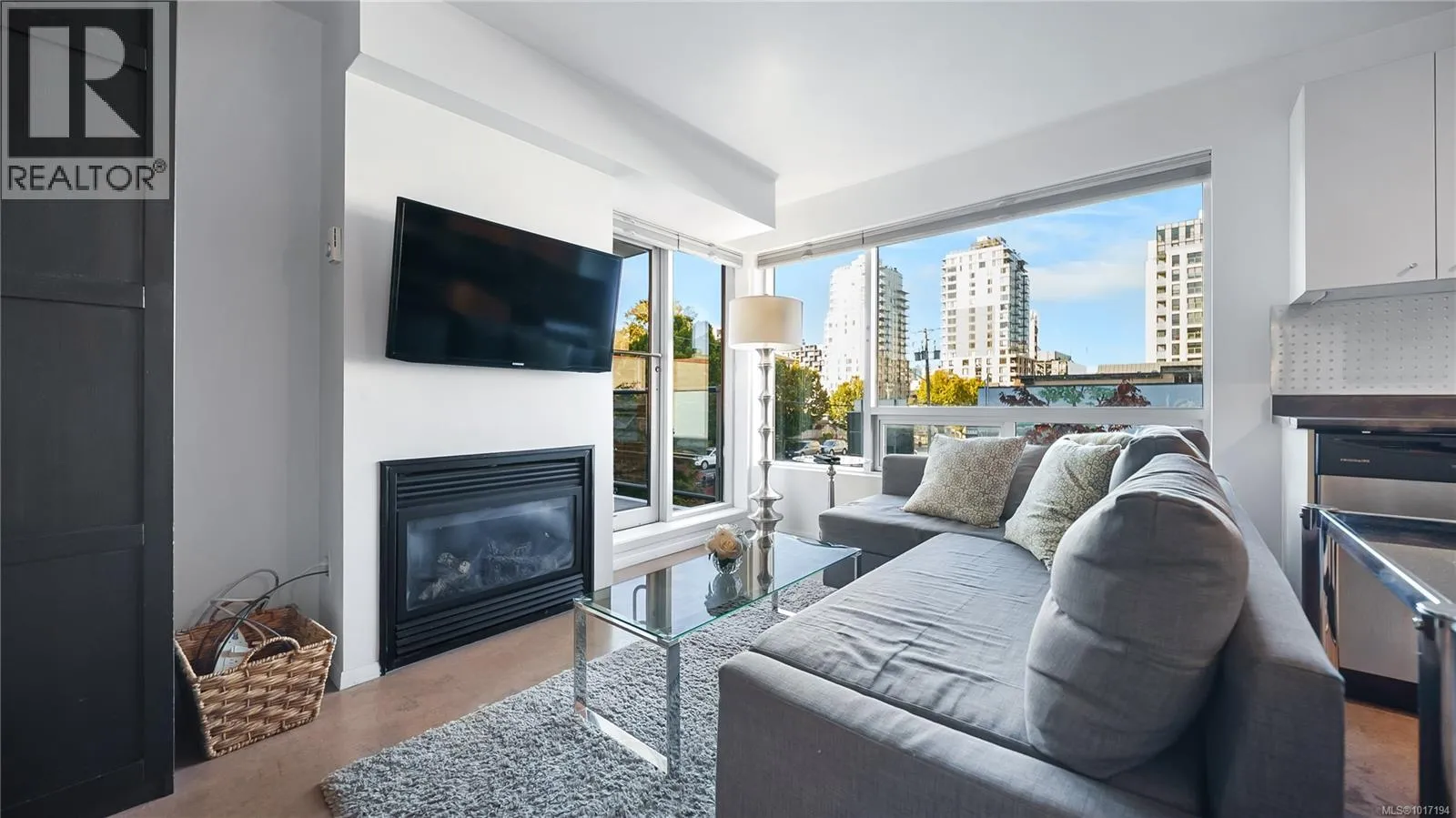 OPEN HOUSE SAT, NOV 22: 2:30-3:30PM. Chris & Kerry are excited to welcome you to The Urban. Experience the vibrant energy of DT Victoria in this modern, open-concept studio at The Urban. Don't miss the chance to view the lowest priced condo Downtown Victoria with secure underground parking! This stylish suite combines industrial design with everyday comfort, featuring polished concrete floors, a cozy natural gas fireplace & floor-to-ceiling windows that fill the space with natural light. Efficient layout with in-suite laundry, stainless steel appliances, and a southwest-facing balcony perfect for morning coffee or evening sunsets. You can even purchase fully furnished, this home is truly turn-key, built-in closet unit, plus the added bonus of secure underground parking and storage locker. Built in 2004, it's professionally managed, pet/rental-friendly (large dogs included!), communal rooftop patio & secure bike storage. With natural gas included in the strata fees, this is an efficient & low-maintenance home, located steps from vibrant Cafés, various grocery stores, Ritual Nordic Spa, Boomtown & the best of Victoriaâs vibrant downtown lifestyle, right at your doorstep. (id:27476)