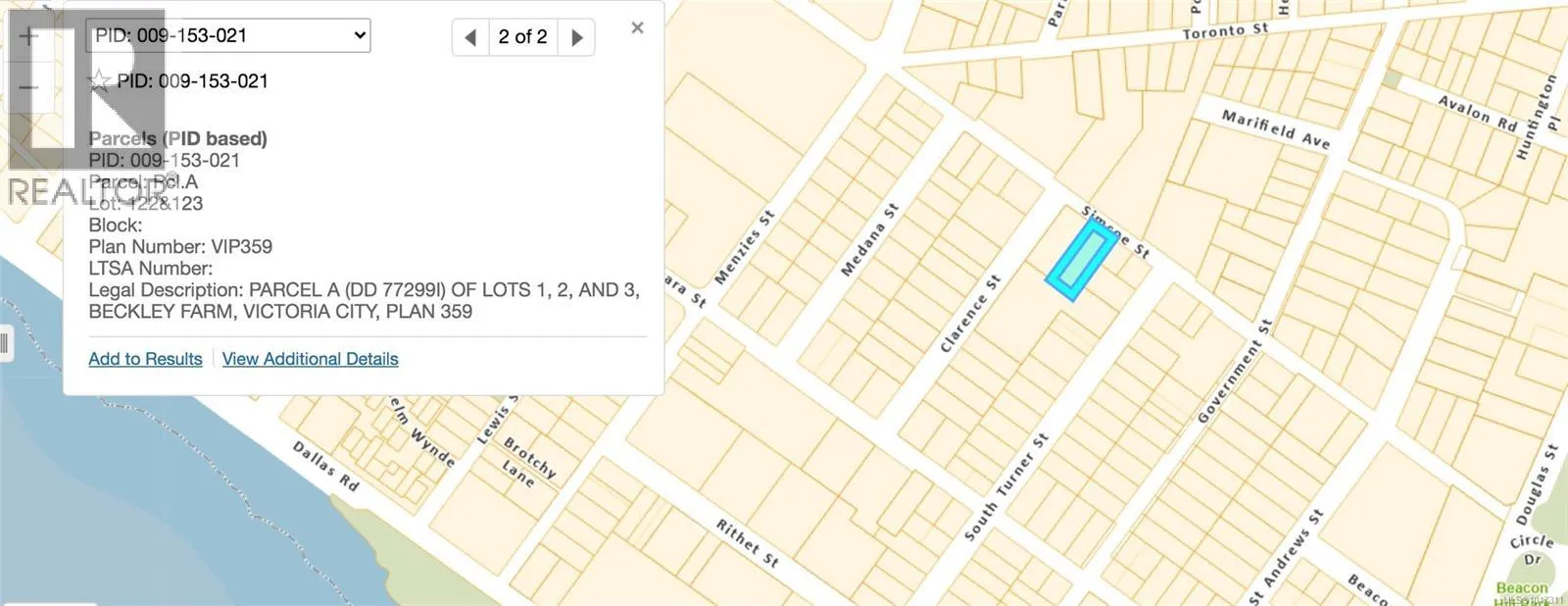 Extra Large vacant lot available in the heart of James Bay. 60' x 164', level, rectangular 9633 SQFT+-.557 Simcoe St between South Turner and Clarence Street. Has recently been zoned - Multi Family, allowing the construction 4-3bdrm townhomes, The project comes with approved Development permit plans or take advantage of recent and forthcoming city zoning changes allowing up to 2.1 x 9633 meaning a possibility of 20,000 sqft of building. Prime location offers - walking to shops, restaurants, schools, community Centre. Plus, only minutes to Downtown, the Inner Harbour, Parliament Buildings, Beacon Hill Park, Fishermanâs Wharf & mere blocks to Dallas Rd ocean front. A great place to create your dreams in an unbeatable location. (id:27476)