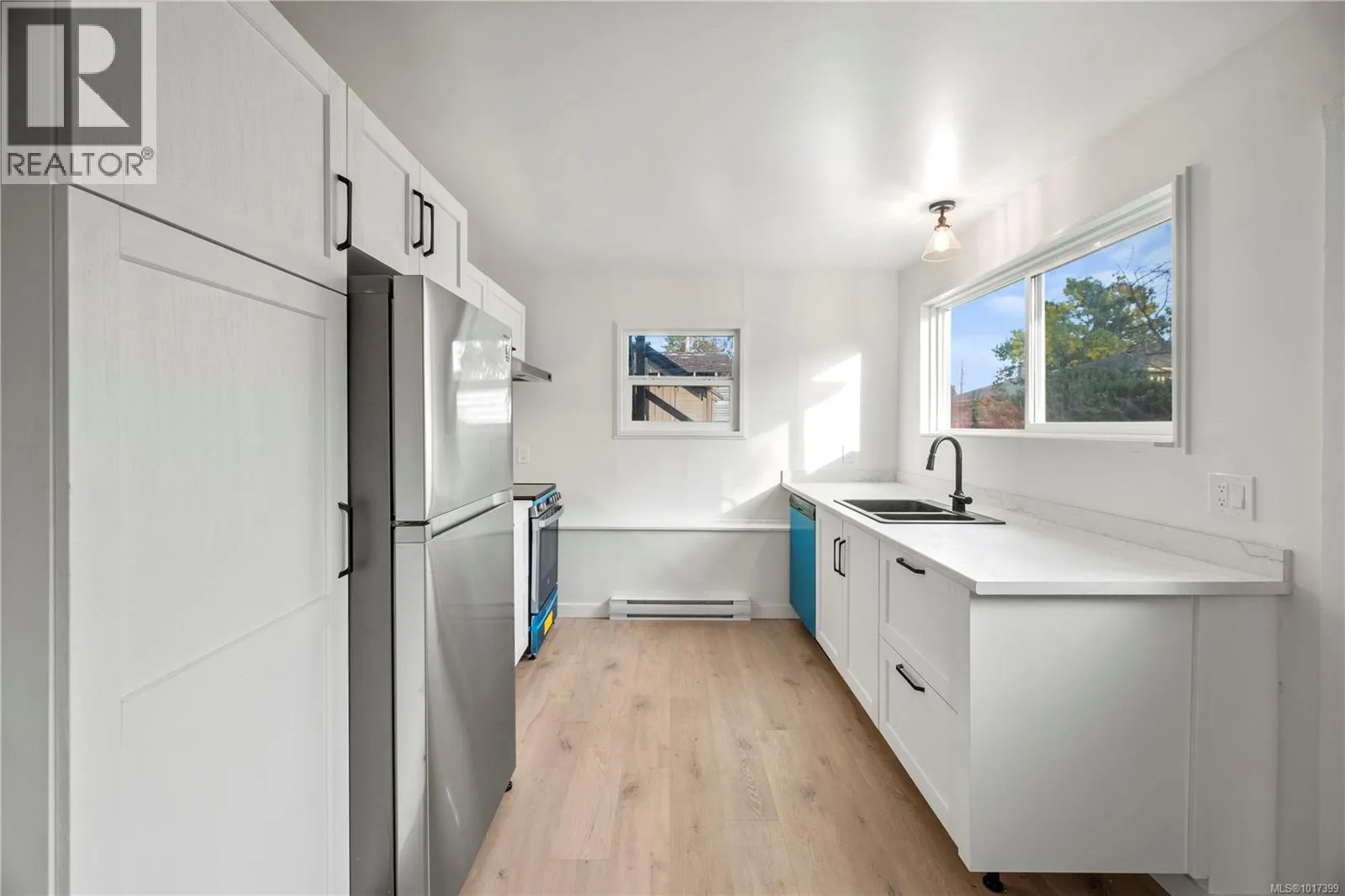 Full up/down duplex in a central Victoria location! The upper suite offers 2 bedrooms, 1 bath, and a bright living space with deck access and city viewsâready for your updates and ideas. The lower suite features 2 bedrooms + den, 1 bath, and has been tastefully renovated with new flooring, kitchen, paint, and a cozy wood stove. Each unit enjoys separate parking, individual storage sheds, and access to a spacious 6,200 sq ft lot.. Both units are vacant and ready for immediate possession, making this an excellent opportunity for investors or multi-generational living. Live in the updated suite and rent the other, or hold as a long-term revenue property. Conveniently located near schools, parks, and transit, with easy access to downtown Victoria. (id:27476)