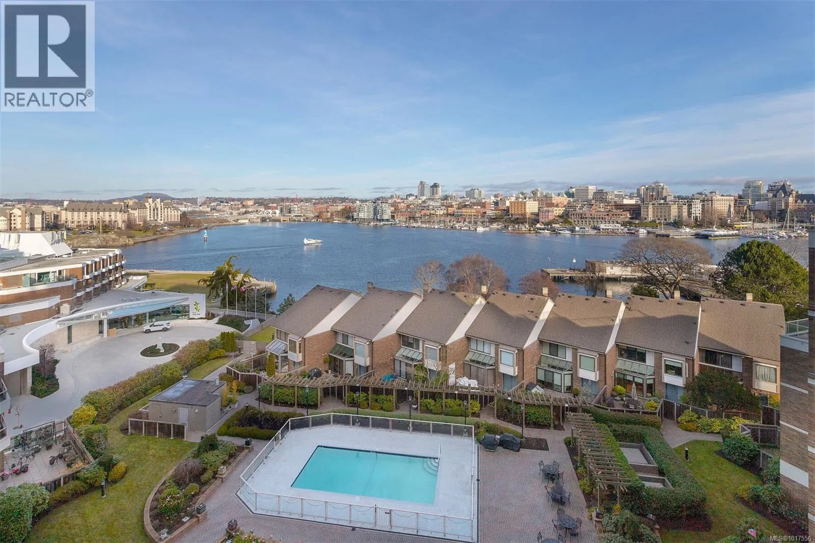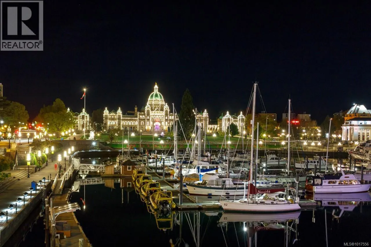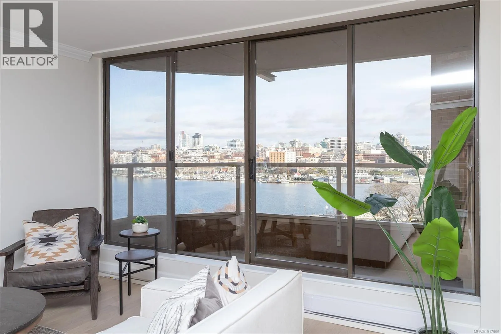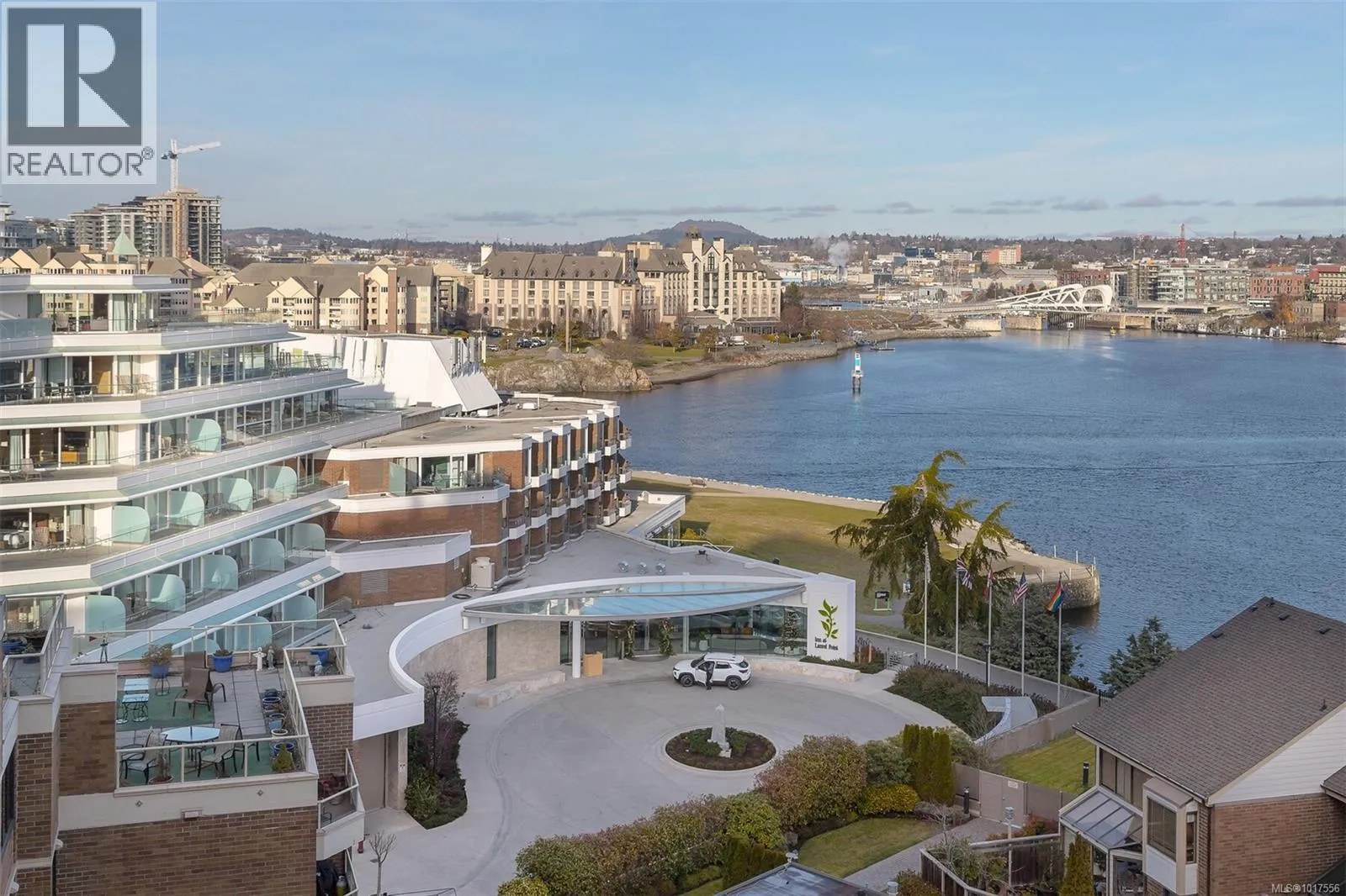Come and discover this absolutely stunning 8th floor 2-Bedroom, 2-Bath condo with some of the most incredible views of the magical Victoria Inner Harbour, marina's, and city including the historic Empress Hotel. This large 1200 sf home has been completely transformed into a modern and sophisticated residence so you can just move in and enjoy. You will love the brand new wood grained chefs kitchen featuring quartz counters, 5 person eating bar, new Stainless Steel appliances, and under-counter lighting. Very open design allows beautiful views from all principal rooms including both over-sized bedrooms. All new flooring including top quality laminate, new bathrooms, new fixtures, new feature fireplace, and all redecorated. Laurel point offers a gym, rec room, pool, library, and underground secure parking. This location is second to none - steps into the Inner Harbour, Fisherman's Wharf, restaurants, and shopping. You deserve this so come and view today. (id:27476)