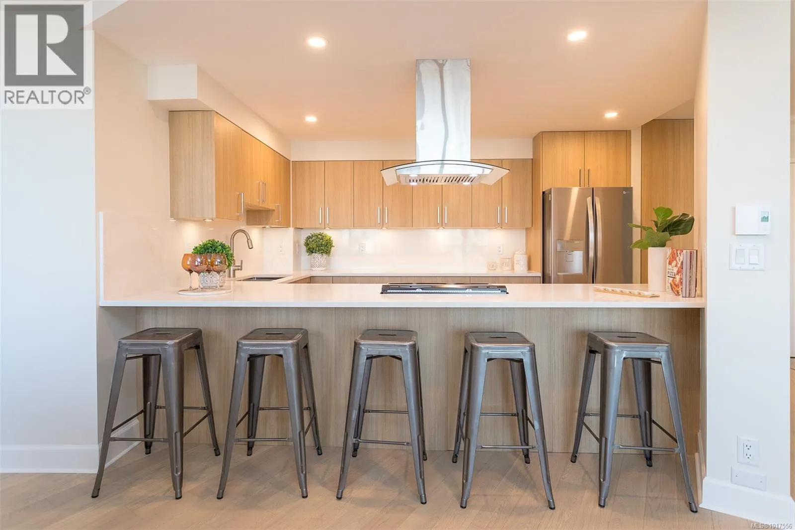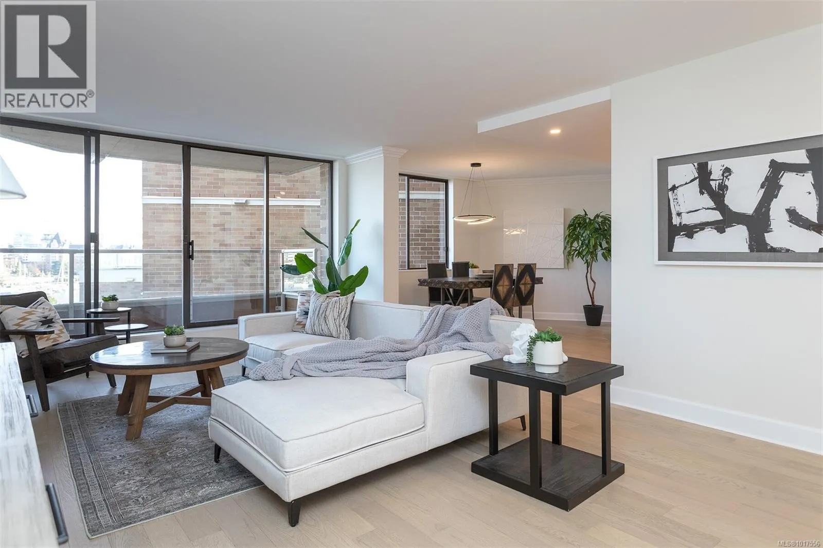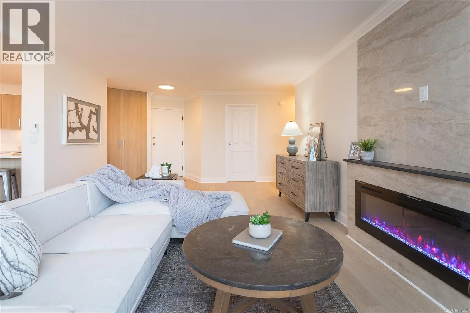 Come and discover this absolutely stunning 8th floor 2-Bedroom, 2-Bath condo with some of the most incredible views of the magical Victoria Inner Harbour, marina's, and city including the historic Empress Hotel. This large 1200 sf home has been completely transformed into a modern and sophisticated residence so you can just move in and enjoy. You will love the brand new wood grained chefs kitchen featuring quartz counters, 5 person eating bar, new Stainless Steel appliances, and under-counter lighting. Very open design allows beautiful views from all principal rooms including both over-sized bedrooms. All new flooring including top quality laminate, new bathrooms, new fixtures, new feature fireplace, and all redecorated. Laurel point offers a gym, rec room, pool, library, and underground secure parking. This location is second to none - steps into the Inner Harbour, Fisherman's Wharf, restaurants, and shopping. You deserve this so come and view today. (id:27476)