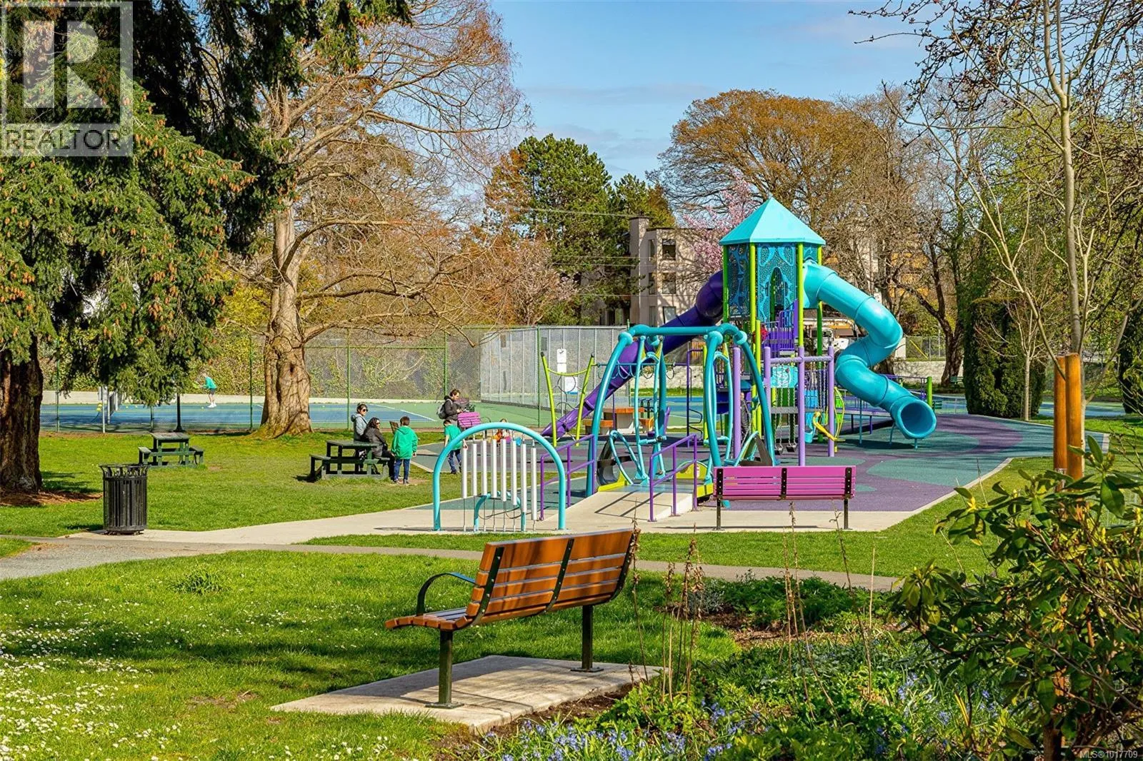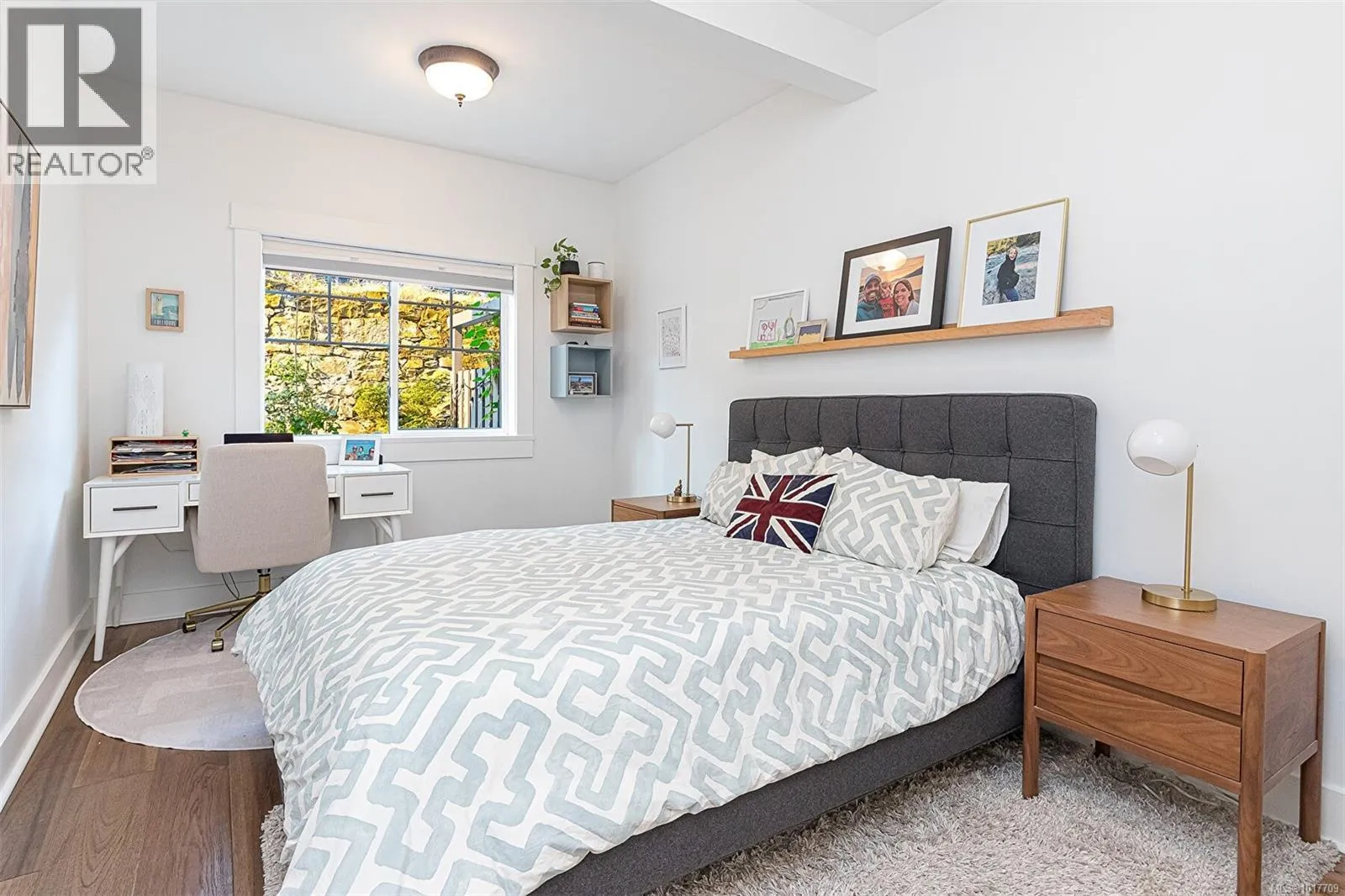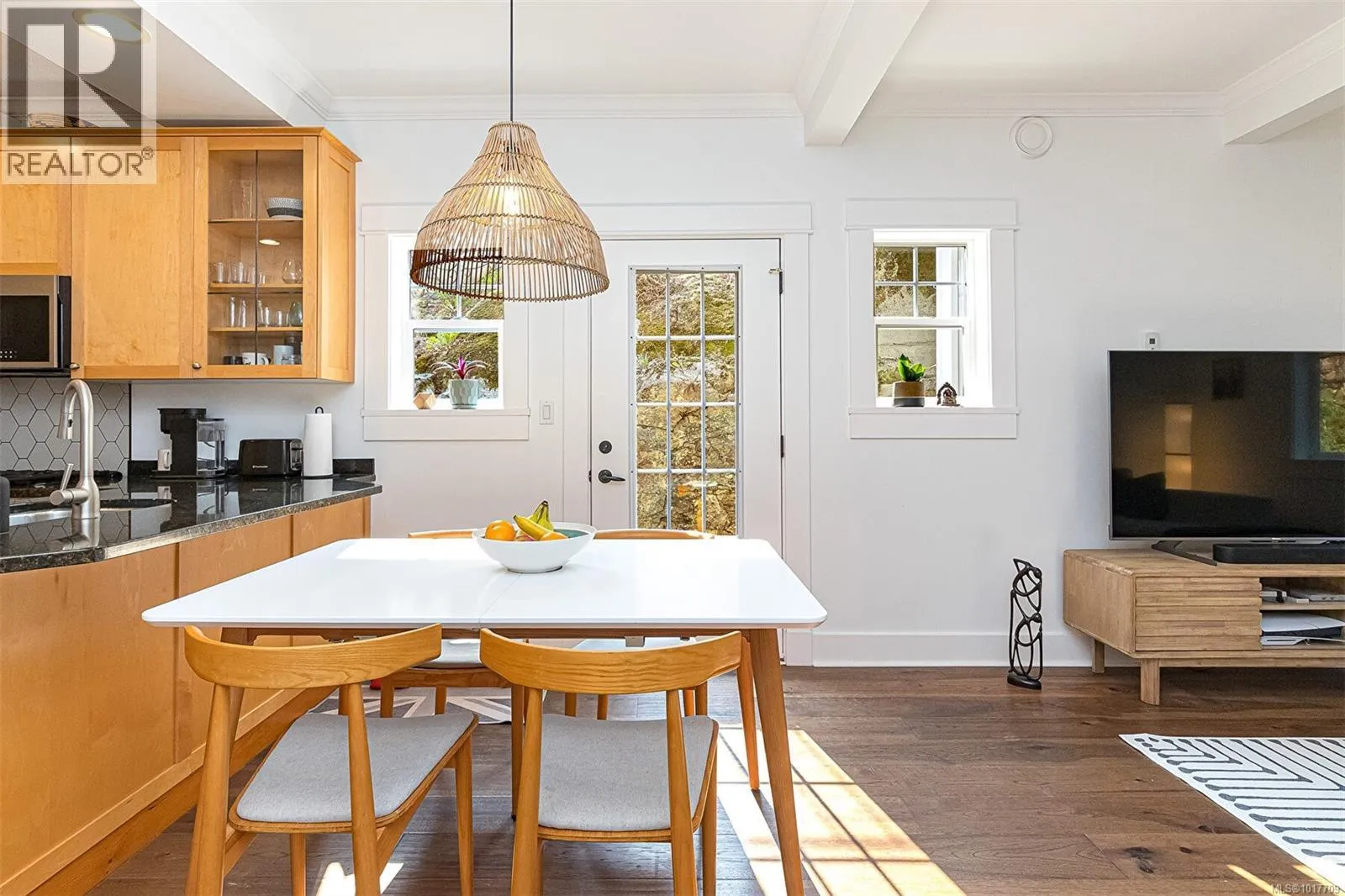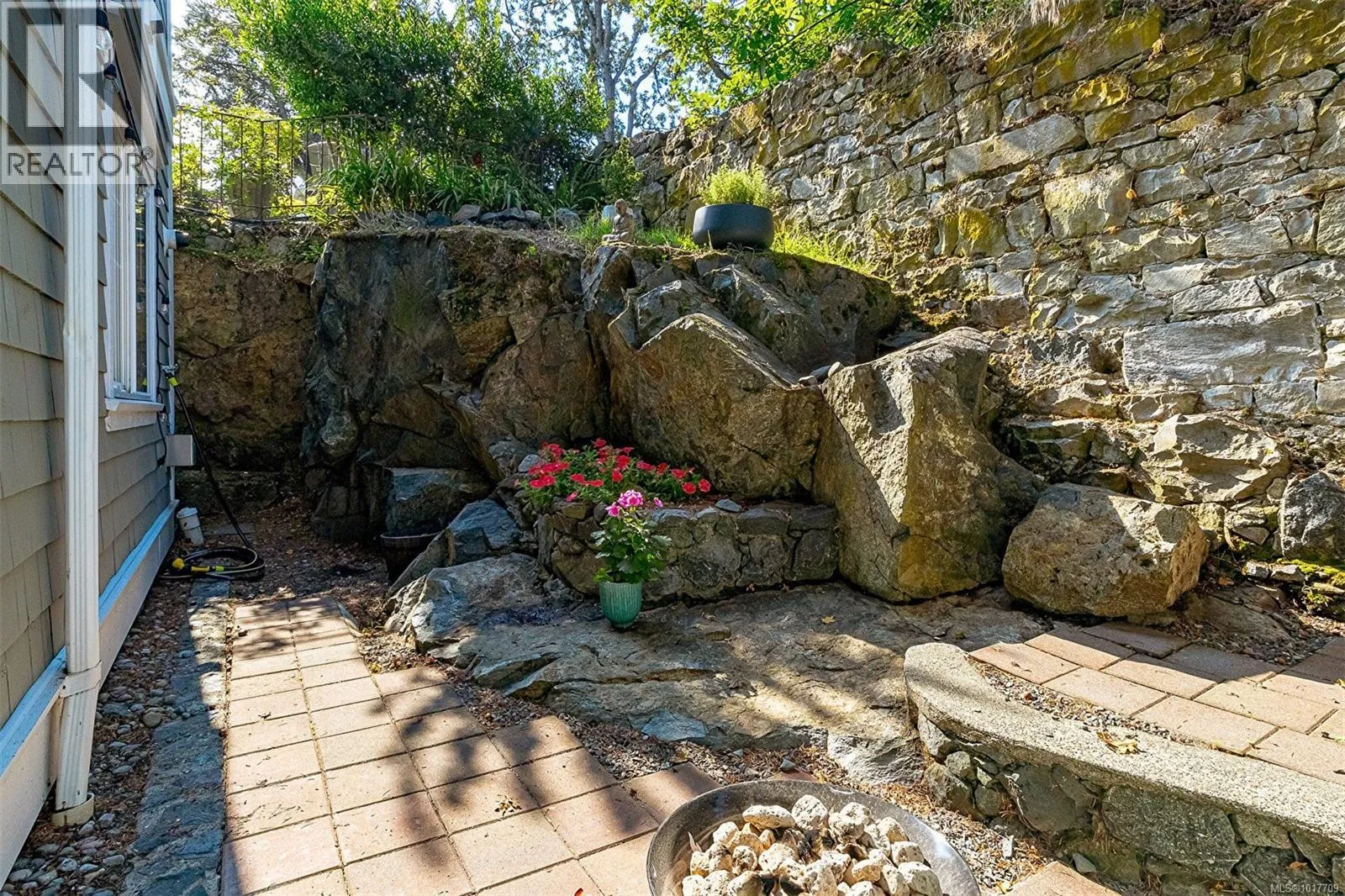 Tucked away on a quiet Rockland one-way road, this ''Garden Suiteâ at Erin Hall offers a rare blend of privacy, charm, and modern comfort. One of only four homes in a beautifully maintained 2004 character conversion, this 2-bed, 1-bath home features a bright, open layout, with 9ft ceilings, Brazilian hardwood floors, and abundant natural light with windows on 3 sides. Enjoy two exceptional outdoor areasâone fencedâperfect for pets, gardening, or entertaining. Newly painted and move-in ready, it includes Rinnai on-demand hot water, heated bathroom floors, all new kitchen appliances inc a gas stove, gas fireplace, and BBQ hookup. Natural rock walls create a serene backdrop, adding to the sense of tranquillity. A separate storage shed, low strata fees, and well-kept common gardens and lawn further enhance this unique offering. A perfect place to call home amongst the Rockland heritage charm and just moments from all downtown amenities. (id:27476)