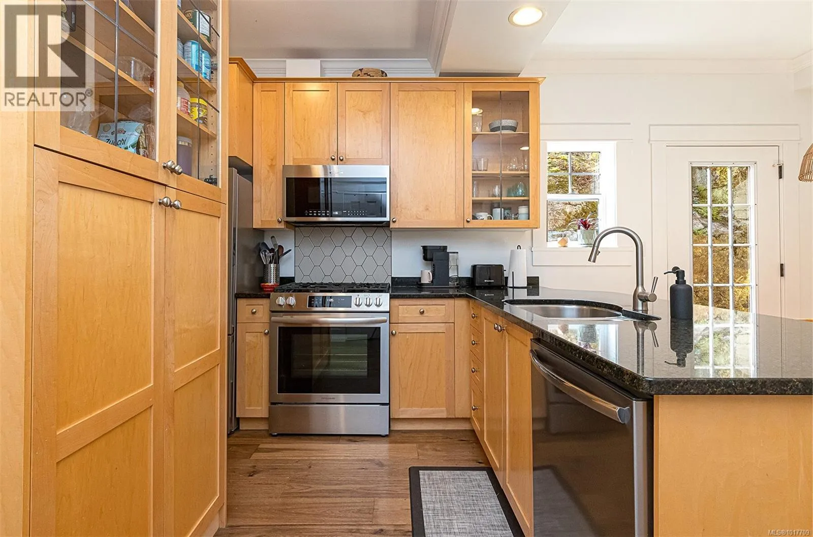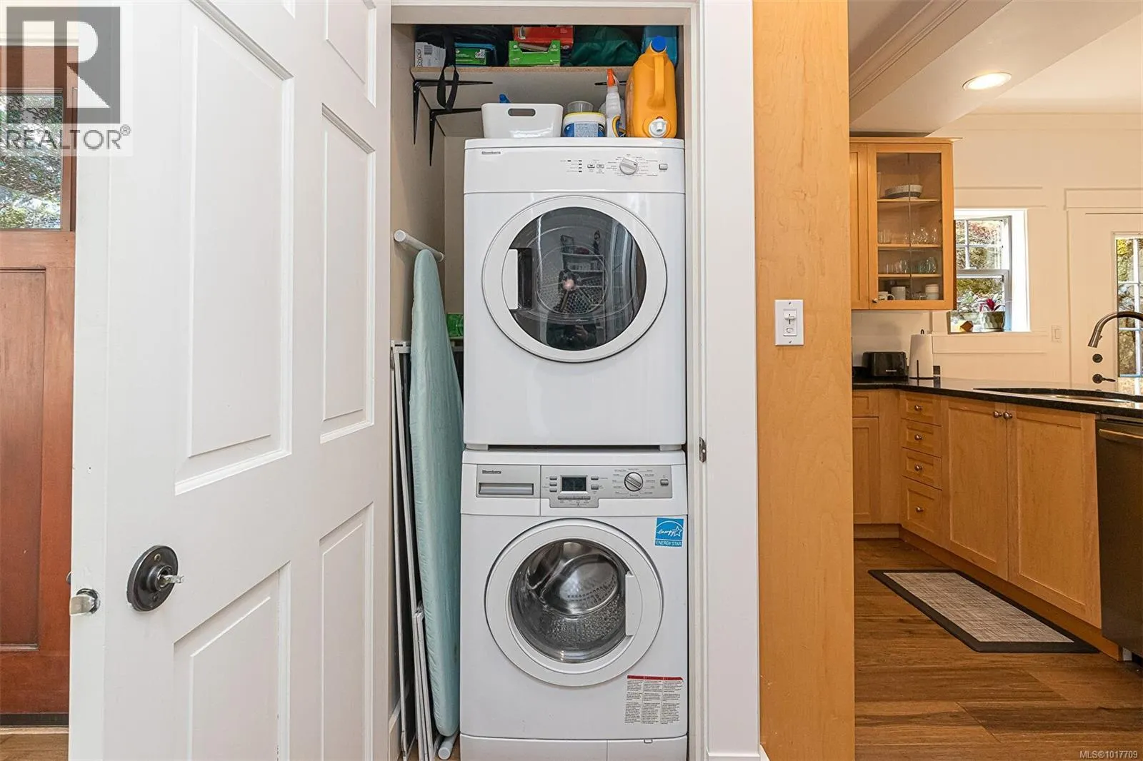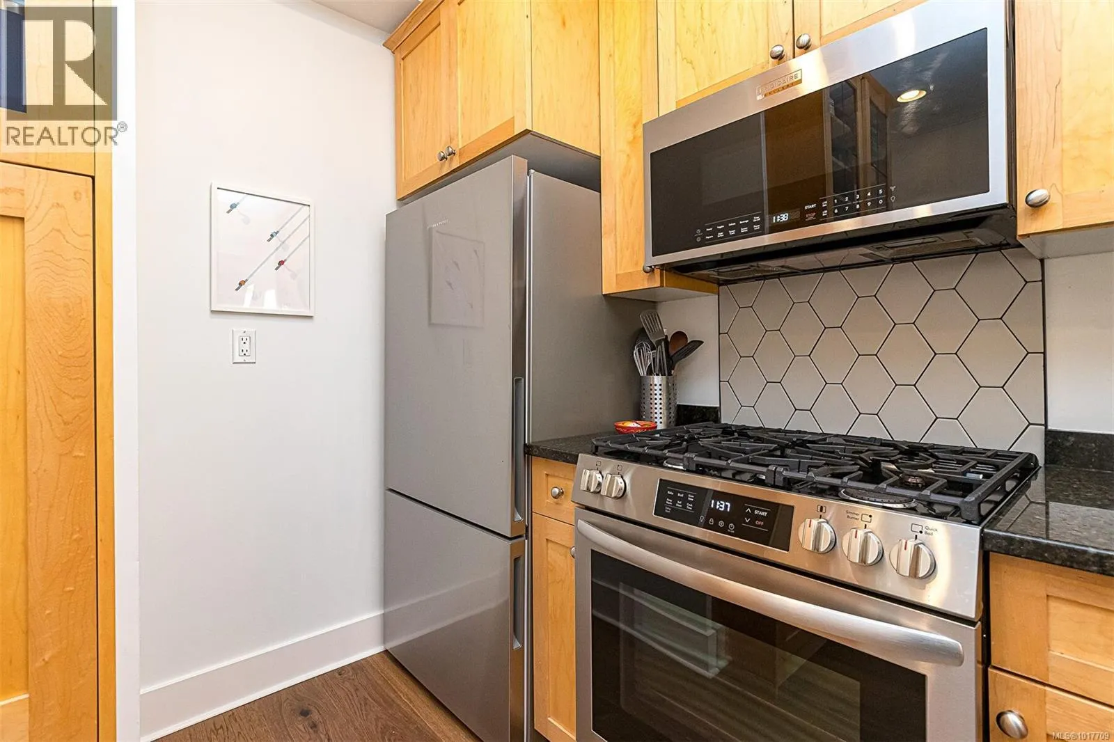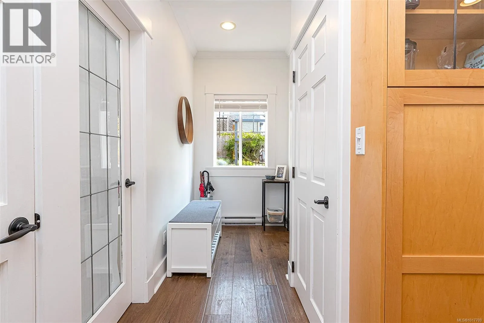 Tucked away on a quiet Rockland one-way road, this ''Garden Suiteâ at Erin Hall offers a rare blend of privacy, charm, and modern comfort. One of only four homes in a beautifully maintained 2004 character conversion, this 2-bed, 1-bath home features a bright, open layout, with 9ft ceilings, Brazilian hardwood floors, and abundant natural light with windows on 3 sides. Enjoy two exceptional outdoor areasâone fencedâperfect for pets, gardening, or entertaining. Newly painted and move-in ready, it includes Rinnai on-demand hot water, heated bathroom floors, all new kitchen appliances inc a gas stove, gas fireplace, and BBQ hookup. Natural rock walls create a serene backdrop, adding to the sense of tranquillity. A separate storage shed, low strata fees, and well-kept common gardens and lawn further enhance this unique offering. A perfect place to call home amongst the Rockland heritage charm and just moments from all downtown amenities. (id:27476)