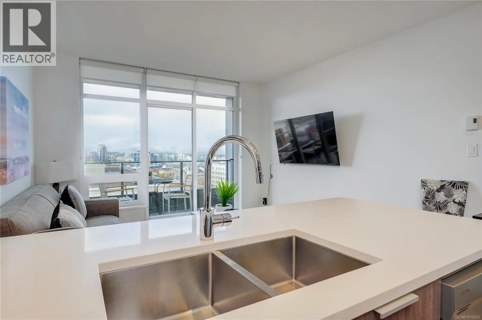 Discover the charm of this beautifully renovated studio unit in downtown.Perfectly situated for convenience, this home offers easy access to shops, restaurants, and public transportation.With stunning city views, Breathtaking views of downtown and the inner harbour from the sizable balcony and with a walk score of 100 enjoy all the amenities downtown has to offer!.The modern design features updated SS appliances and stylish finishes, creating a welcoming space for relaxation.Ideal for anyone seeking a blend of comfort and city life, this studio is a true gem in the heart of downtown. Building comes with secure bicycle storage and locker. Fully furnished with brand new in-suite laundry, Freshly painted and cozy decorated. Excellent value and don't miss this one. (id:27476)