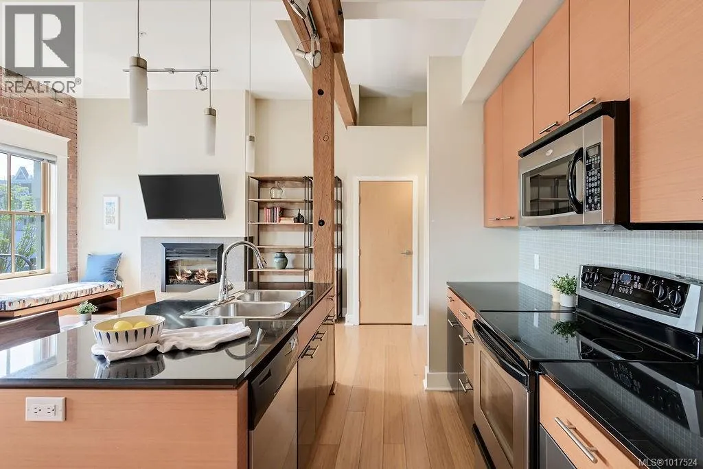 Welcome to The Monaco! This bright and spacious 2-bedroom + office, 2-bath condo is located within a beautifully restored heritage building that was originally built in the late 1800s and completely rebuilt in 2006. It offers a perfect blend of original character and contemporary comfort, including a beautiful rooftop deck and an open-concept layout. Inside, you'll find exposed brick walls, soaring ceilings, and large windows that fill the home with natural light. The modern updates create an inviting space ideal for both relaxing and entertaining. The den provides a flexible space for a home office. This unit comes with two large storage lockers. Situated in the heart of downtown Victoria, The Monaco places the cityâs finest shops, cafés, and restaurants right outside your door. This is a unique opportunity to own a piece of Victoriaâs history without sacrificing modern convenience. (id:27476)