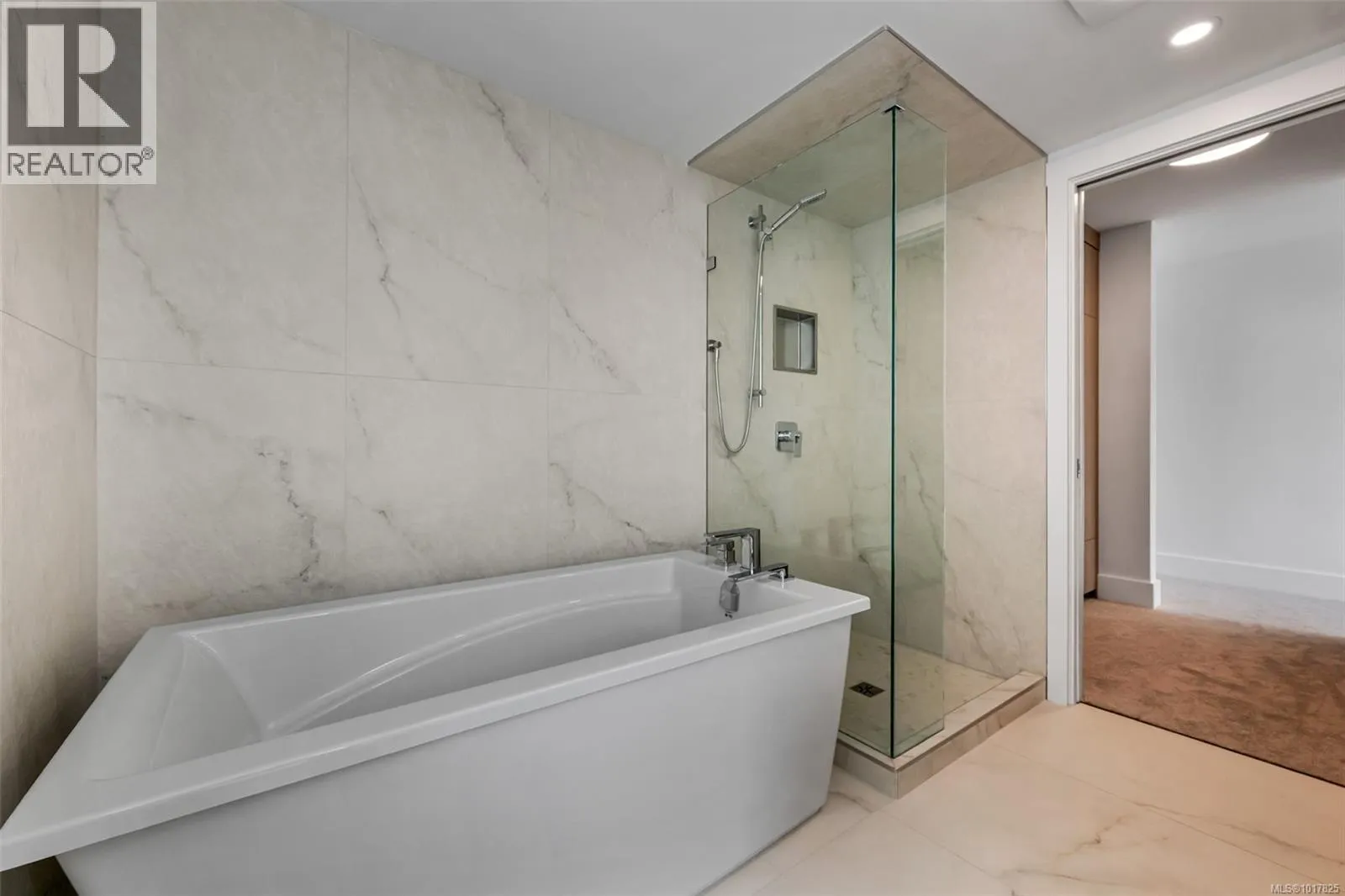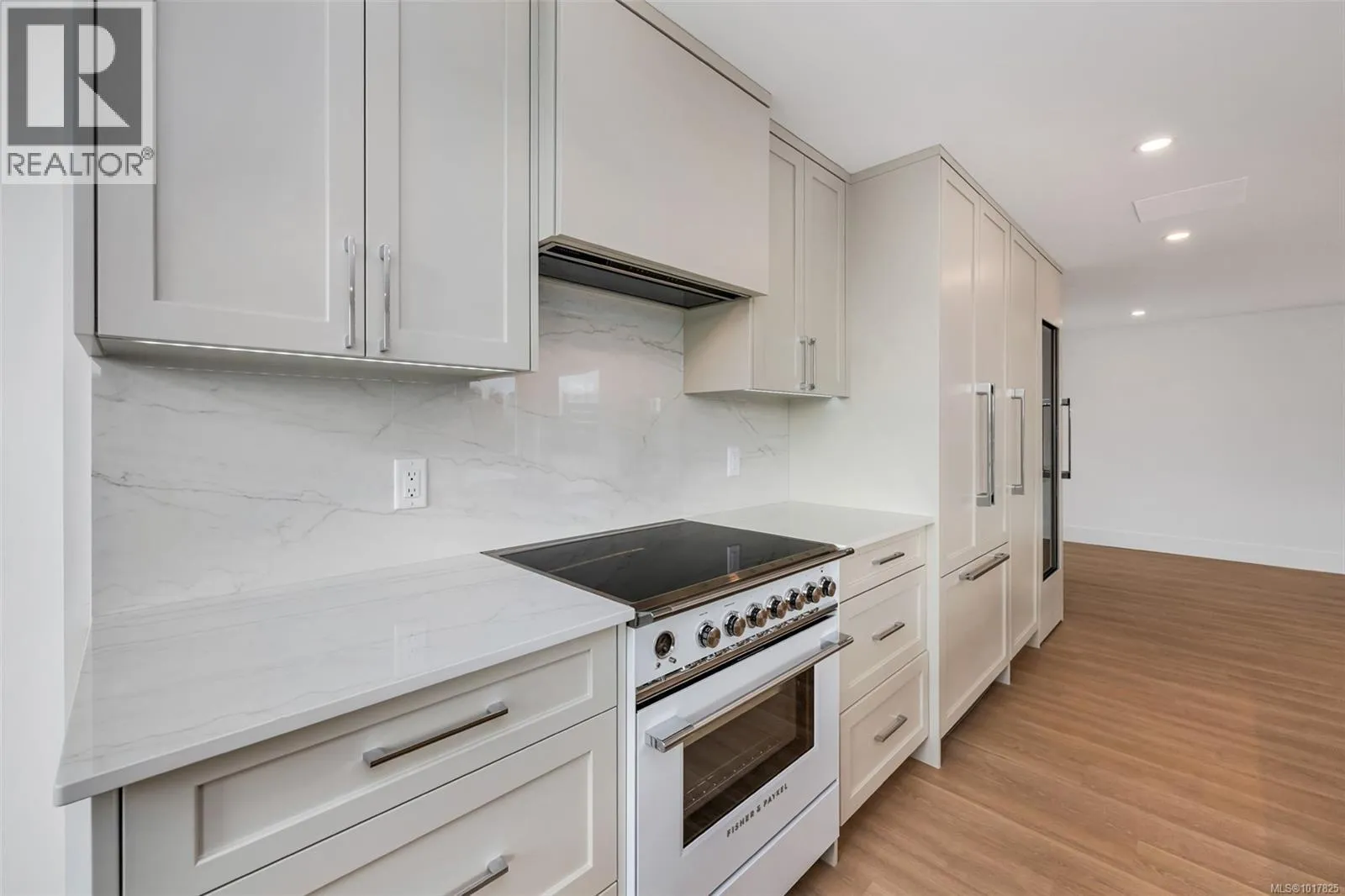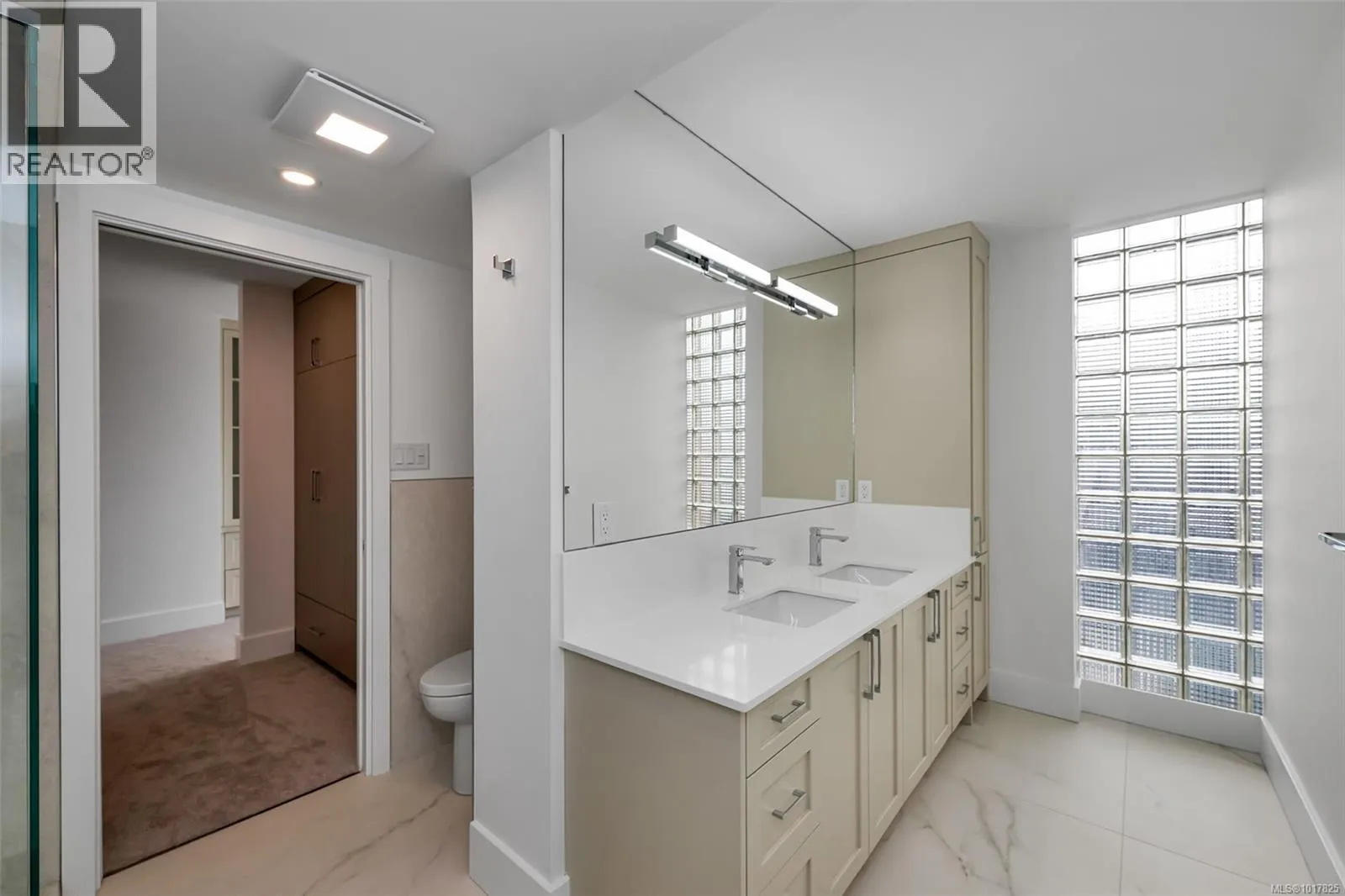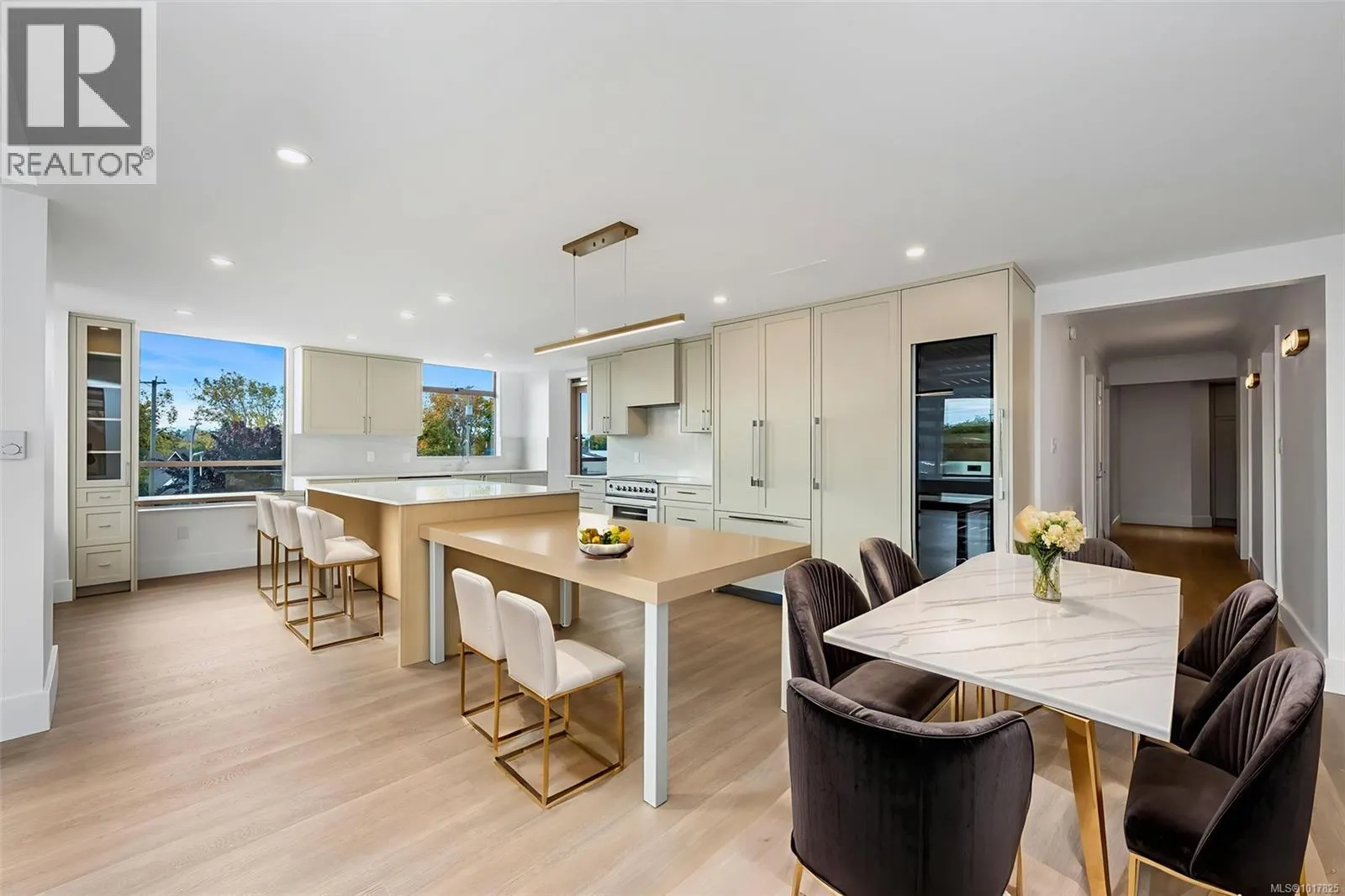 Welcome to this meticulously renovated James Bay home, blending luxury, functionality, and an unbeatable location. The bright, airy open-concept layout is ideal for entertaining and everyday living. The chefâs kitchen features high-end Fisher & Paykel appliances, a built-in wine fridge, and sleek Dekton countertops. Custom built-in cabinetry extends throughout, maximizing storage with a clean, modern aesthetic. Enjoy remote-controlled blinds, luxury vinyl plank flooring, and plush new carpeting with 8 lb underlay. Expansive windows showcase beautiful views filling the home with natural light. Steps to Fishermanâs Wharf, the scenic Dallas Road waterfront, and minutes from the vibrant downtown core, this exceptional home is move-in ready for those seeking refined design and a prime James Bay lifestyle. (id:27476)